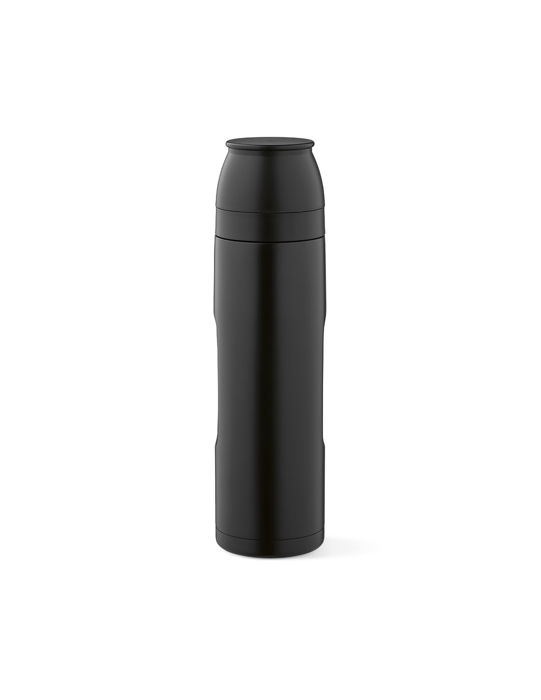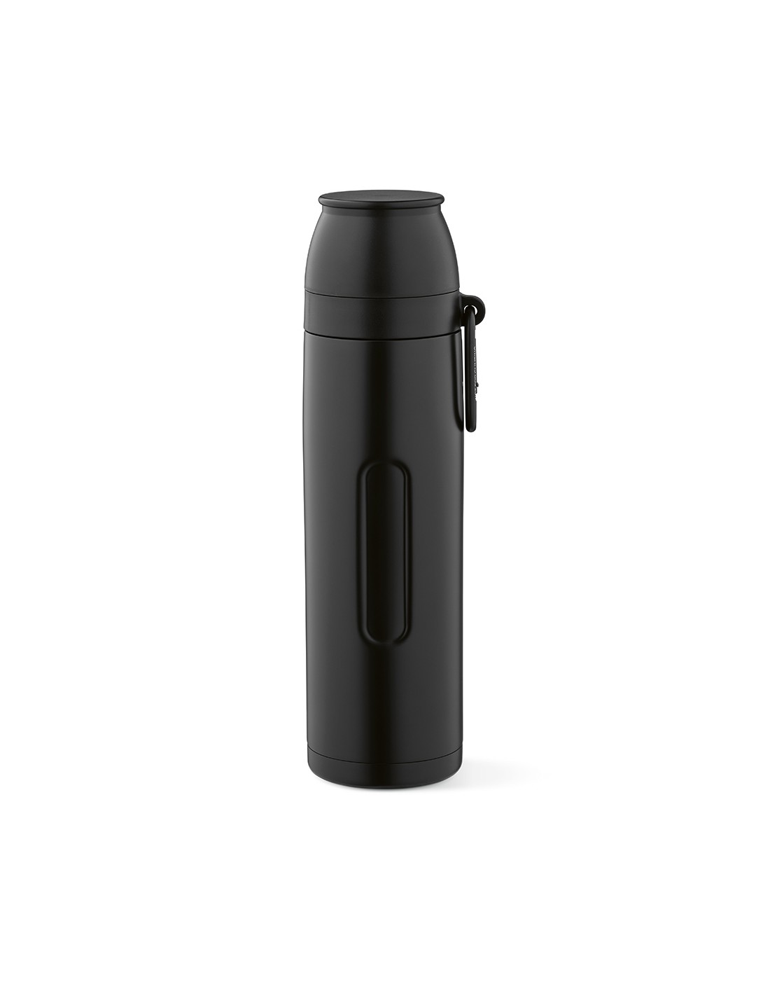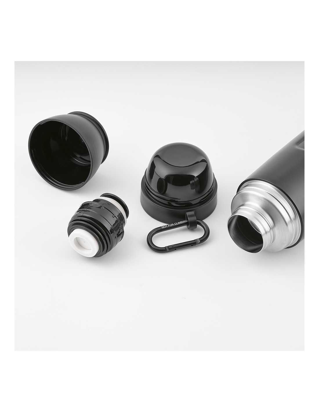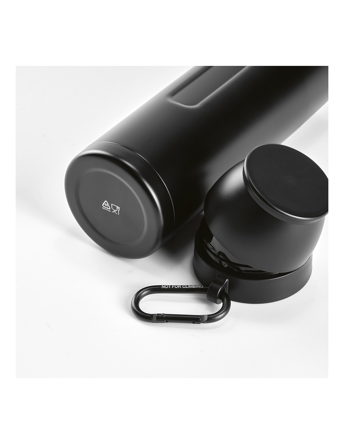 Flinders thermos 1080ml (1000ml net) realizzato in acciaio inox riciclato. Dotato di moschettone per un facile trasporto. L’isolamento a doppia parete mantiene le bevande calde per 20 ore o fredde per 55 ore. Include 2 bicchieri da 19cl e 22cl. Disponibile in 5 colori e confezionato singolarmente in scatola kraft.