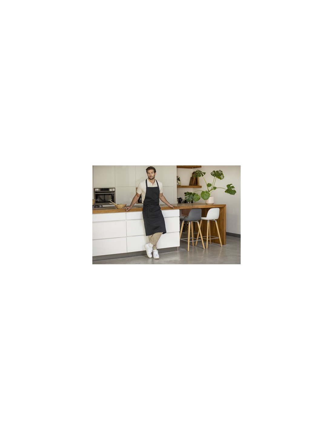 Grembiule in misto cotone riciclato e poliestere da 200 g/m². Dispone di 2 tasche adiacenti con una dimensione combinata di 45 x 20 cm e di un'allacciatura posteriore da 1 metro. Il cotone riciclato è prodotto da rifiuti pre-consumo generati dalle fabbriche tessili durante il processo di taglio....