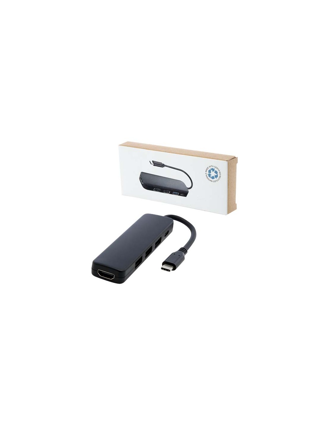 Hub USB 2.0 con 2 porte USB A e una porta type C per aumentare il numero di porte USB del computer. Cavo integrato in TPE senza PVC.