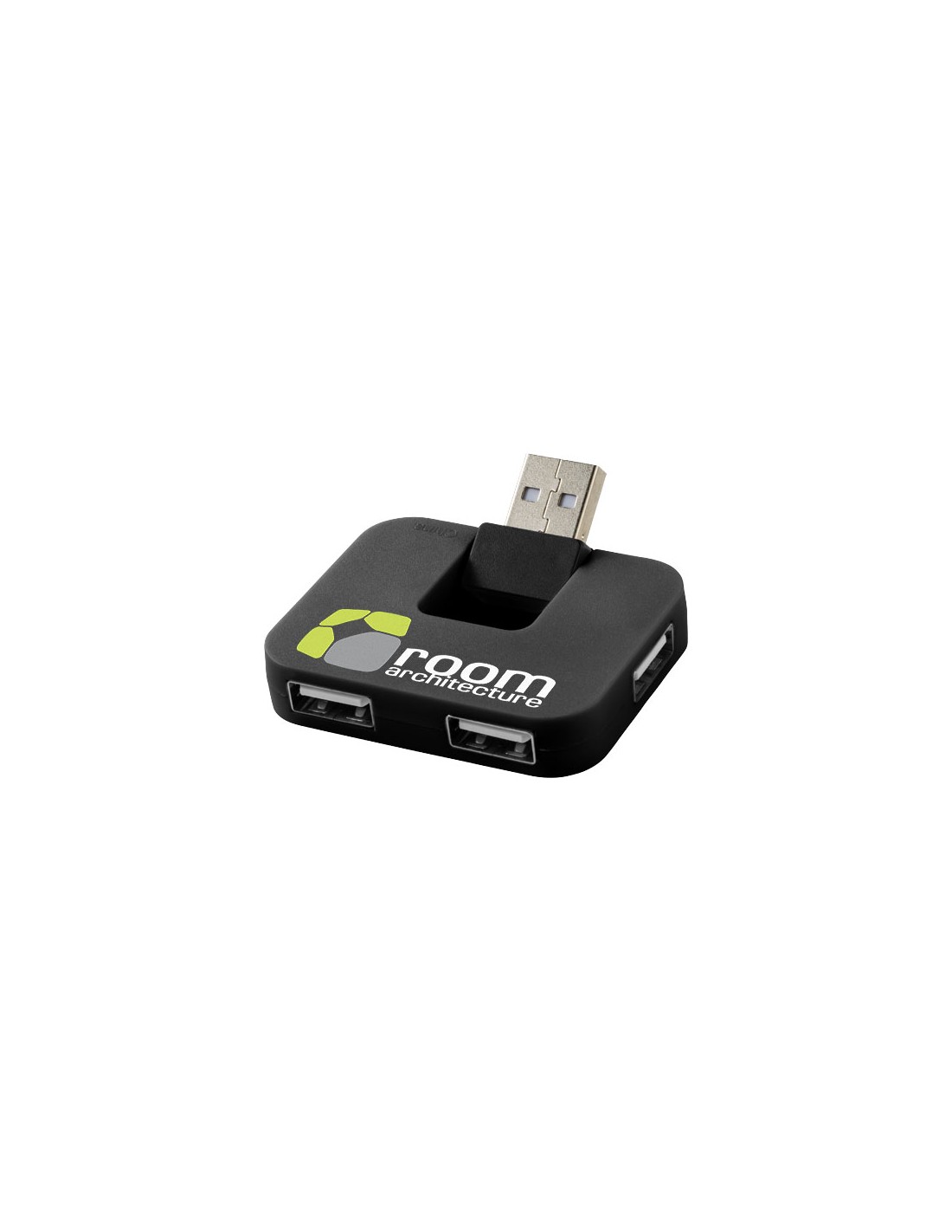 Hub USB rettangolare a 4 porte con porta di ingresso pieghevole.