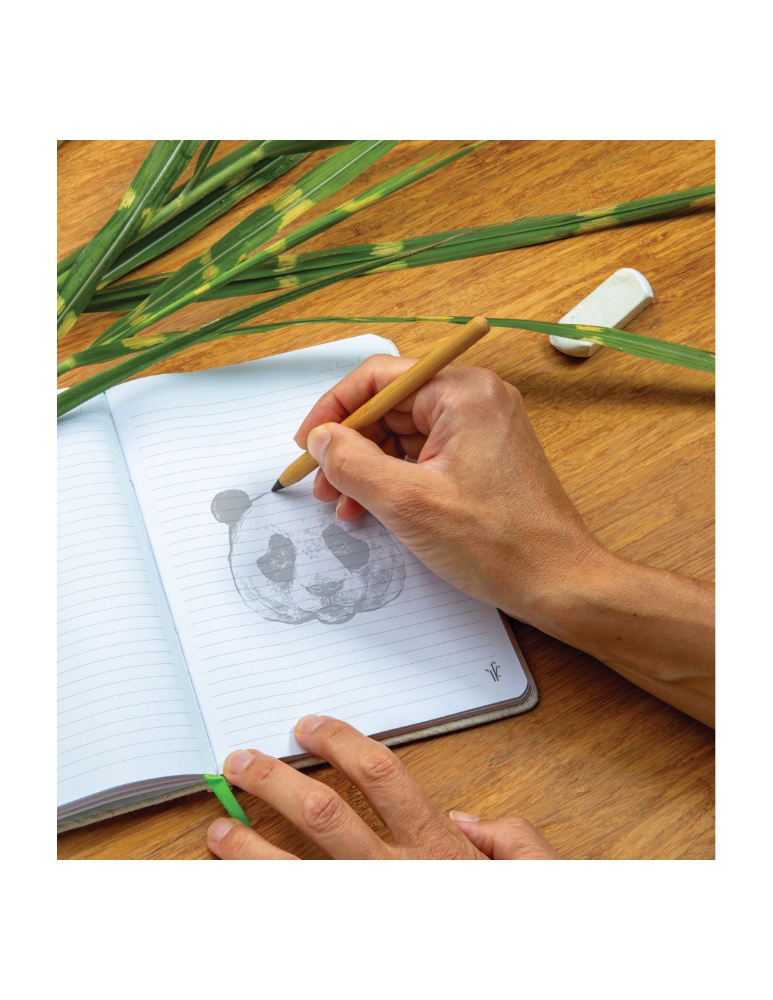 Matita con gomma. La matita è realizzata in legno di pioppo e grafite, la gomma è in materiale plastico e la ghiera è in alluminio.