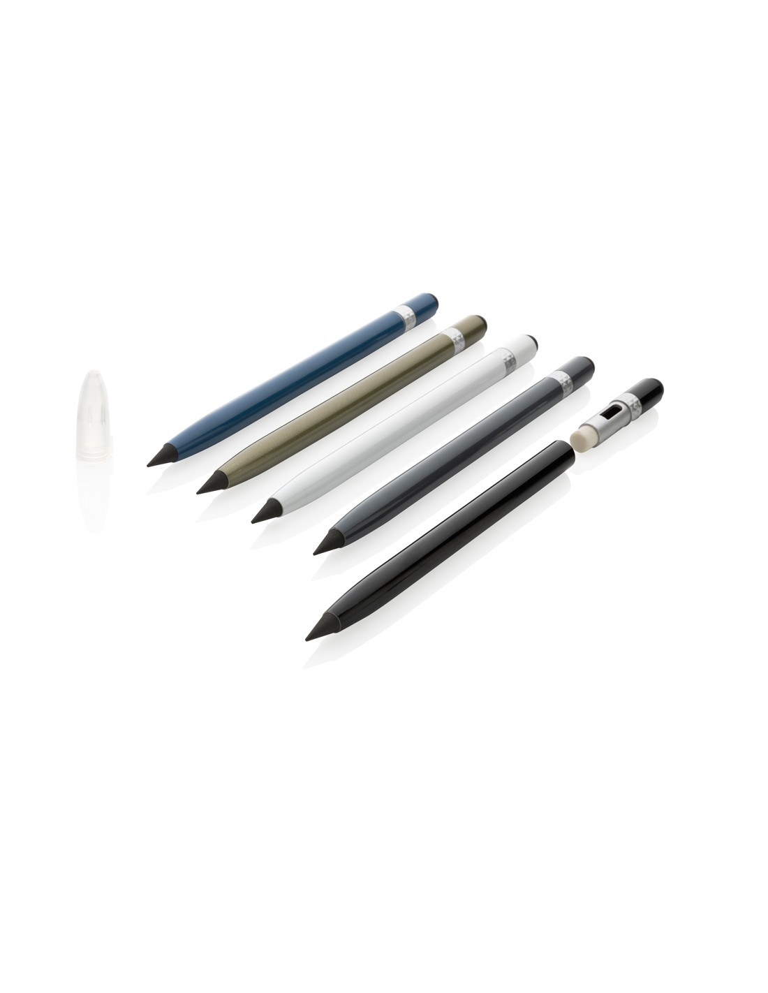 Questo set di penne dall'aspetto moderno composto da penna a sfera e matita è realizzato con bambù certificato FSC®. La penna è dotata di una ricarica di scrittura da 800 m con inchiostro blu tedesco e la matita di una mina da 0,7 mm. Confezionato in scatola regalo certificata FSC®.