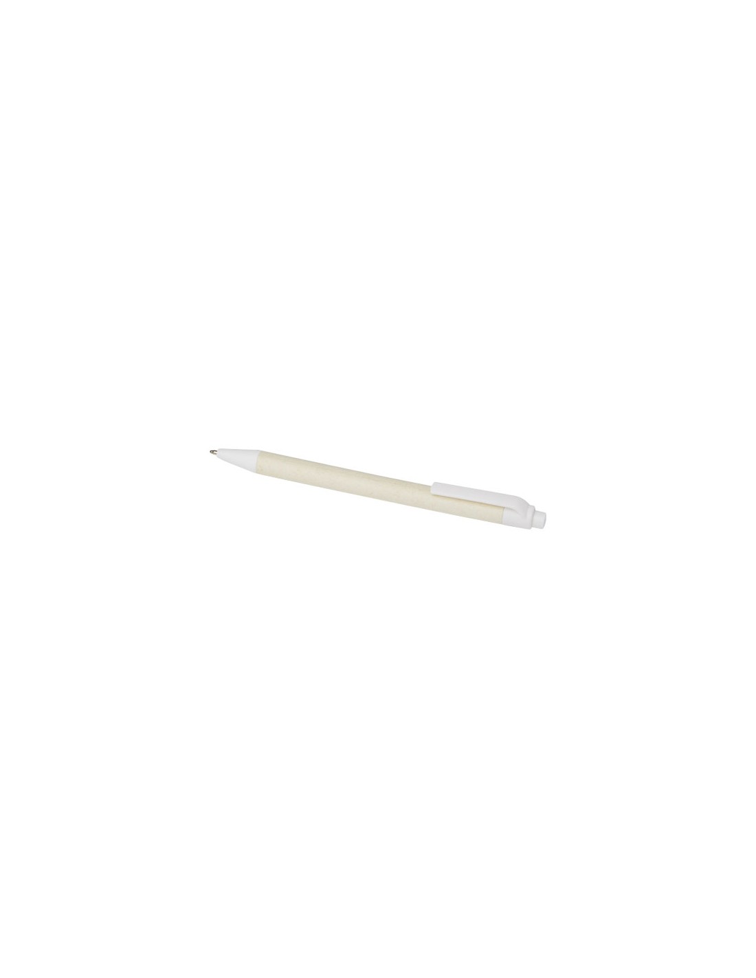 Penna a sfera con meccanismo scatto e fusto realizzato con cartoni del latte riciclati (fino al 70%). Il pulsante, la clip e la punta sono realizzati in plastica PLA. I cartoni del latte usati vengono raccolti, selezionati, lavorati e trasformati in carta, trasformando un semplice rifiuto in qualcosa di utile.