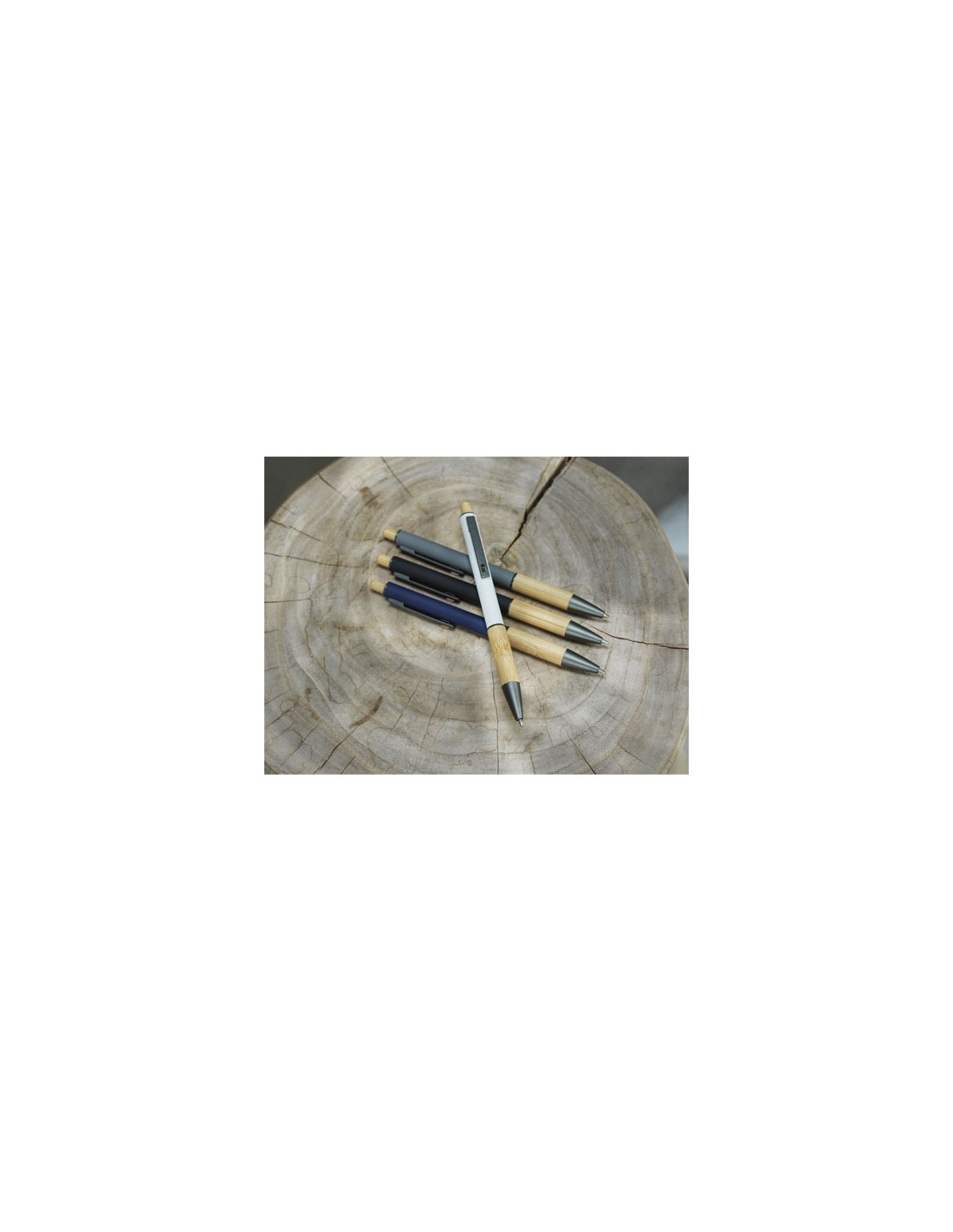La penna a sfera Darius è realizzata in alluminio riciclato, che richiede meno energia nella produzione rispetto all'alluminio proveniente da materie prime. Riduce inoltre la quantità di rifiuti nelle discariche e aiuta a conservare le risorse naturali con l'obiettivo di ridurre le emissioni di gas serra. Il pulsante e la parte inferiore del fusto sono in bambù. Colore dell'inchiostro: Nero. Capacità di scrittura: 800 metri. Dimensione del pennino: 1,00 mm.