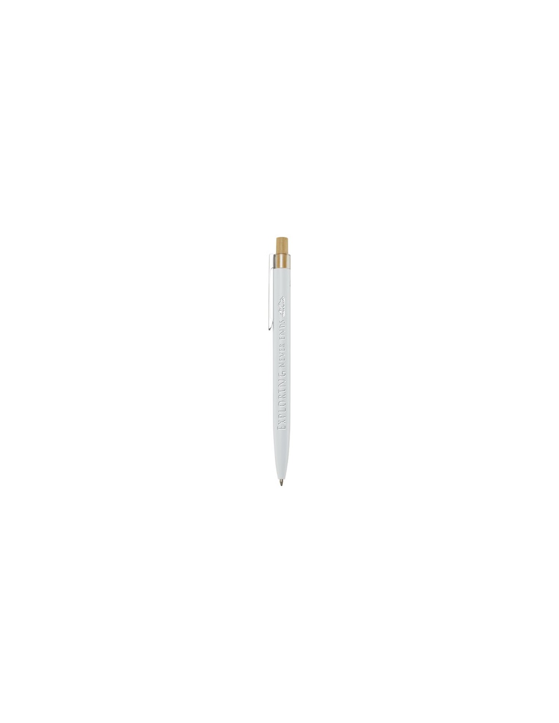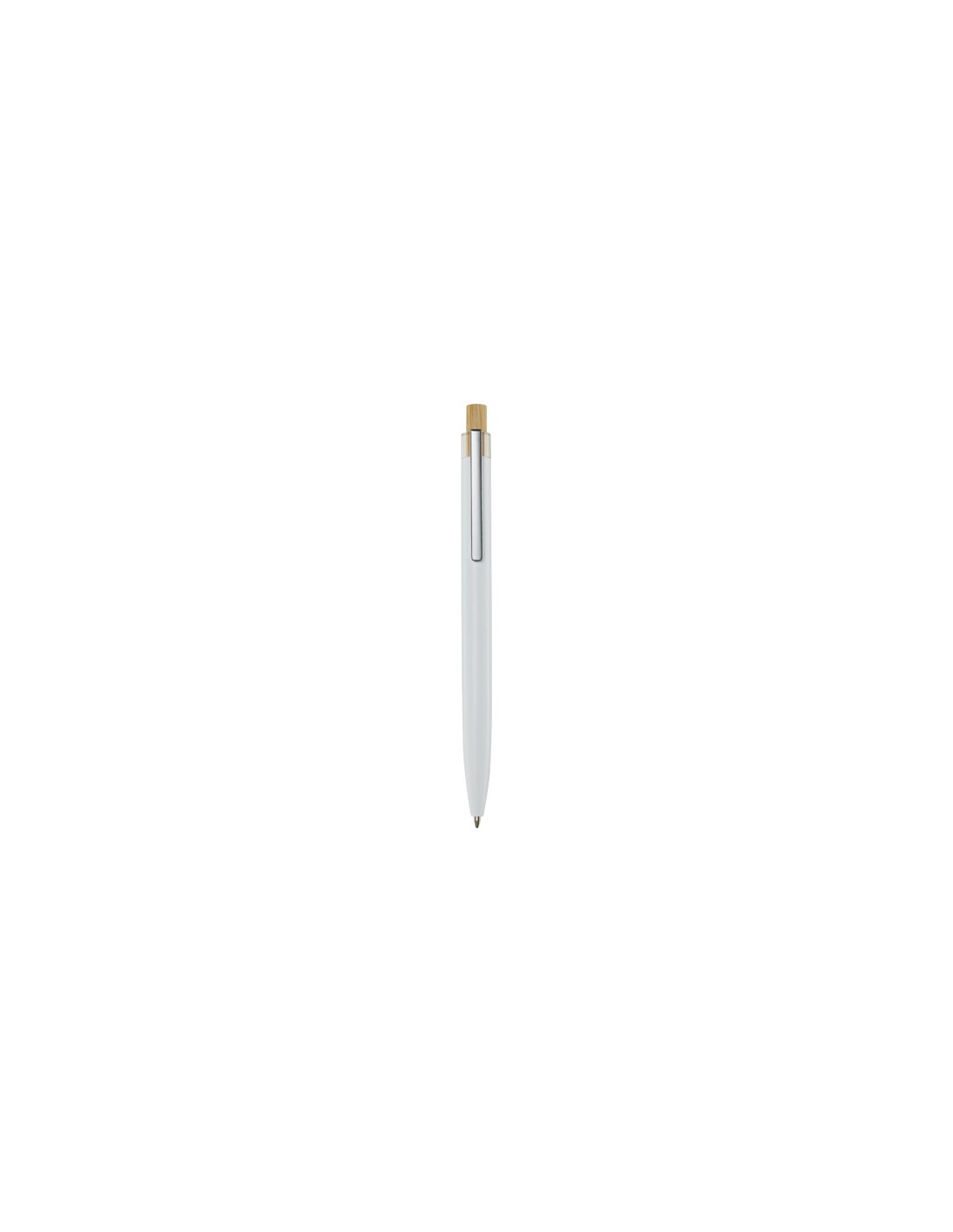 La penna a sfera Nooshin è realizzata in alluminio riciclato, che richiede meno energia nella produzione rispetto all'alluminio proveniente da materie prime. Riduce inoltre la quantità di rifiuti nelle discariche e aiuta a conservare le risorse naturali con l'obiettivo di ridurre le emissioni di gas serra. Il pulsante è realizzato in bambù. Colore dell'inchiostro: Blu. Capacità di scrittura: 800 metri. Dimensione del pennino: 1,00 mm.