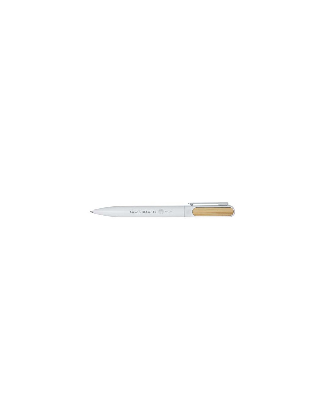 La penna a sfera Blanca ha il fusto superiore realizzato in plastica riciclata con rivestimento verniciato a spruzzo colorato e accessori in bambù su entrambi i lati. La parte inferiore del fusto è realizzata in alluminio riciclato con rivestimento verniciato a spruzzo colorato. Colore dell'inchiostro: Nero. Capacità di scrittura: 400 metri. Dimensione del pennino: 1,0 mm.