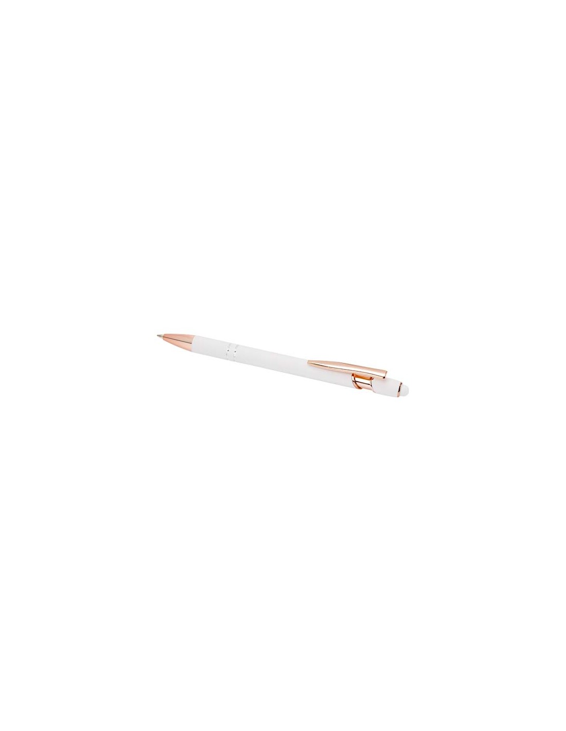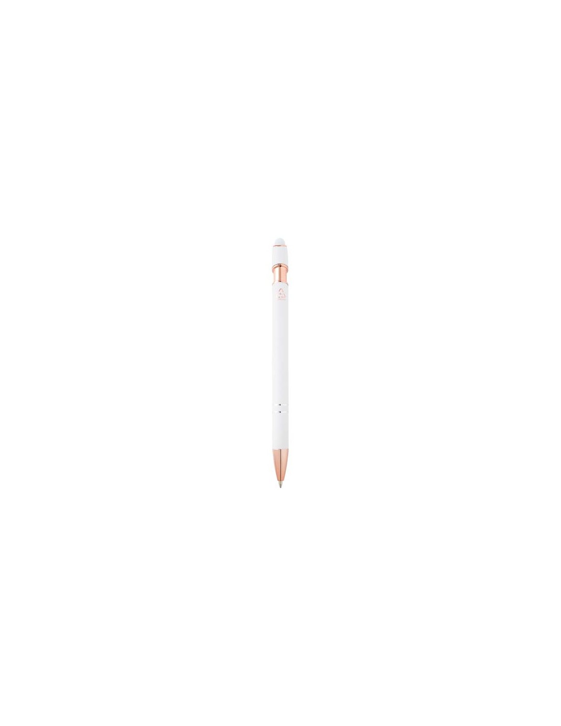 La penna a sfera Nanna con finitura oro rosa, presenta un fusto realizzato in alluminio riciclato con stilo tattile in silicone. L'alluminio riciclato riduce la quantità di rifiuti nelle discariche e aiuta a conservare le risorse naturali con l'obiettivo di ridurre le emissioni di gas serra. Colore dell'inchiostro: Blu. Capacità di scrittura: 800 metri. Dimensione del pennino: 1,0 mm.