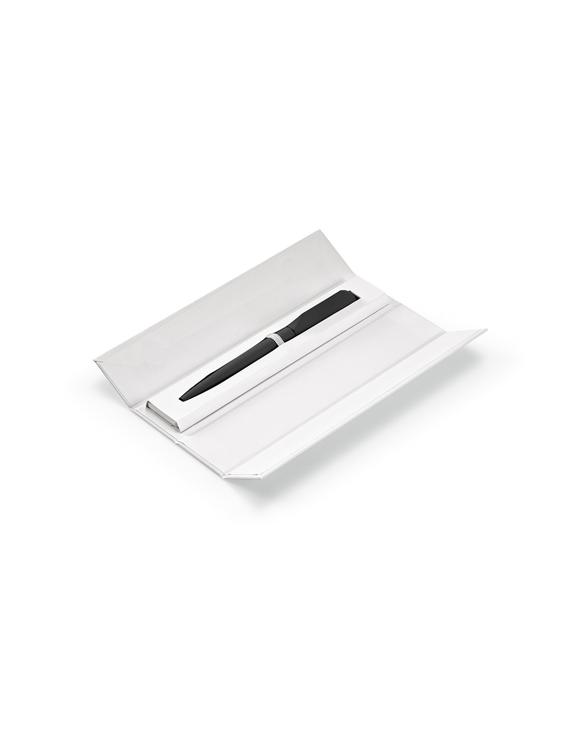 Penna a sfera twist Rabelais con corpo in alluminio riciclato e tappo in rABS. Il meccanismo a rotazione rilascia 1 km di inchiostro nero Dokumental® (punta 0,38 mm). Disponibile in 6 tonalità pastello e confezionata in una scatola triangolare bianca riciclata dal design unico con chiusura magnetica.