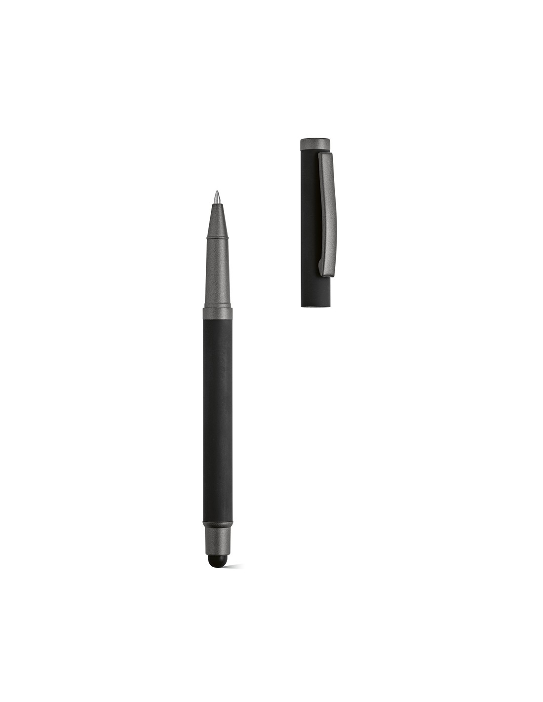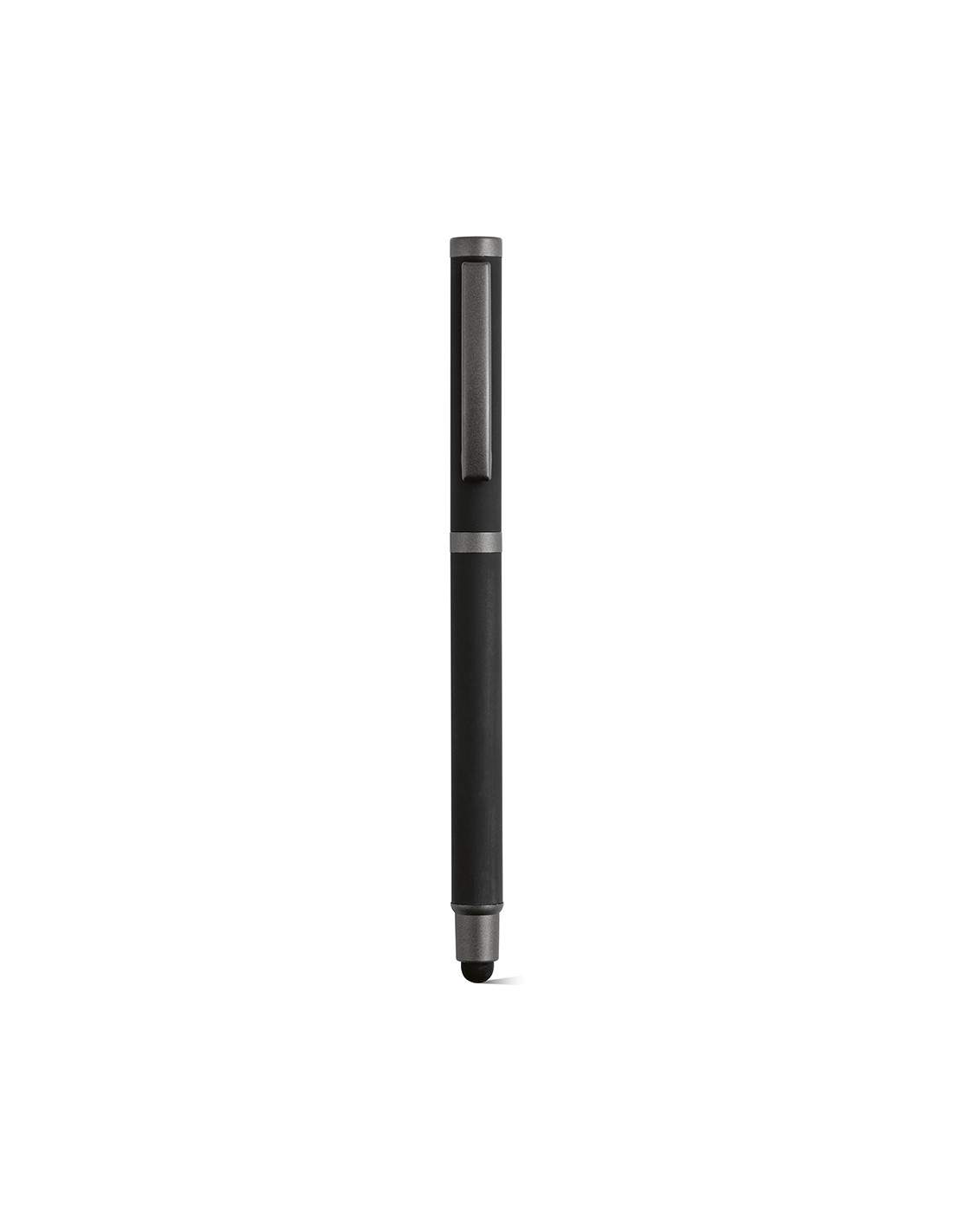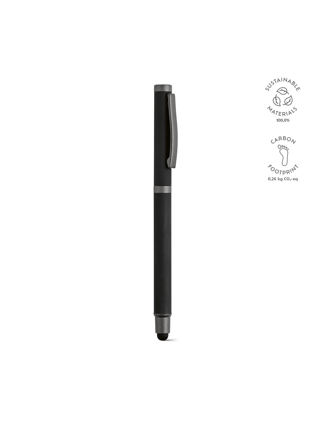 Penna a sfera Woolf in acciaio inossidabile riciclato, dotata di cappuccio e stylus, con 1 km di inchiostro gel nero Dokumental® (punta 0,38 mm). Ideale per una scrittura fluida con inchiostro nero. Fornita in una scatola singola di bambù con sleeve in kraft.