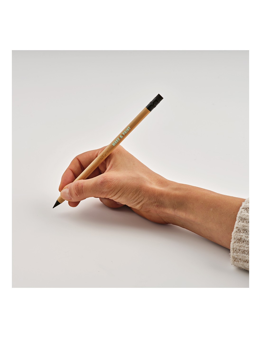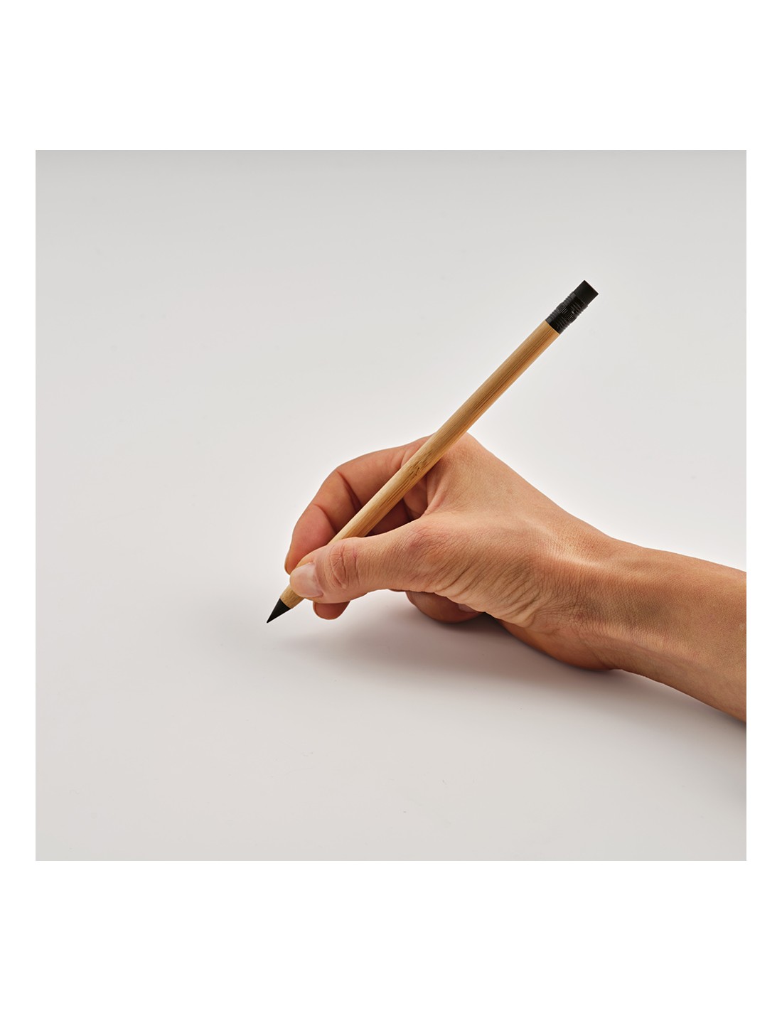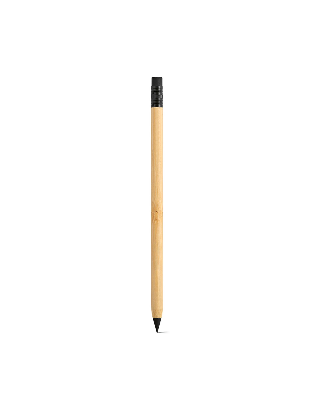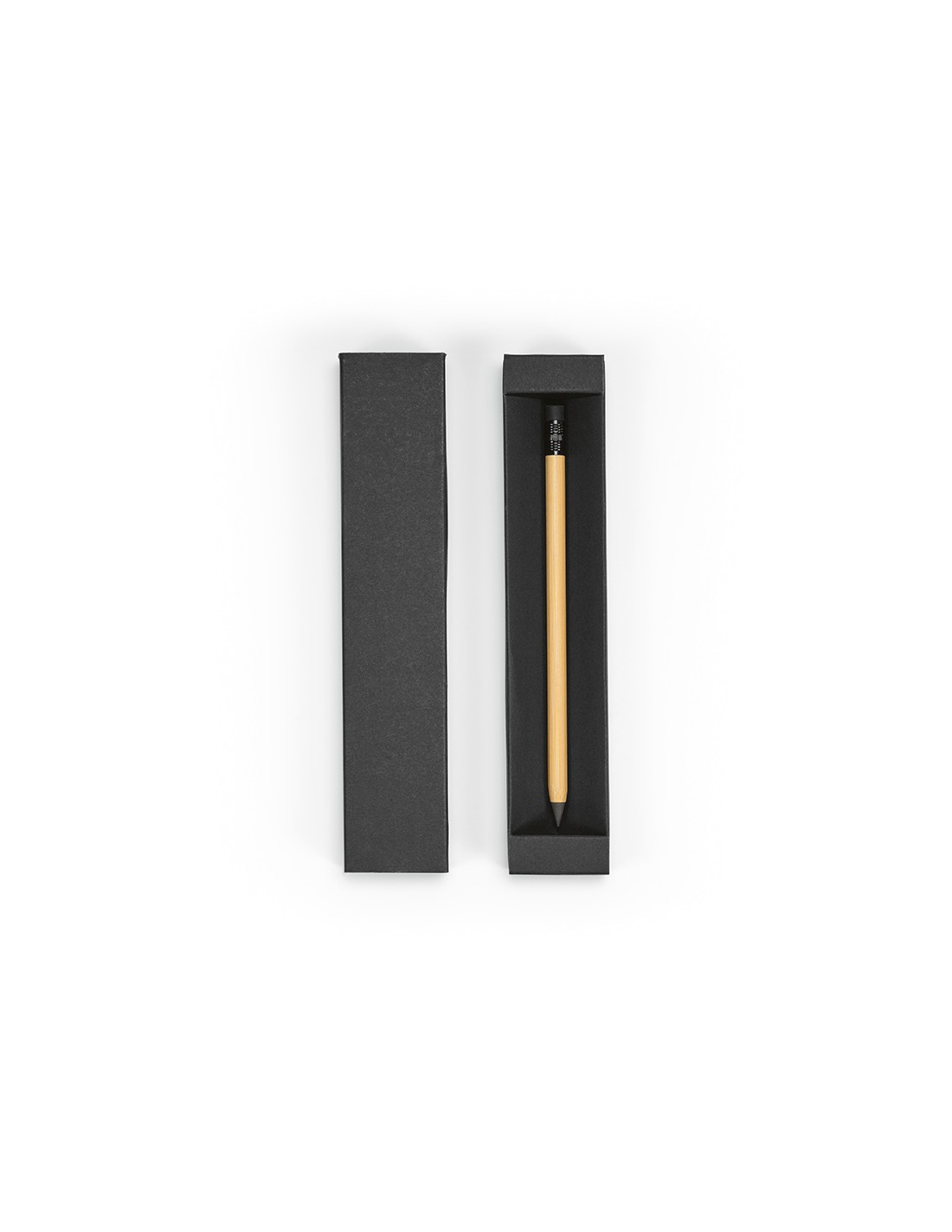 Penna senza inchiostro Kerouac con corpo in bambù, un omaggio all’eco-sostenibilità. Una penna infinita con gomma incorporata, elegantemente confezionata in una scatola regalo nera di carta riciclata.