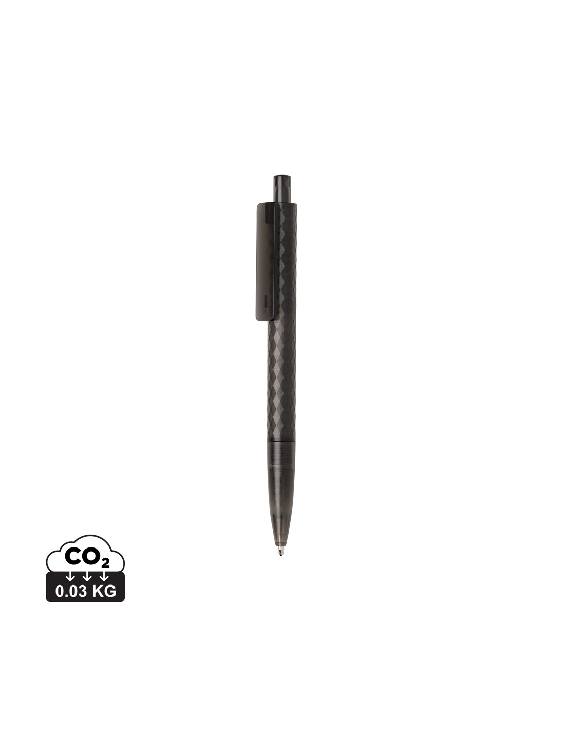La penna satinata X3 in plastica PC riciclata certificata GRS unisce sostenibilità e funzionalità. Realizzata con l'84% di plastica PC riciclata certificata GRS, compresa la parte superiore, la clip, la punta e il fusto con un rivestimento satinato, questa penna è progettata sia per l'eco-consapevolezza che per lo stile. È dotata di inchiostro Dokumental blu che scrive in modo fluido fino a 1200 metri con una larghezza di scrittura di 1,0 mm. Il meccanismo a scatto garantisce un facile utilizzo, mentre il logo RPC recycle sotto lo stantuffo indica le sue origini sostenibili.