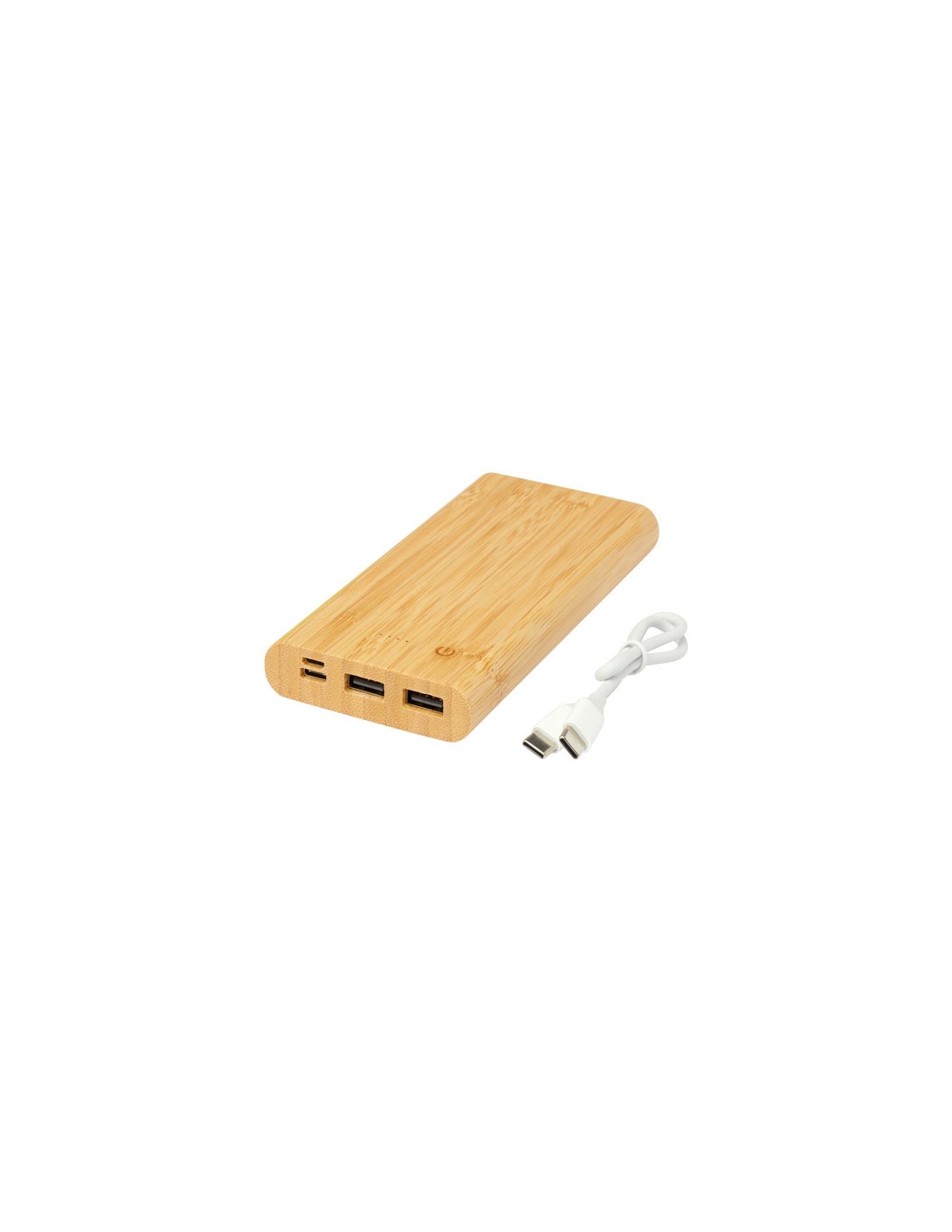 Power bank da 10000 mAh in bambù, con pulsante ON/OFF touch e 4 indicatori LED per mostrare la capacità residua della batteria. Ingresso micro USB 5 V/2 A, ingresso di tipo C 5 V/3 A, uscita di tipo C 5 V/3,1 A max, doppia uscita USB-A 5 V/3,1 A max, potenza totale 15,5 W. Consegnato con un cavo di ricarica da Tipo-C a Tipo-C in TPE 3 A da 30 cm, un manuale di istruzioni e una confezione regalo in carta kraft. Poiché il bambù è un prodotto naturale, potrebbero esserci lievi variazioni di colore e dimensioni, che possono influire sul design finale di ogni pezzo.