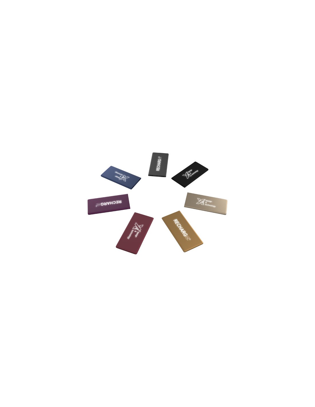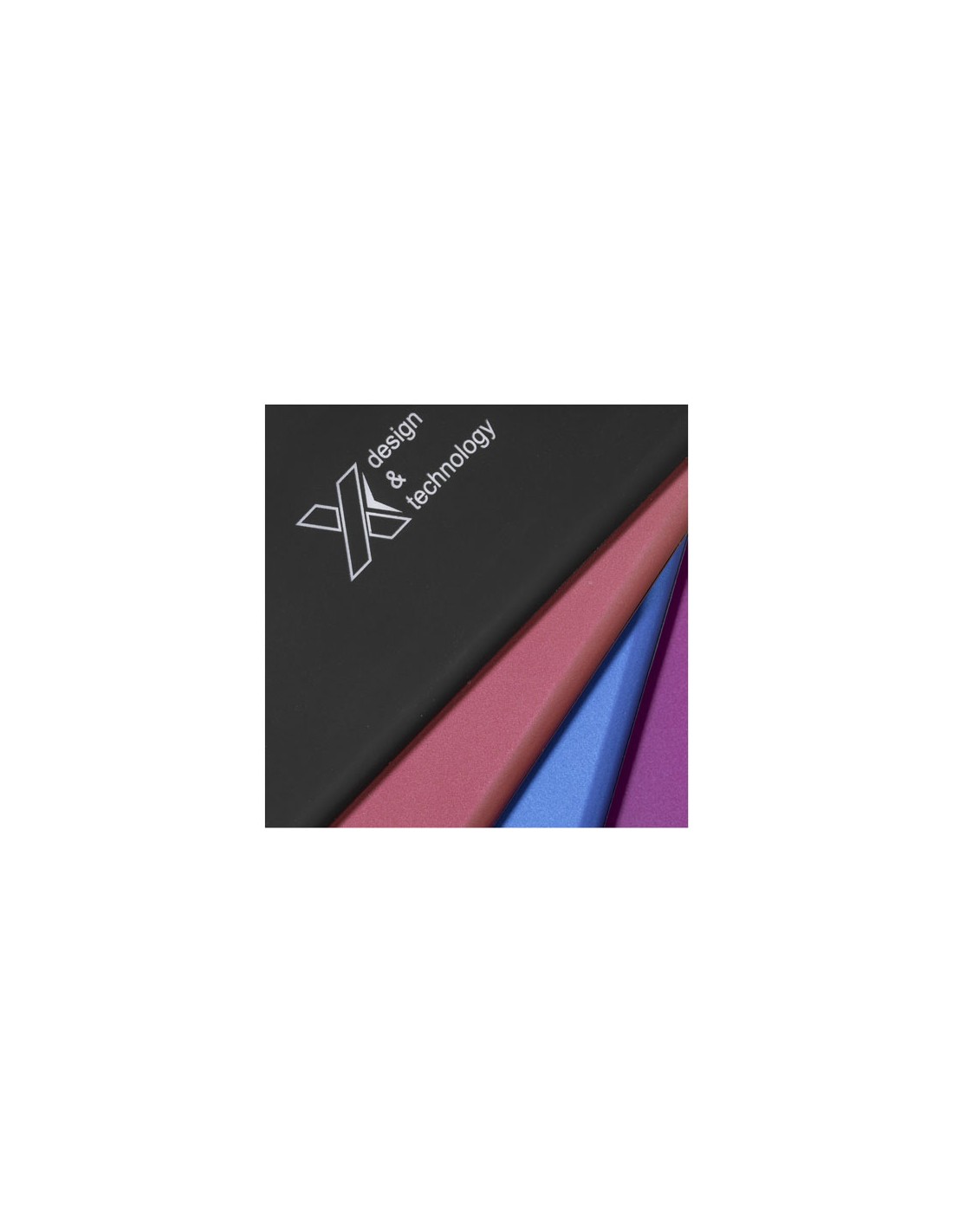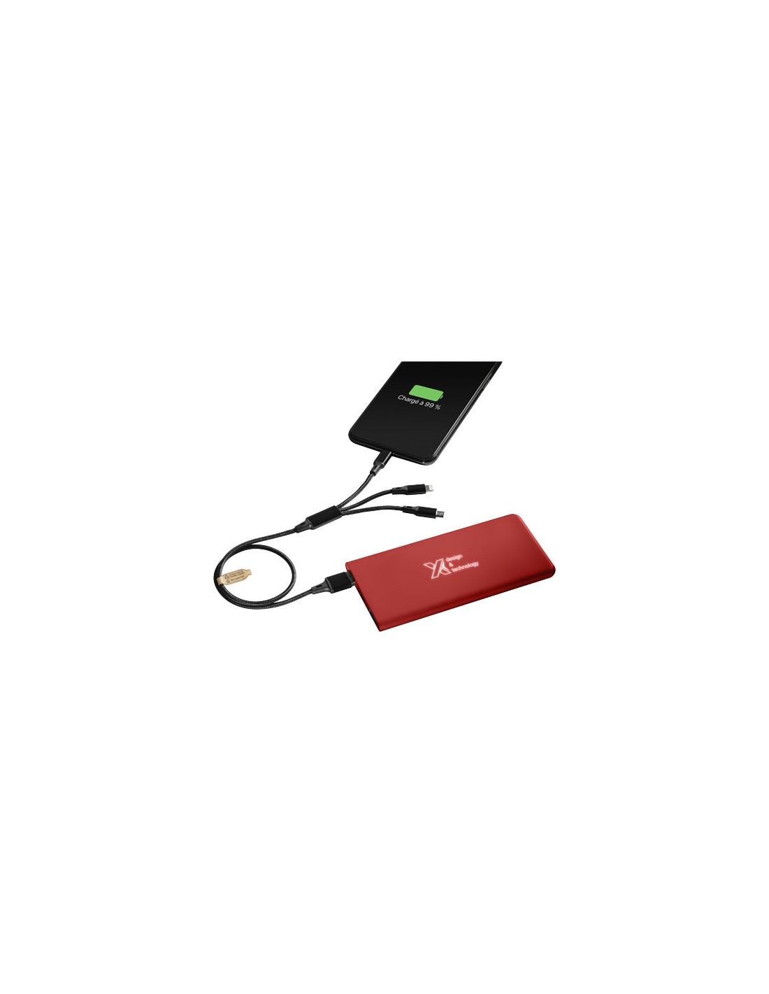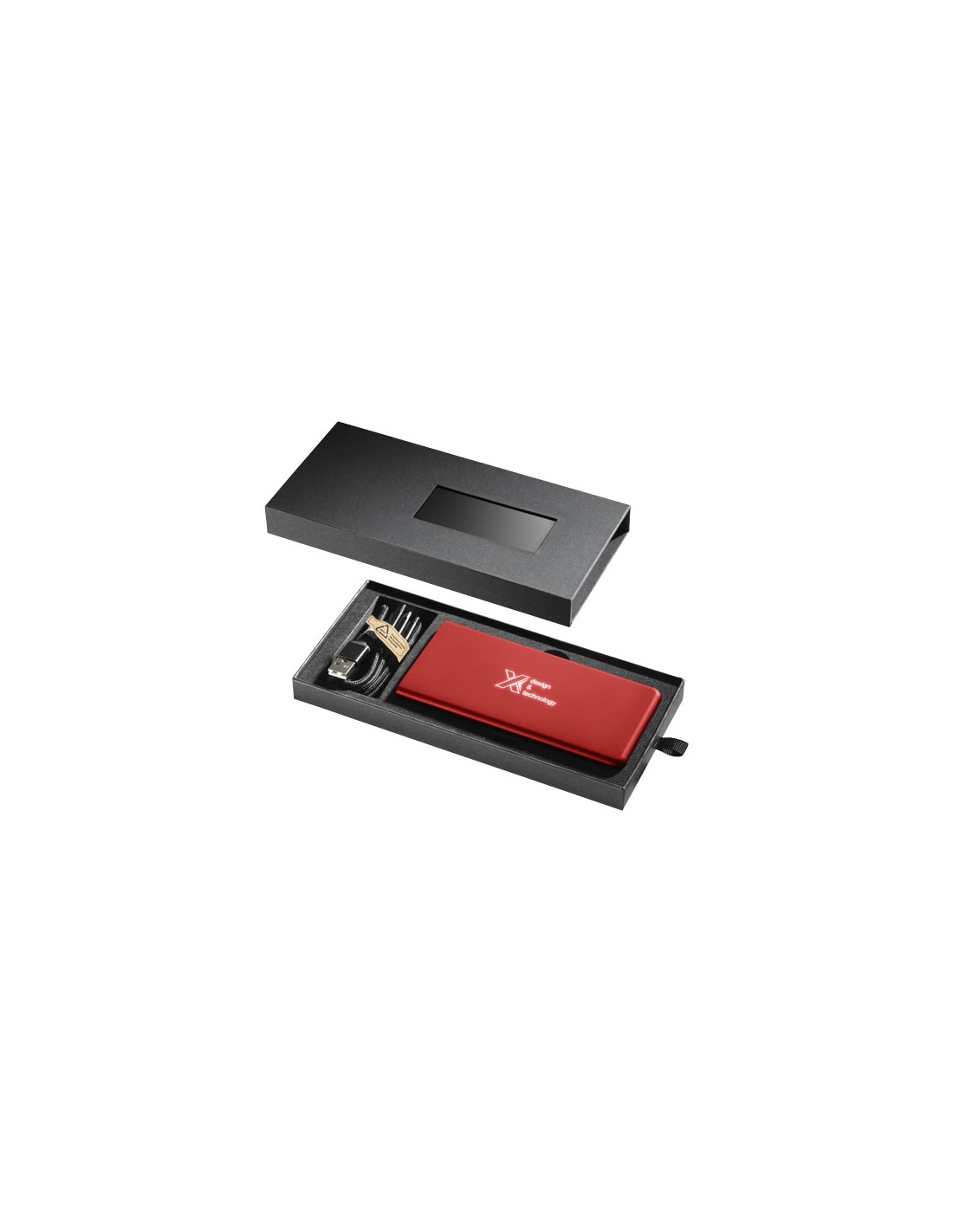 Power bank ultra sottile e leggero realizzato in gomma, con logo luminoso e cavo in plastica PET riciclata 5 in 1. Il dispositivo si illumina al tocco grazie alla "funzione di agitamento" e può rimanere acceso per un massimo di 20 giorni senza ricaricare la batteria. Capacità: 5000 mAh. Doppia uscita CC: Ricarica veloce 5 V/2 A e 5 V/2 A. Ingresso CC: Micro USB 5 V/2 A. Peso netto: 110 grammi. Dimensione: 138 x 66 x 8,5 mm. Viene fornito in una confezione regalo realizzata in carta riciclata.