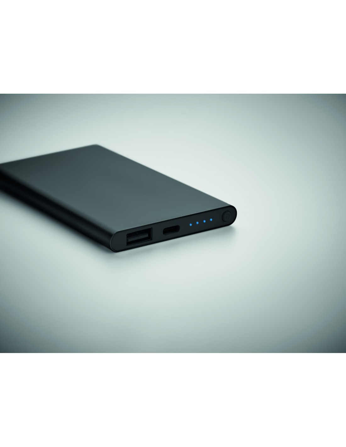 Powerbank compatto dalla forma rettangolare. La scocca in alluminio protegge la batteria da eventuali danneggiamenti. Premendo il pulsante principale, un LED indica il livello residuo della batteria. Cavo di ricarica incluso. La batteria agli ioni di litio si ricarica in circa 2 ore.
