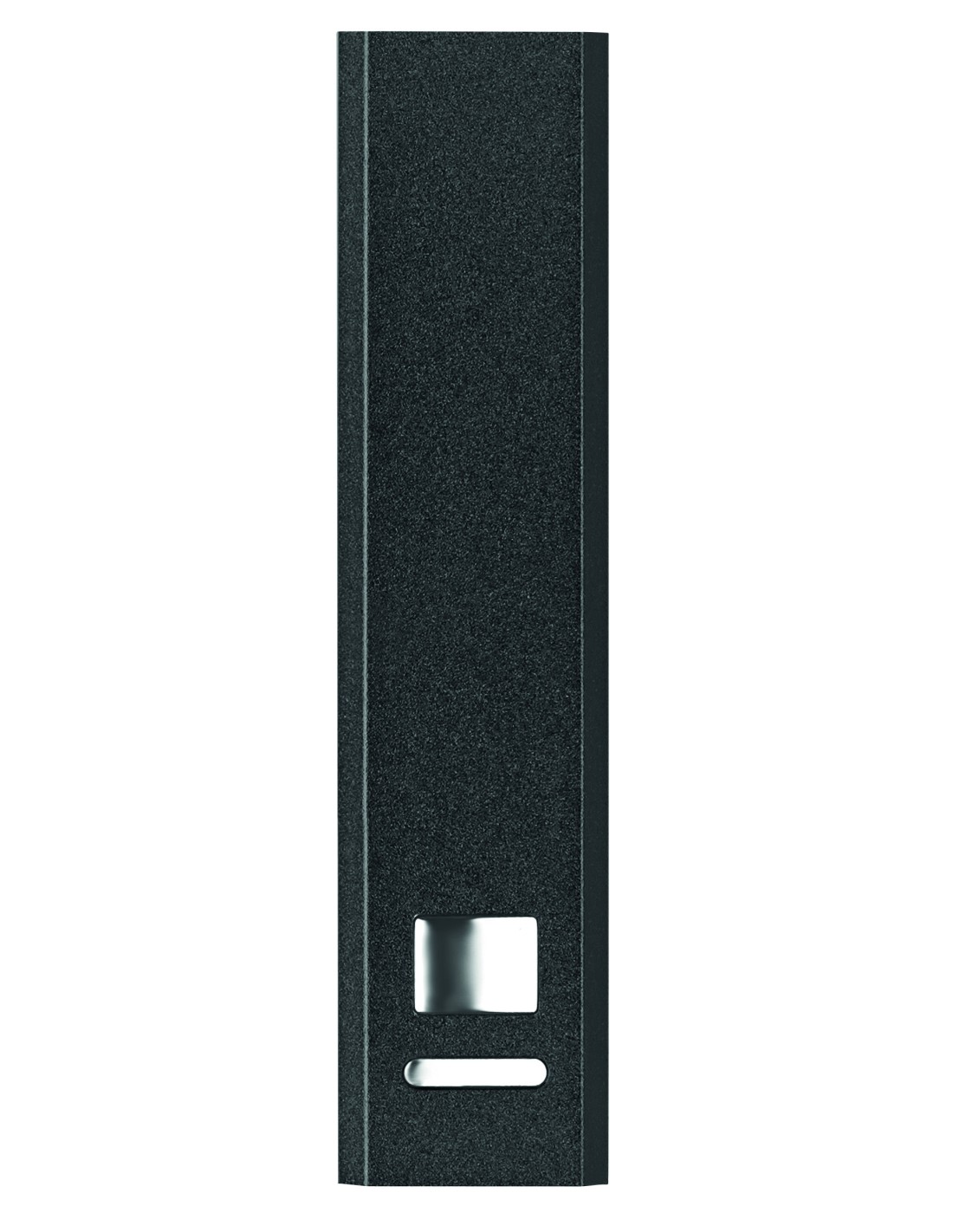Power bank 2200 mAh in alluminio riciclato. Energia per la carica di uno smartphone, output DC5V/1A. Cavo usb con micro usb incluso, indicatore con luce.