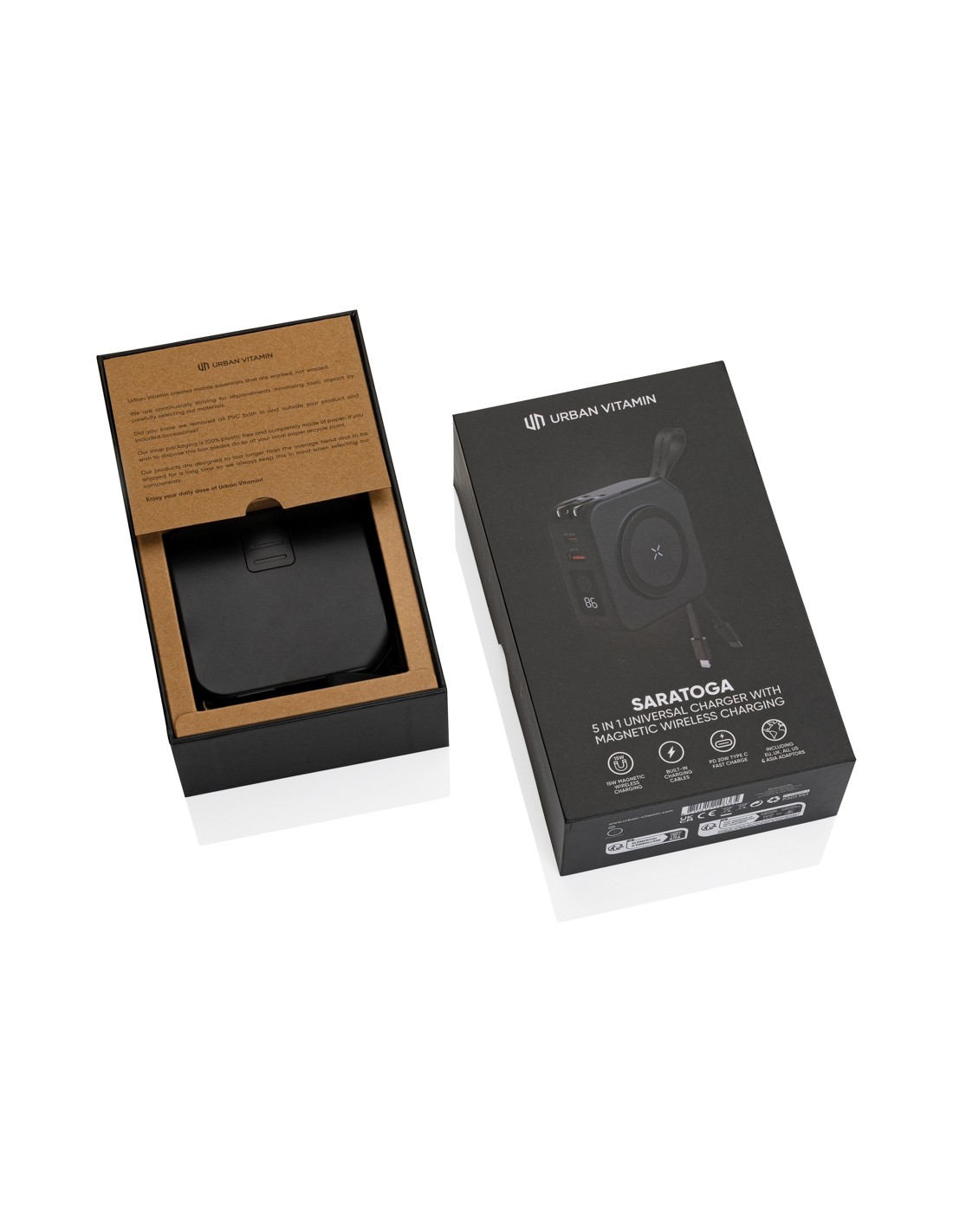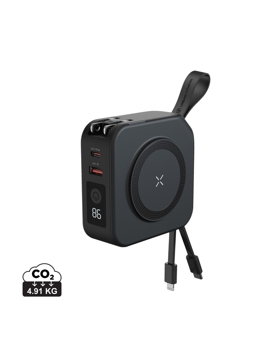 Power bank da 8000 mAh in alluminio riciclato. Capacità per uso smartphone, corrente di uscita DC5V/2A. Incluso cavo di ricarica USC Type-C. Ingresso/uscita: USB Tipo-C.