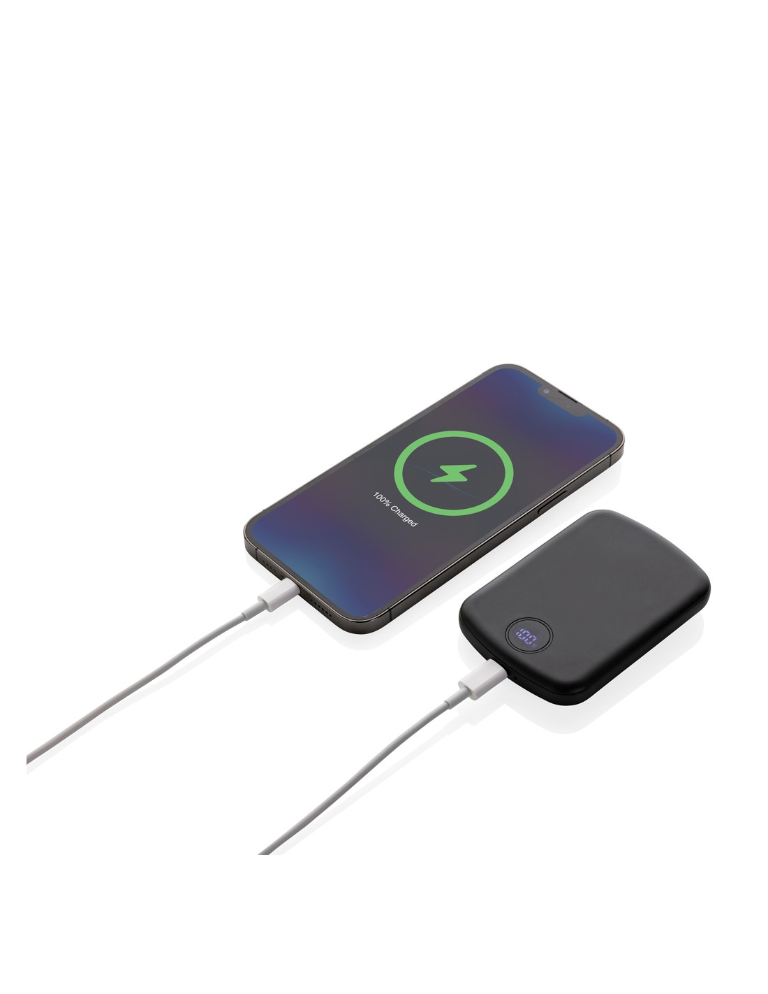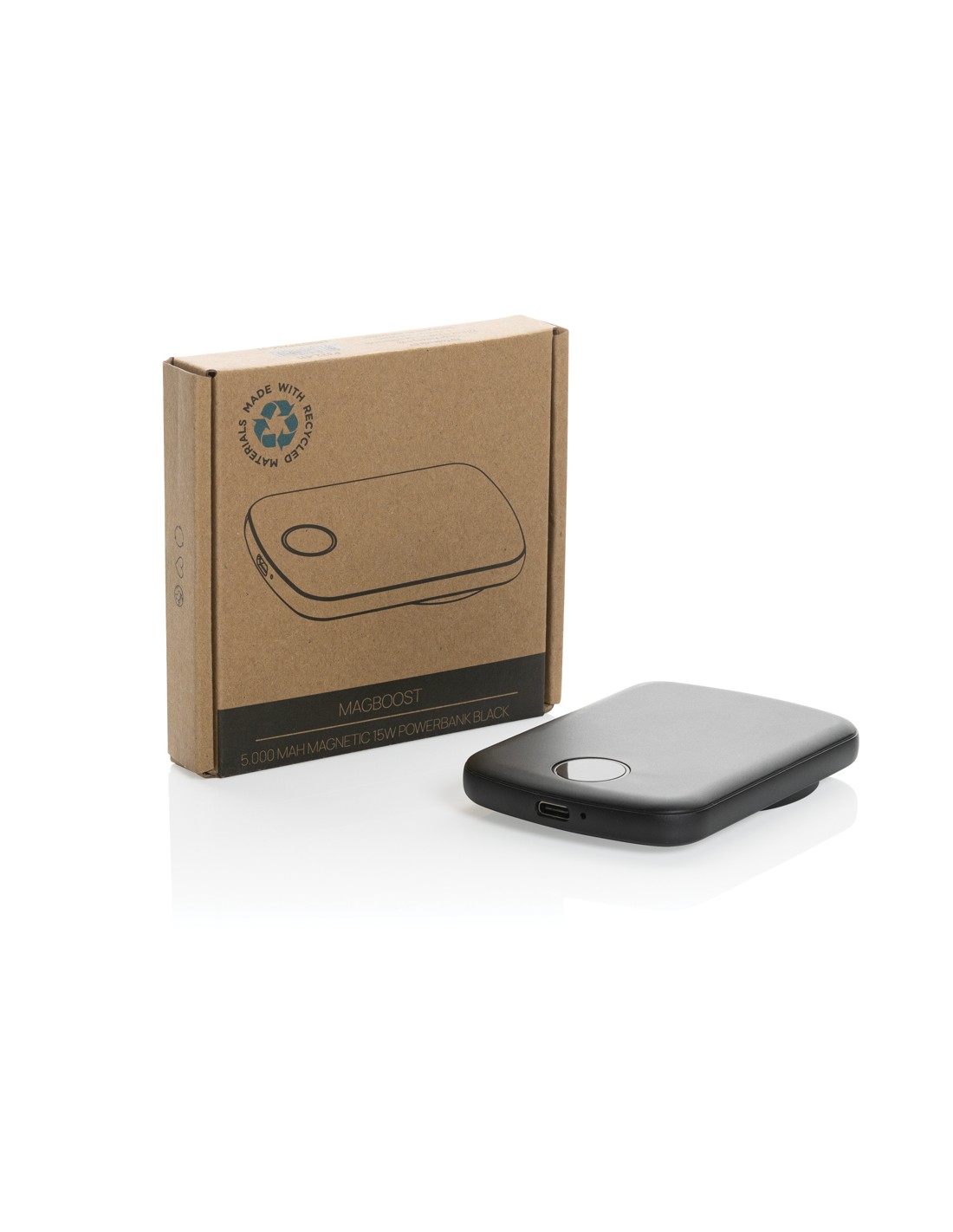 Powerbank tascabile da 5.000 mAh con caricatore wireless magnetico da 15W, la cui custodia è realizzata in plastica ABS riciclata certificata RCS. RCS (Recycled Claim Standard) è uno standard per verificare il contenuto riciclato di un prodotto lungo l'intera catena di fornitura. Contenuto riciclato totale: 21% in base al peso totale dell'articolo. La powerbank contiene una batteria ai polimeri di litio di grado A da 5.000 mAh a lunga durata. Lo schermo LED digitale integrato indica il livello di energia rimanente, in modo da sapere sempre quando è necessario ricaricare. Input Type-C 5V/2.4A; Output Type-C 5V/2A.4A. Articolo e accessori senza PVC. Include un cavo di ricarica in TPE riciclato certificato RCS. Confezionato in scatola FSC® mix. Input Type-C: 5V/3A 9V/2A 12V/1.5A; Output: USB-C, 5V/2.4A,9V/2.22A,12V/1.67A; Output wireless: 15W