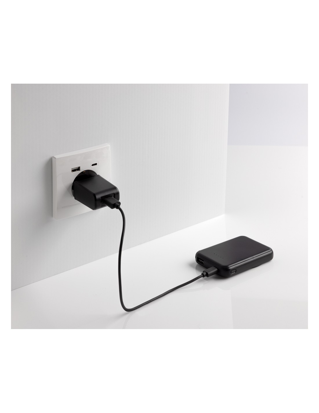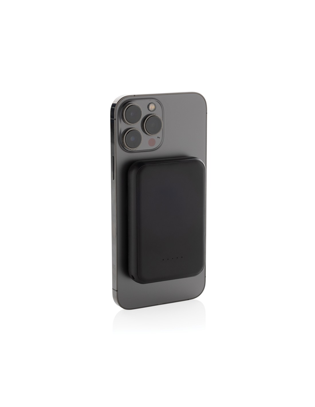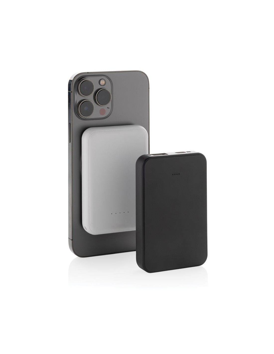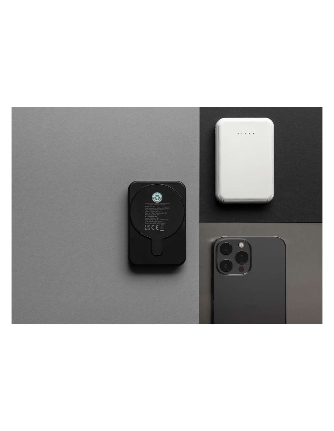 Powerbank tascabile da 5.000 mAh con caricatore wireless magnetico da 5W, la cui custodia è realizzata in plastica ABS riciclata certificata RCS. RCS (Recycled Claim Standard) è uno standard per verificare il contenuto riciclato di un prodotto lungo l'intera catena di fornitura. Contenuto riciclato totale: 20 % in base al peso totale dell'articolo. Con opzione di uscita USB A e una type C. La powerbank contiene una batteria ai polimeri di litio di grado A da 5.000 mAh a lunga durata. Gli indicatori di potenza indicano il livello di energia rimanente, in modo da sapere sempre quando ricaricare.; Input type C 5V/2.4A; uscita type C /USB A: 5V/2A.4A. Articolo e accessori privi di PVC. Incluso cavo di ricarica in TPE riciclato certificato RCS. Imballato in una confezione FSC® mix.