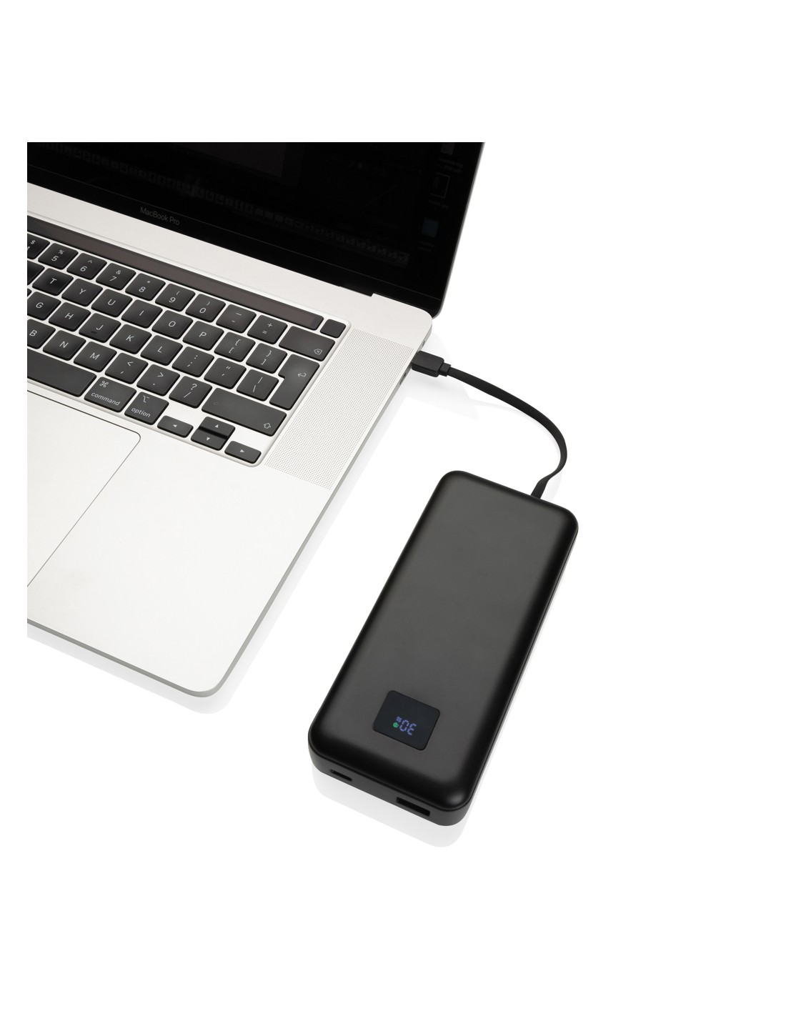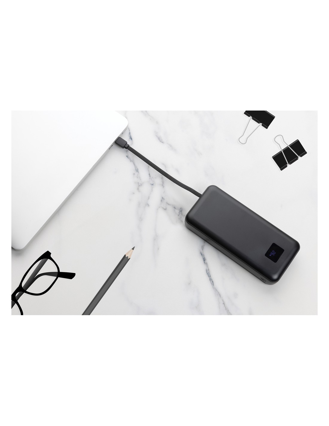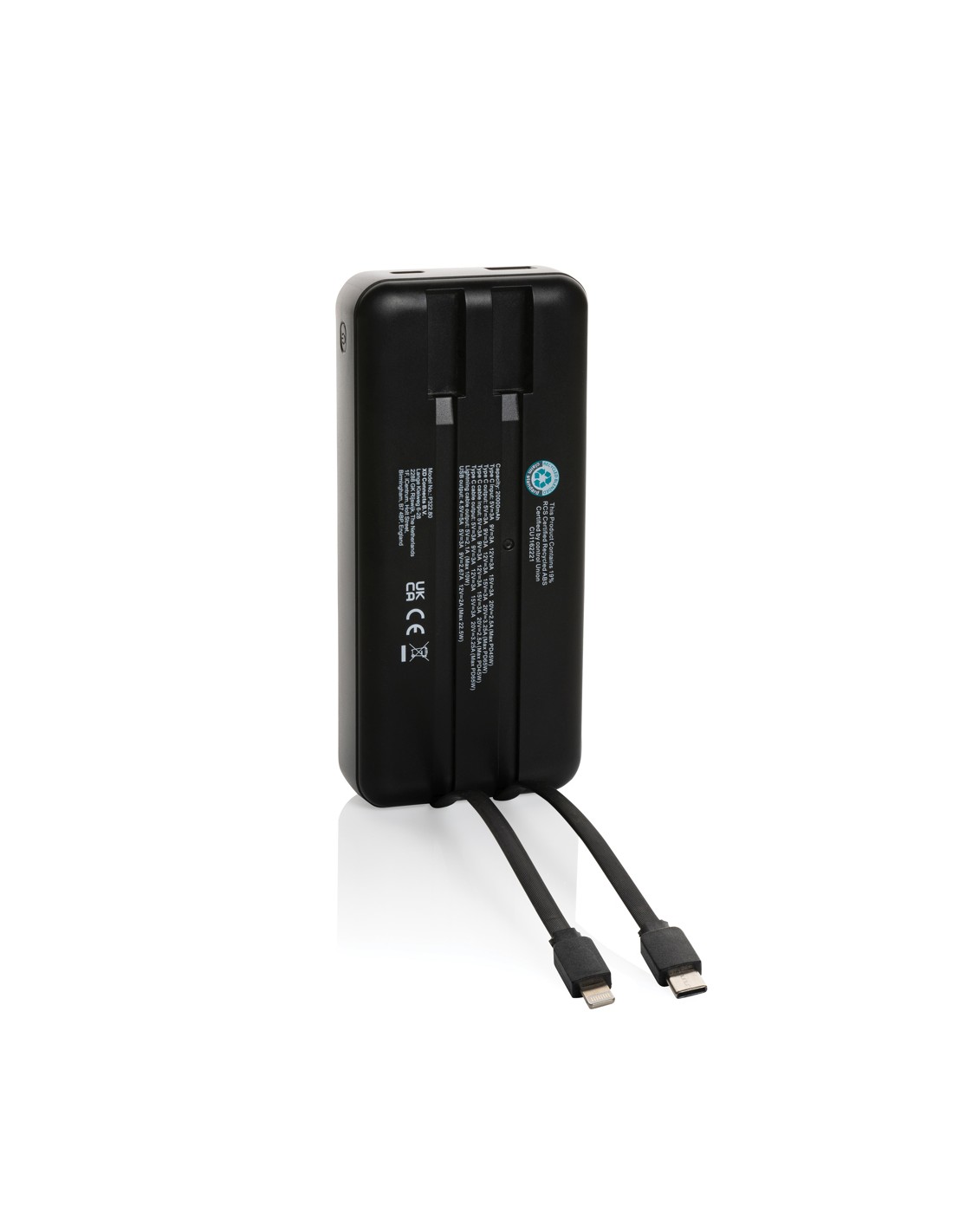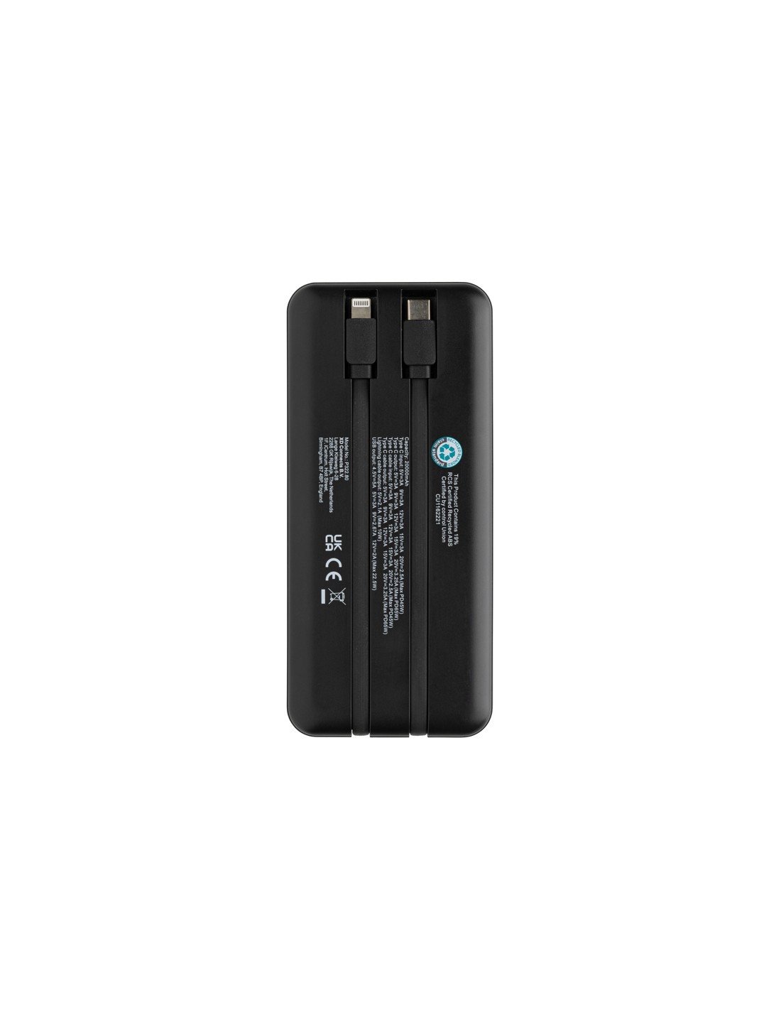 Siete stanchi di cercare continuamente prese di corrente? Ecco a voi il powerbank Supercharge da 65W! Powerbank da 20.000 mAh e 20W PD, con struttura in plastica ABS riciclata certificata RCS. L'RCS (Recycled Claim Standard) è uno standard per verificare il contenuto riciclato di un prodotto lungo l'intera catena di fornitura. Contenuto riciclato totale: 13% in base al peso totale dell'articolo. Carica tutti i tuoi dispositivi con facilità grazie alla potente uscita da 65W e ai cavi integrati type C e iOS. Dite addio ai cavi aggrovigliati e alle attese per le ricariche: si ricarica velocemente a 45W tramite type C e ricarica tutti i dispositivi tramite type C (fino a 65W) e tramite USB A (fino a 22,5W). Se siete un professionista impegnato, uno studente in viaggio o un avventuriero, questa powerbank è il vostro compagno ideale. Dite addio all'ansia da batteria scarica e date il benvenuto a una ricarica affidabile e veloce con la Supercharge Powerbank da 65W. Schermo LED.