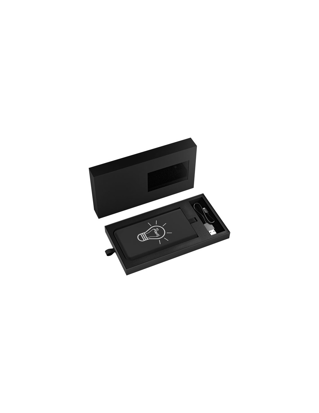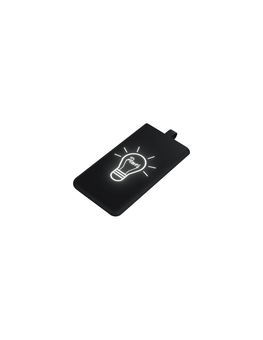 Power bank da 3.000 mAh con logo luminoso, dotatщ di cavo integrato 3 in 1 (tipo C, Android, iPhone). Il logo si illumina per 30 secondi al tocco del power bank. Rimane illuminato anche durante la ricarica del dispositivo. Fornito in una confezione regalo con chiusura magnetica. Ingresso/uscita DC: 5 V/2 A. Dimensione: 112 x 62 x 11 mm.