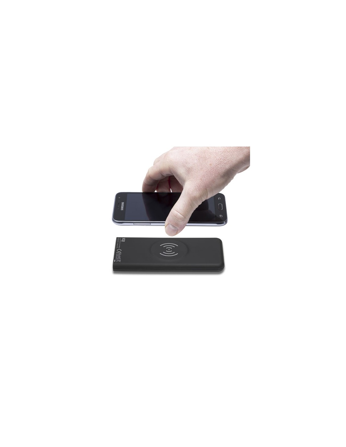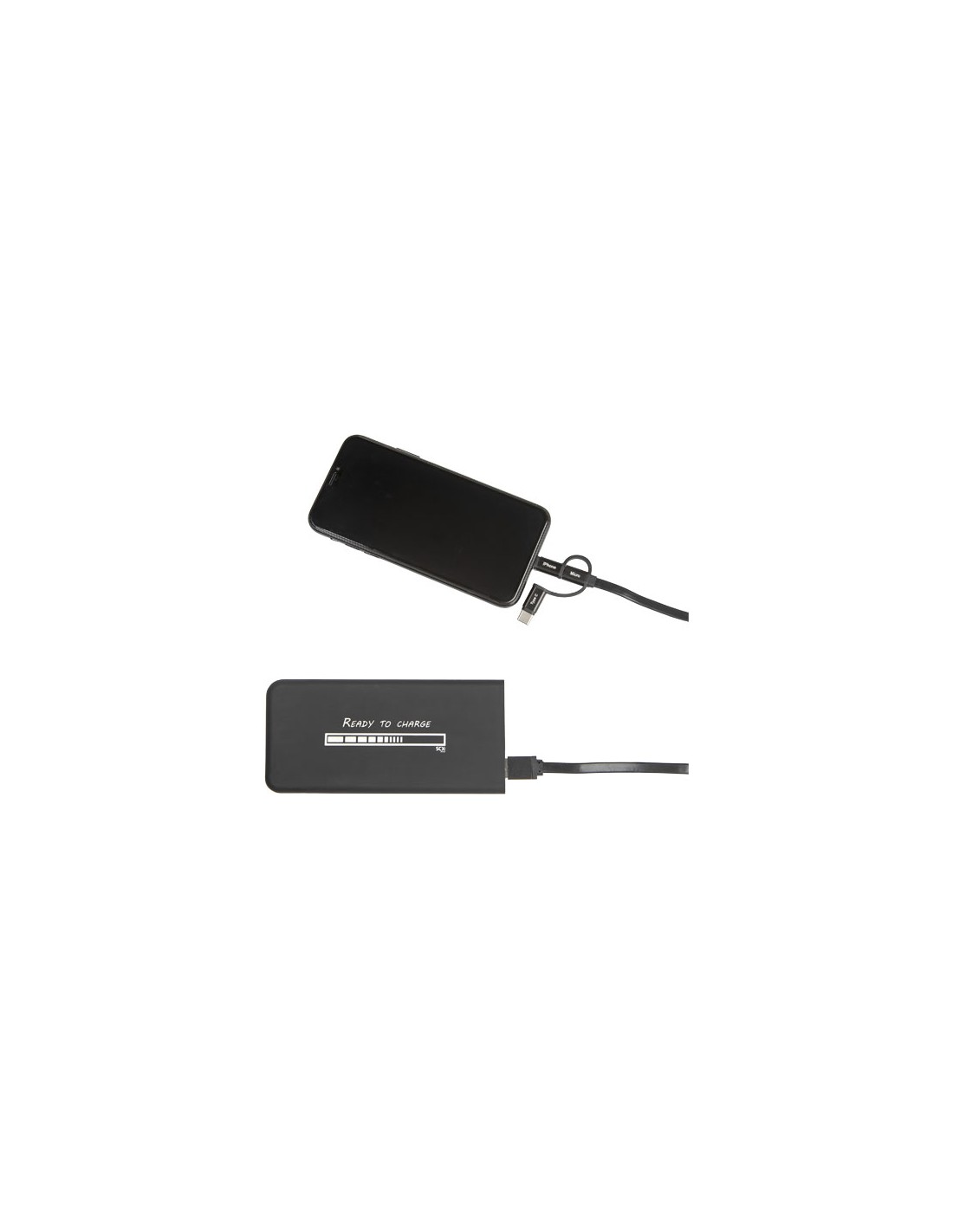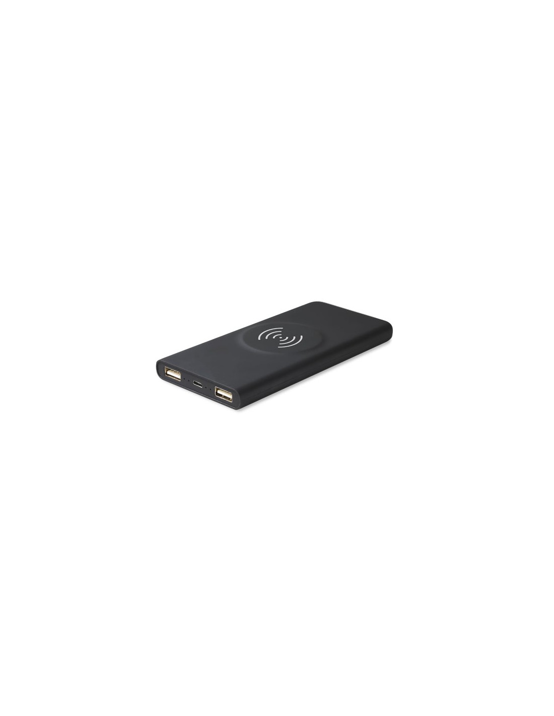Power bank da 8000 mHa in alluminio riciclato. Adatto a smartphone, output DC5V/1A. E DC5V/2A. Include indicatore di luce e cavo USB con micro USB.