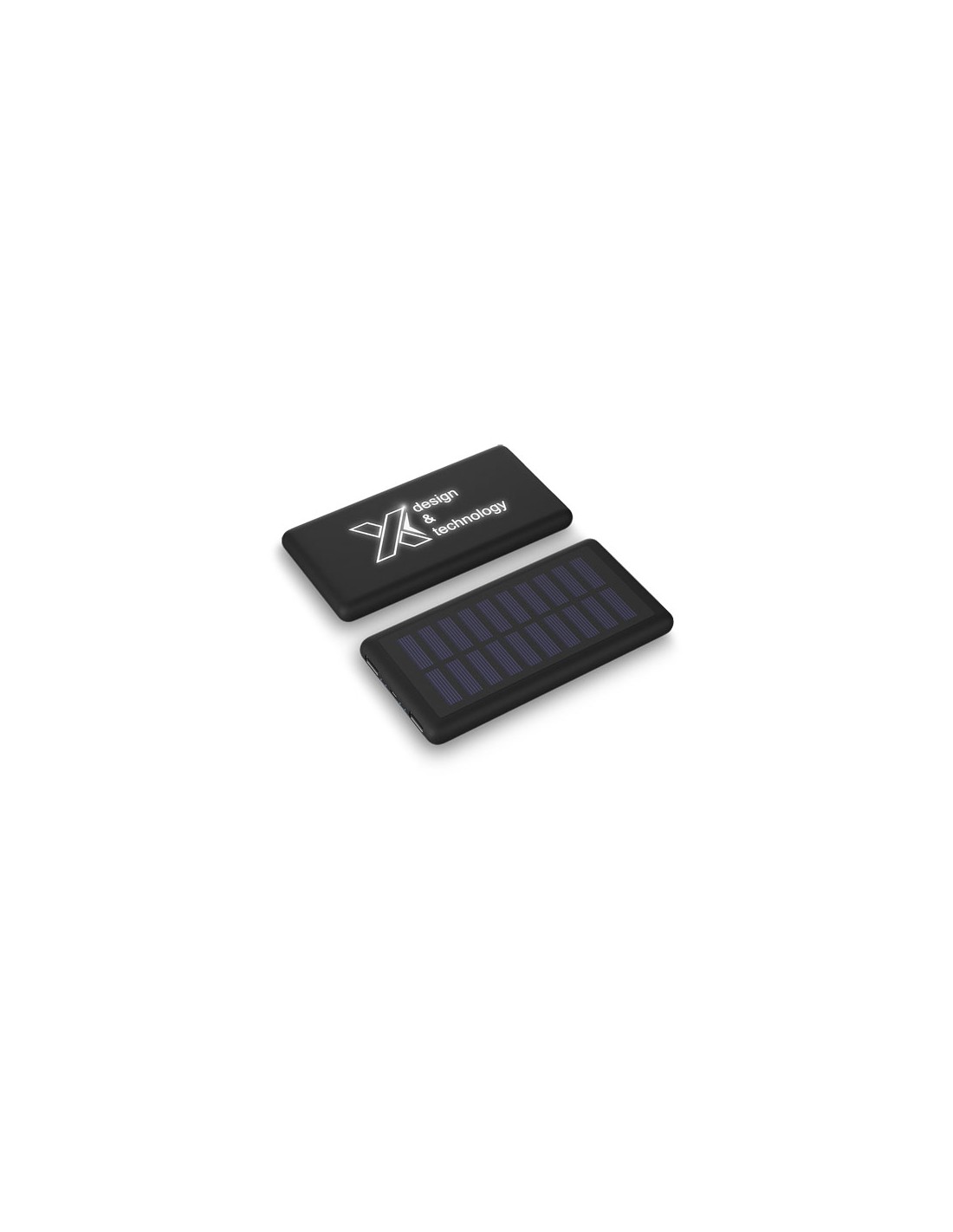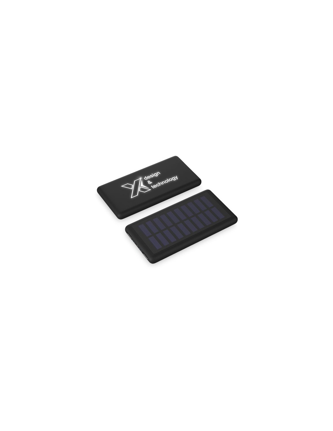 Power bank luminoso da 8.000 mAh a carica solare con cavo 3 in 1 in PET riciclato (tipo C, Android, iPhone). Il pannello solare è realizzato in silicio monocristallino. La ricarica può essere effettuata anche tramite il cavo in dotazione. Il dispositivo si illumina per 30 secondi quando viene toccato o ricaricato. Capacità: 8000 mAh. Ingresso: 5 V/1 A (USB). Uscita: 5 V/2 A. Tempo di ricarica solare/luce artificiale: 240 mAh/ora (circa 27 ore per una carica completa). Può essere ricaricato anche con il cavo in dotazione. Dimensione: 153 x 76 x 13,5 mm. Fornito in una confezione regalo realizzata in carta riciclata.