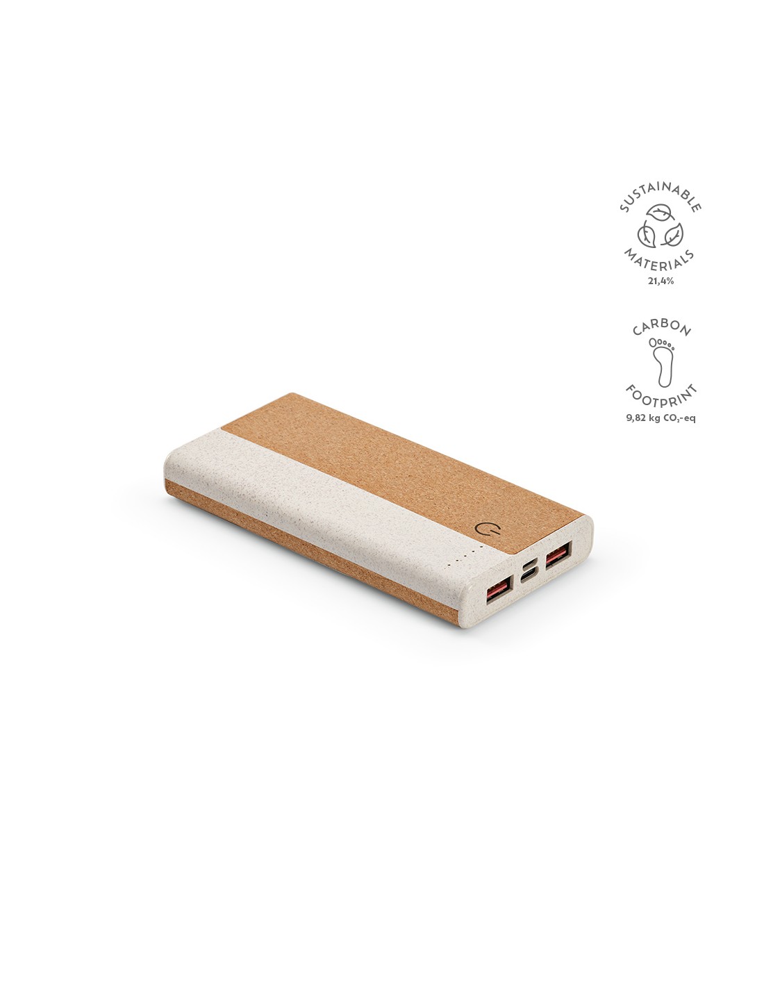 Powerbank Archimedes, sughero e paglia di grano, 10.000mAh.