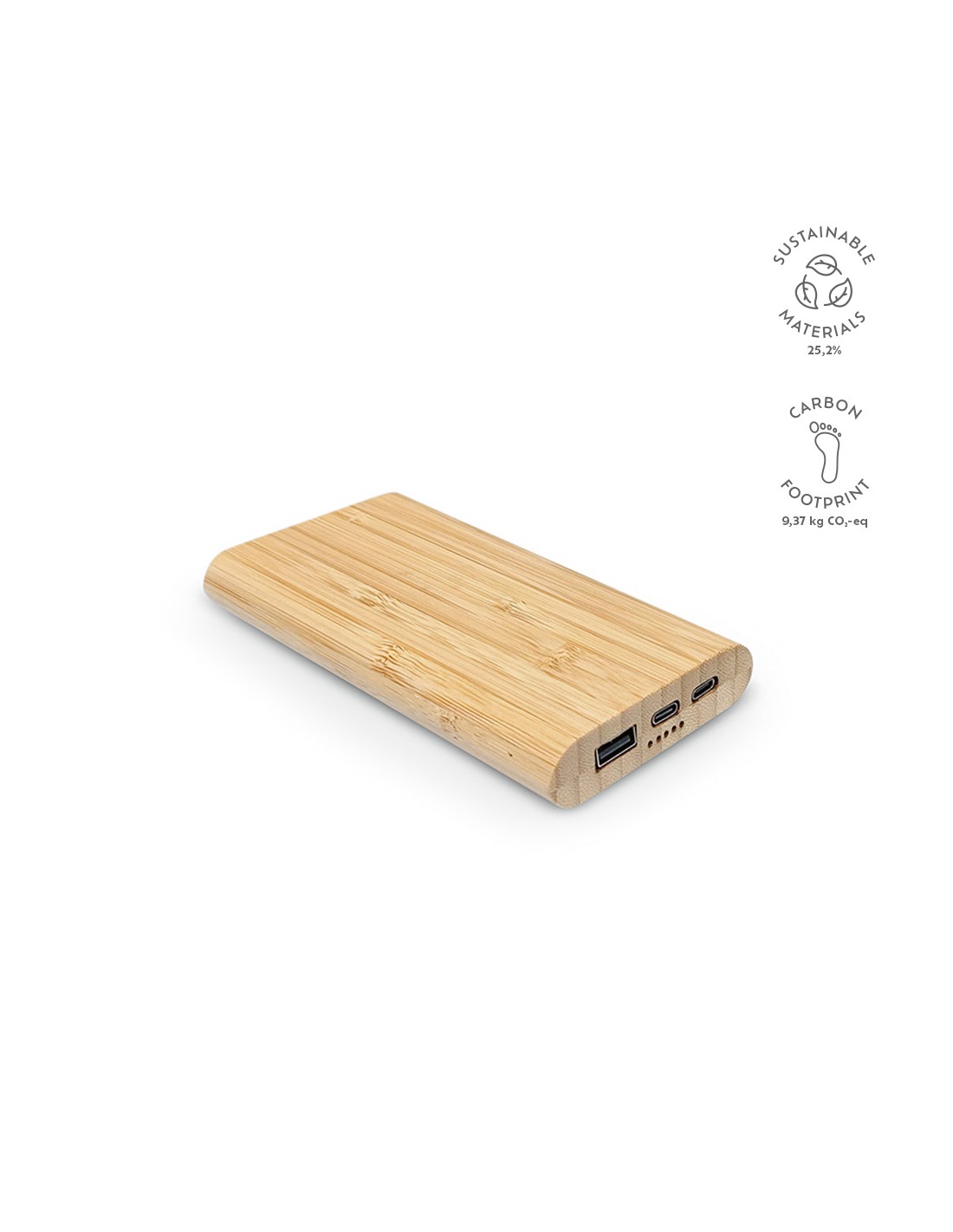 Powerbank da 8000 mAh con struttura in bambù certificato FSC al 100%. La powerbank contiene una batteria ai polimeri di litio di grado A da 8.000 mAh di lunga durata. La powerbank offre sia la ricarica via cavo che la ricarica wireless da 5W. Grazie agli indicatori di alimentazione saprai sempre...