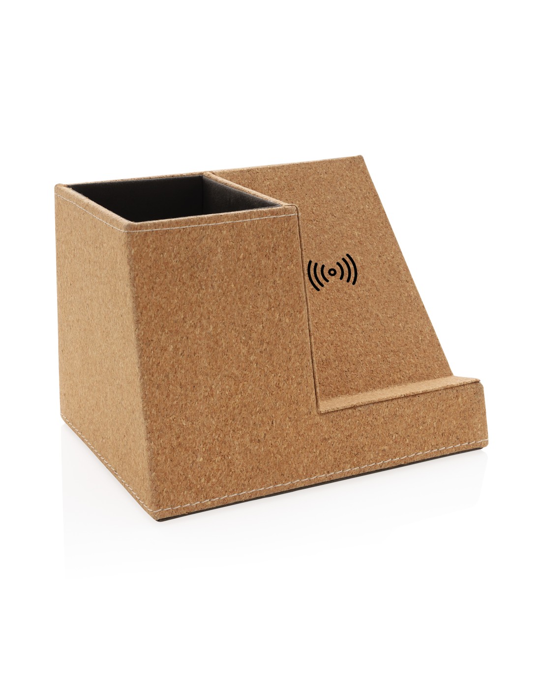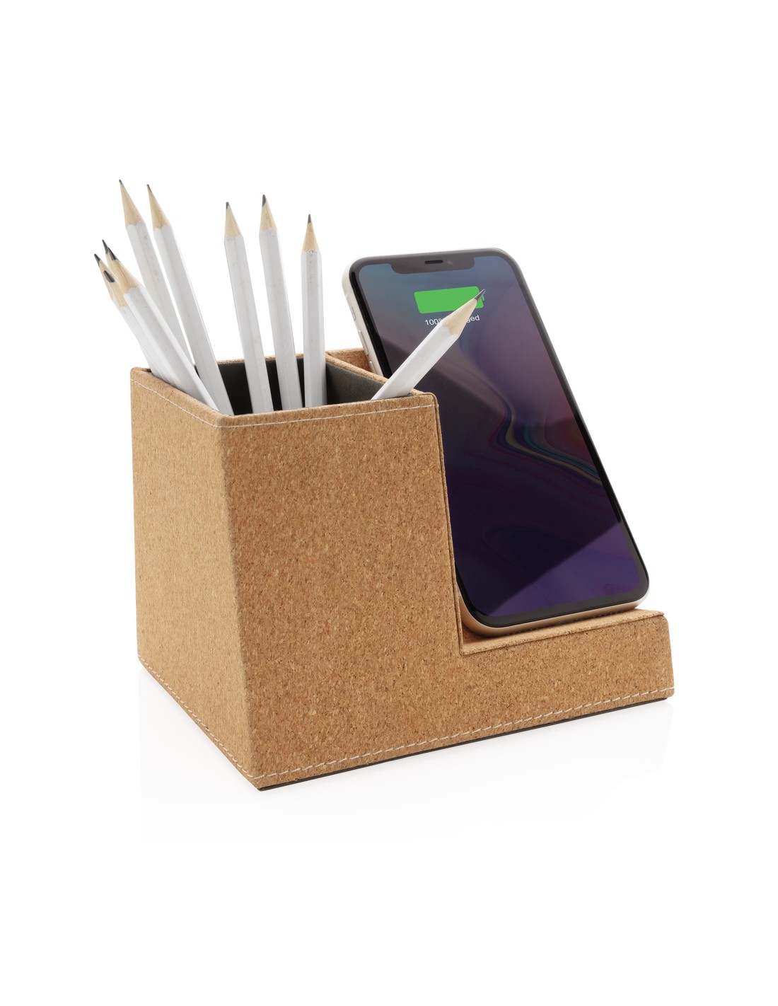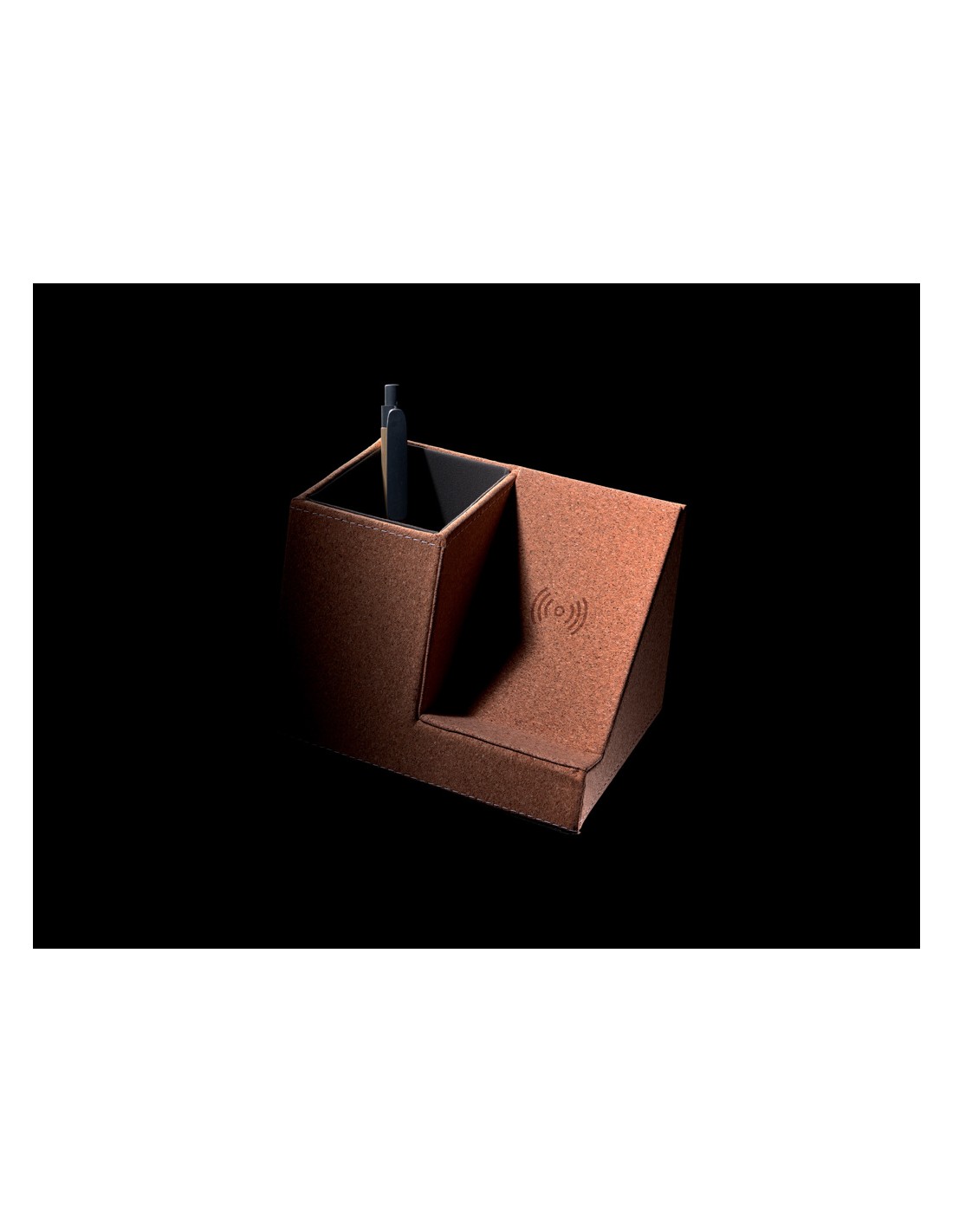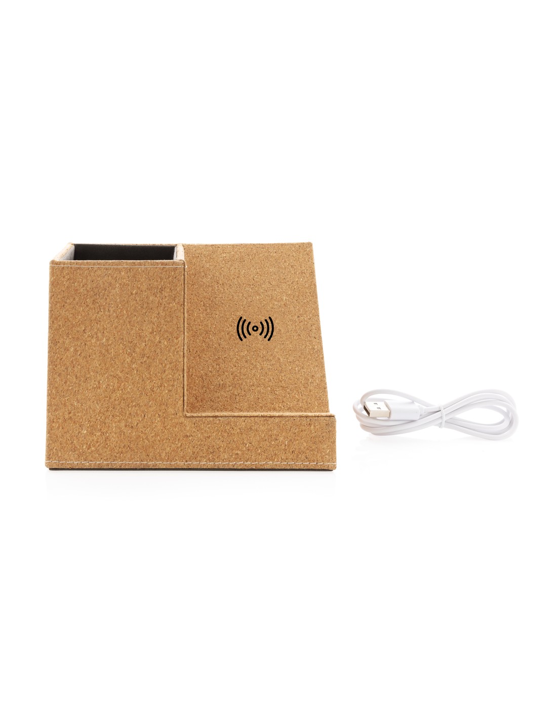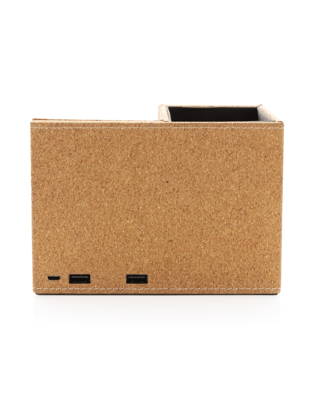 Porta penne e caricatore wireless 5W realizzato in sughero naturale. Il cavo micro USB da 150 cm è in fbra di grano (15%) mischiata a TPE. E' compatibile con tutti i dispositivi che supportano la tecnologia QI quali Android di ultima generazione e iPhone 8 e versioni successive. Nella parte posteriore ci sono 2 porte USB A in output per la ricarica via cavo. Input: 5V/2A; Output wireless: 5/1A - 5W. 2x USB Output 5V/2A. Sia l'oggetto che gli accessori non contengono PVC.