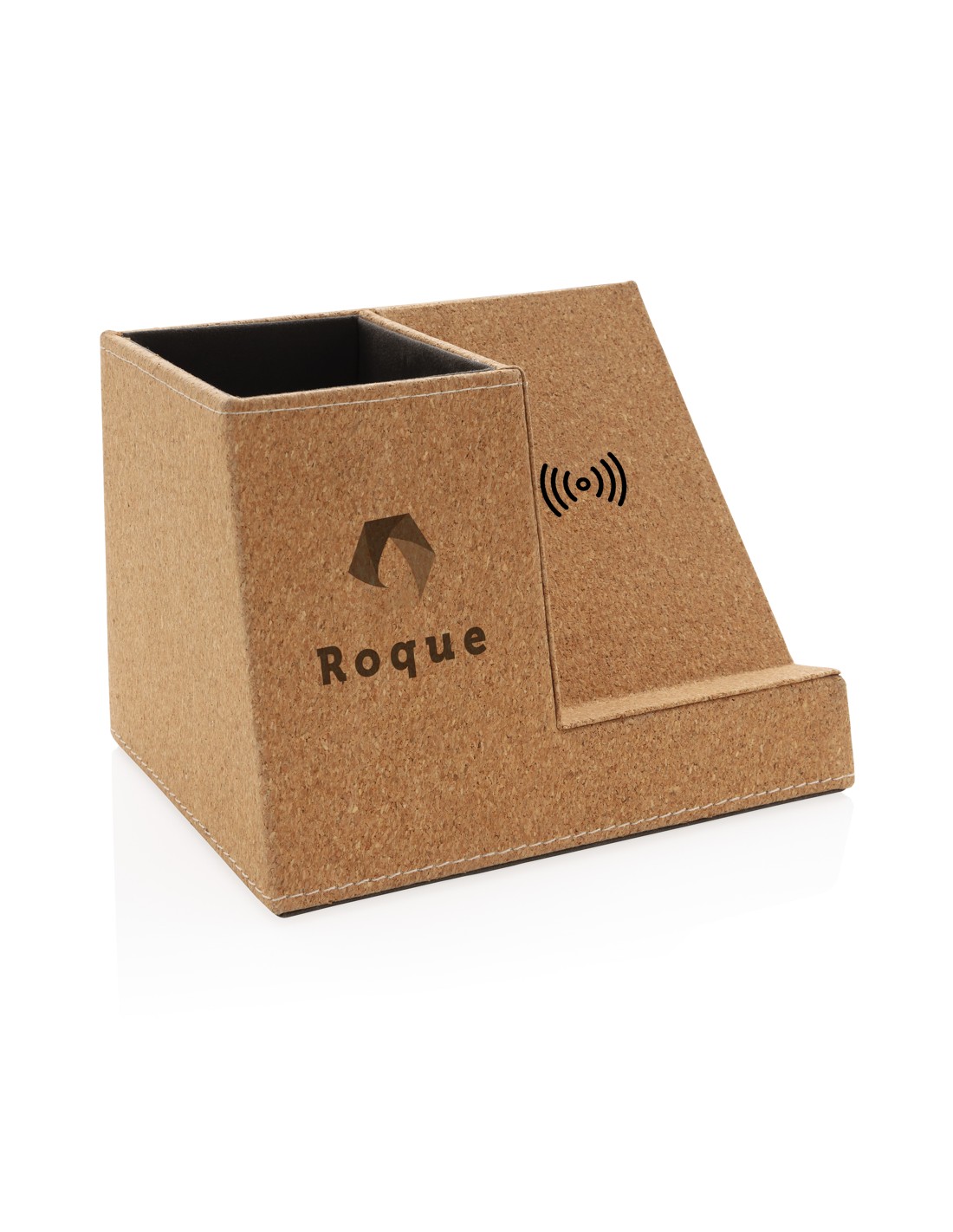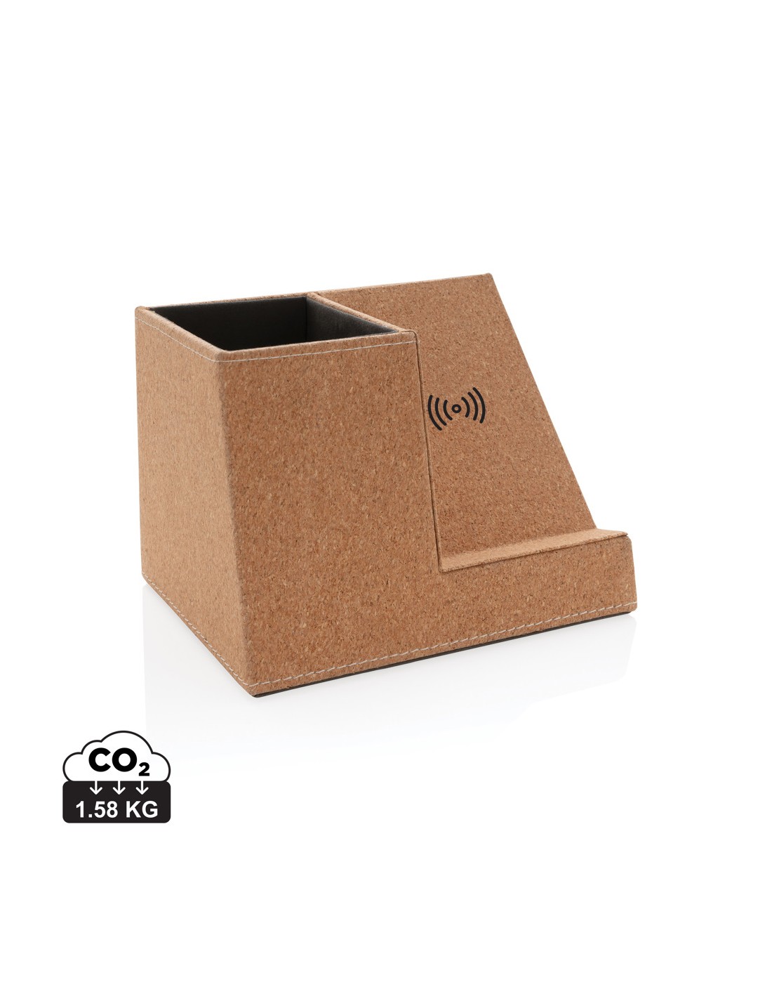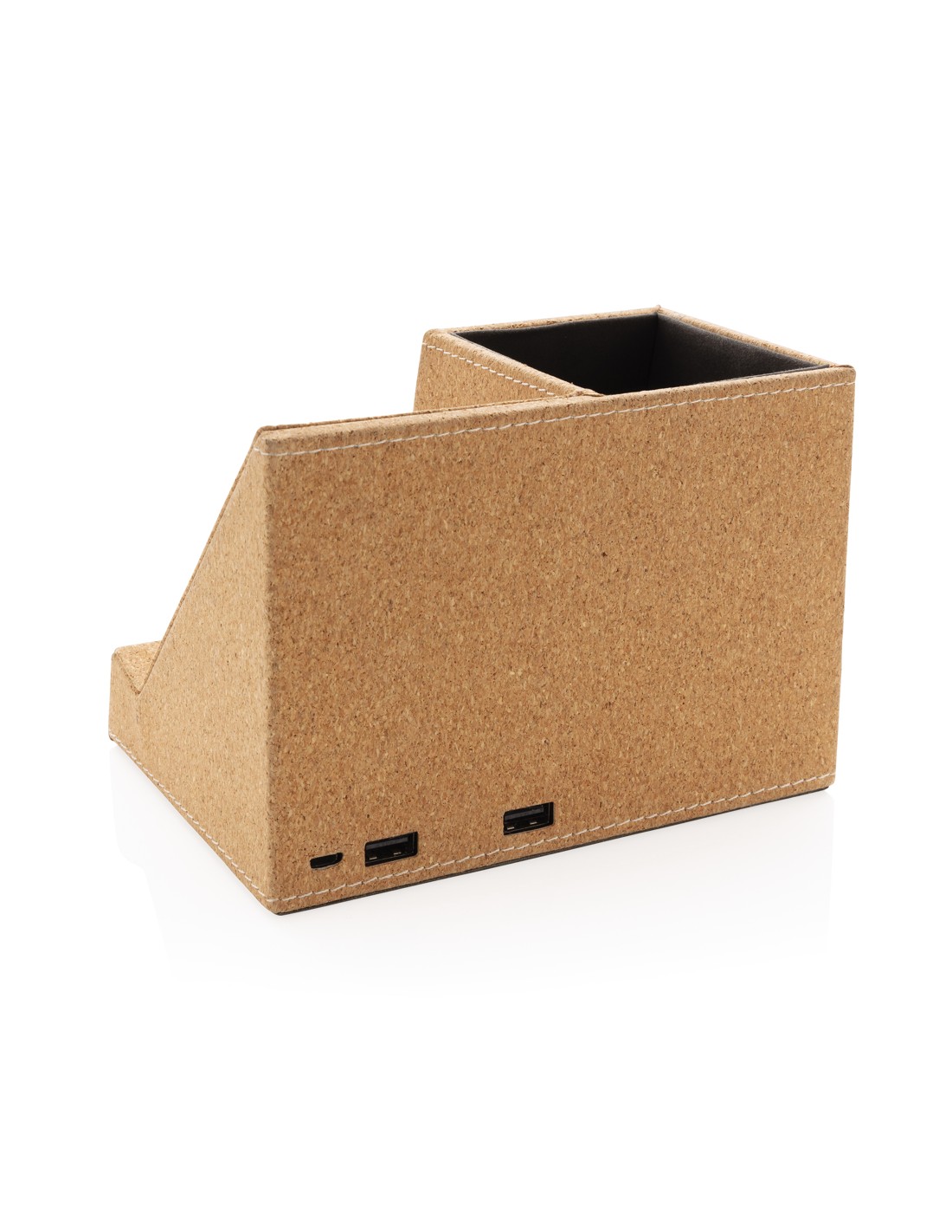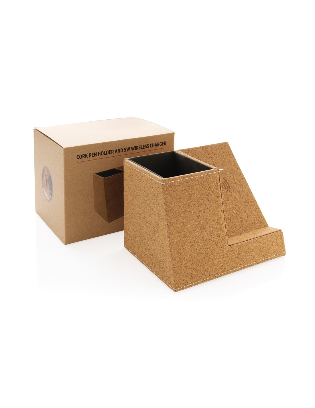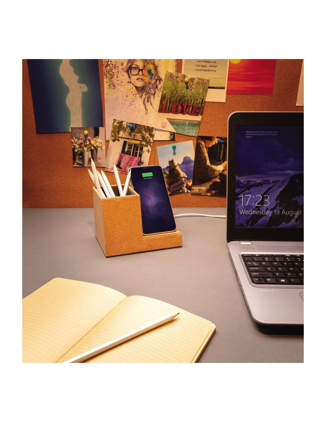 Porta penne e caricatore wireless 5W realizzato in sughero naturale. Il cavo micro USB da 150 cm è in fbra di grano (15%) mischiata a TPE. E' compatibile con tutti i dispositivi che supportano la tecnologia QI quali Android di ultima generazione e iPhone 8 e versioni successive. Nella parte posteriore ci sono 2 porte USB A in output per la ricarica via cavo. Input: 5V/2A; Output wireless: 5/1A - 5W. 2x USB Output 5V/2A. Sia l'oggetto che gli accessori non contengono PVC.