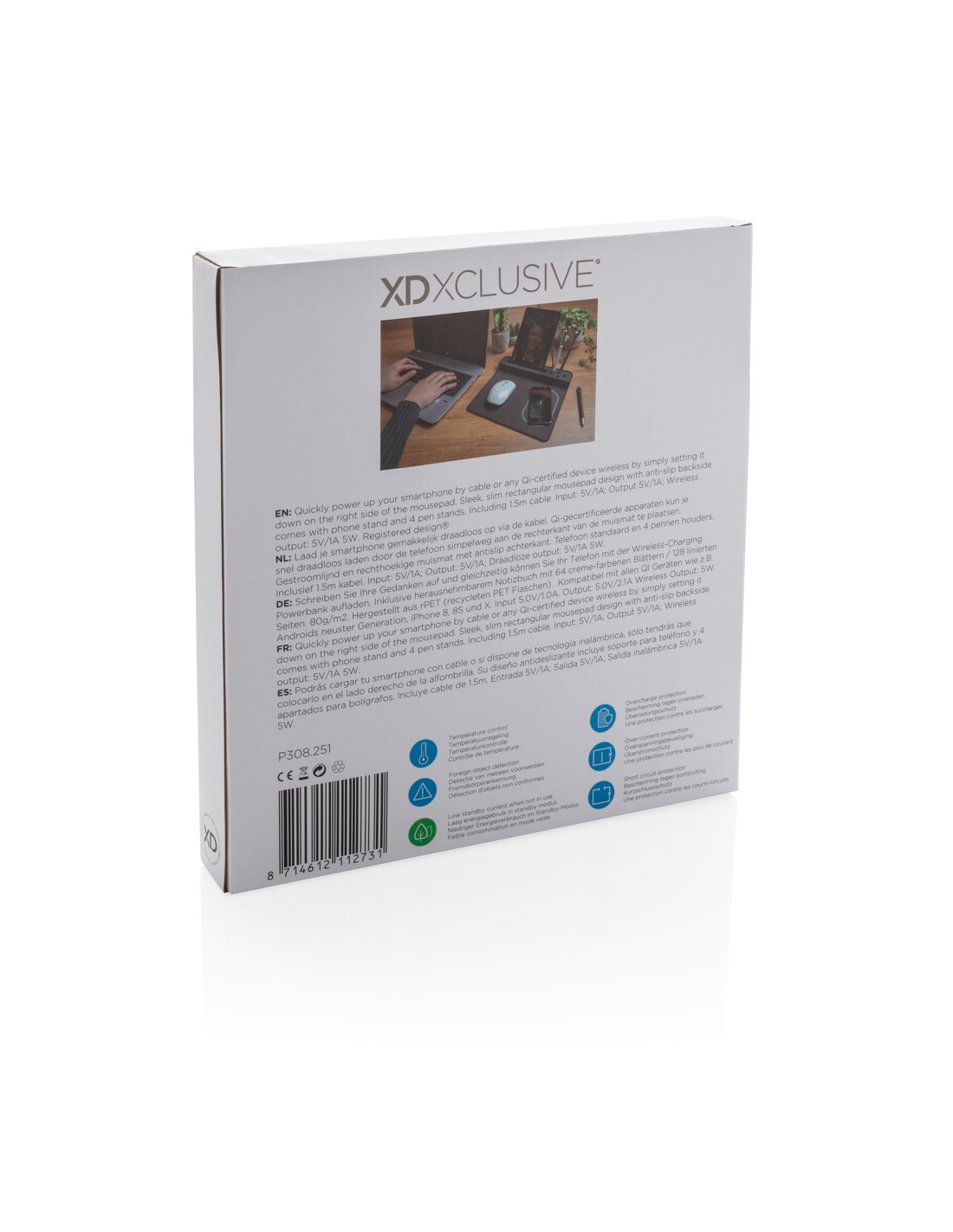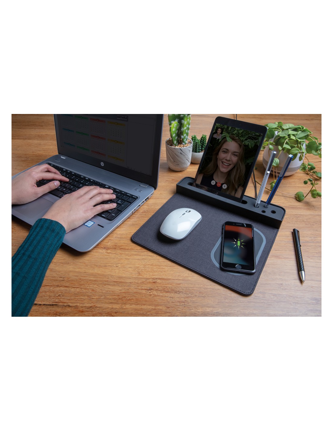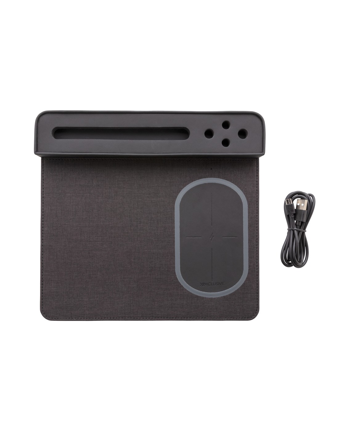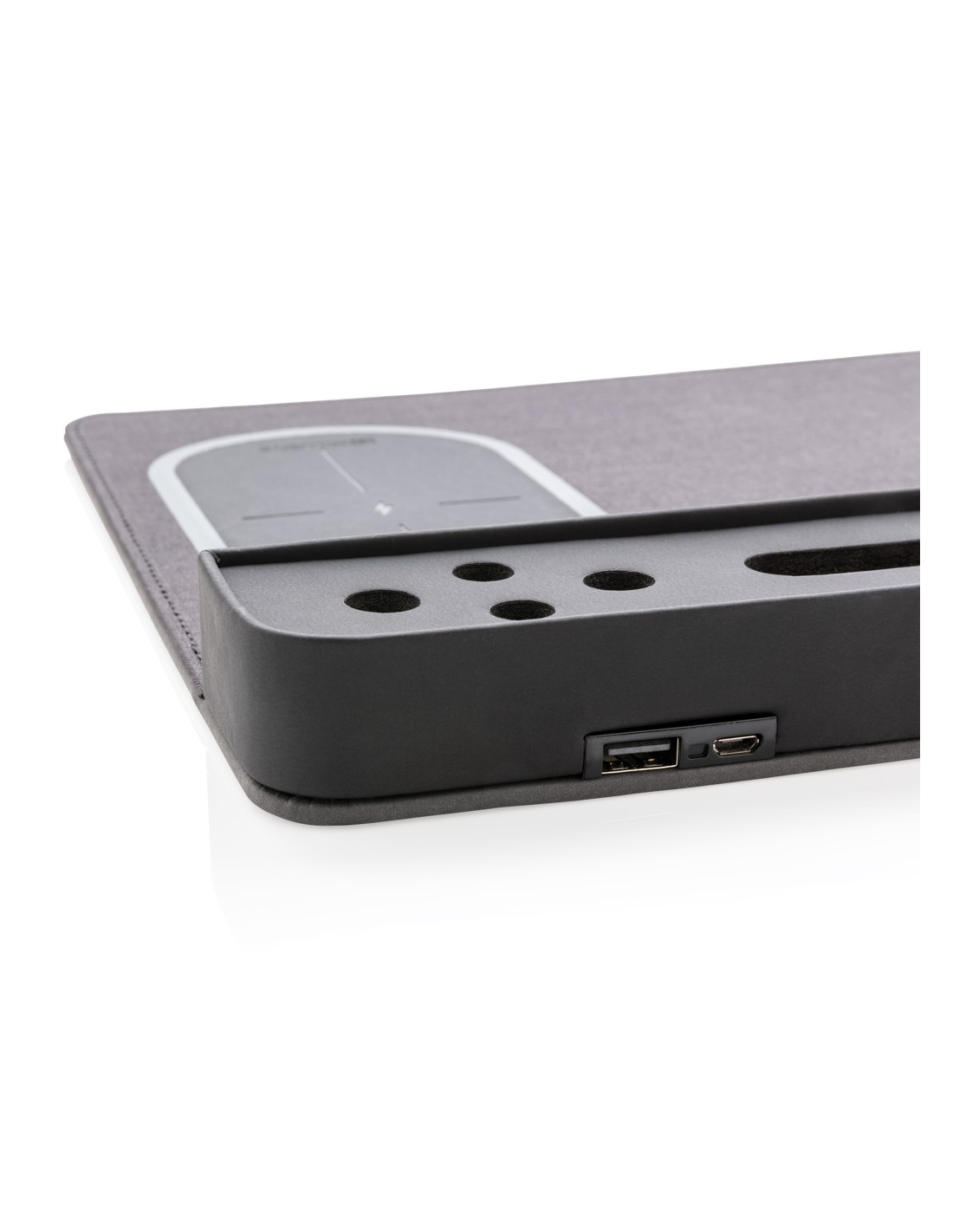 Portapenne e supporto per smartphone realizzato in bambù certificato FSC 100 con caricatore wireless da 10W realizzato con ABS riciclato certificato RCS (Recycled Claim Standard). Contenuto totale riciclato: 6% in base al peso totale dell'articolo (compresa la parte in bambù). Include cavo di...