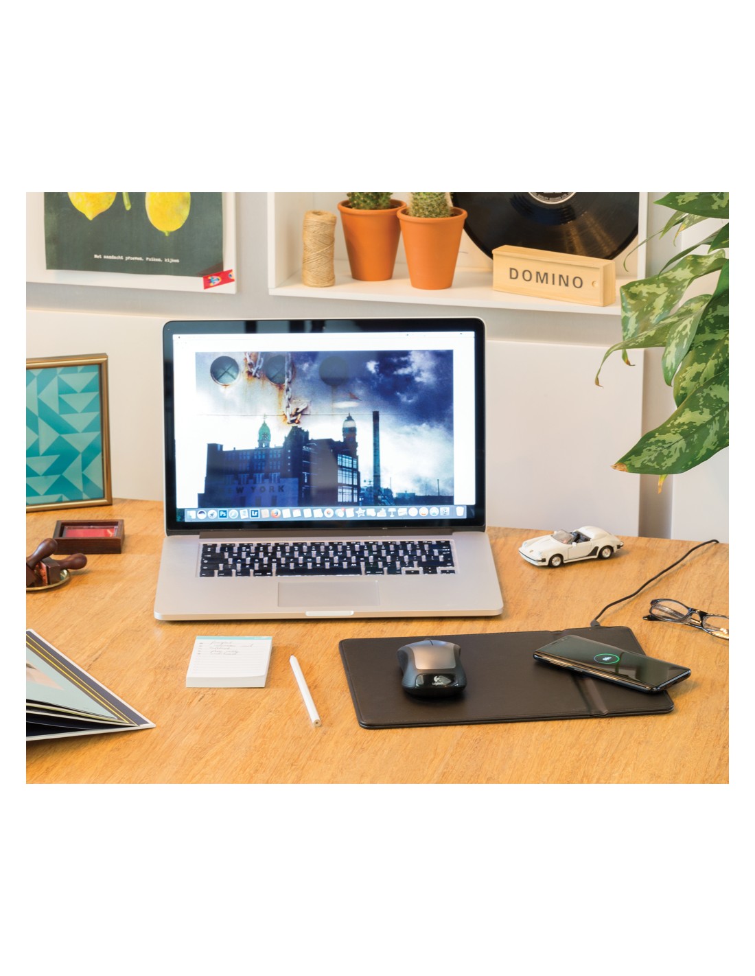 Caricabatterie a induzione da 10 W con logo luminoso compatibile con ricarica Qi. Il caricabatterie può essere piegato per creare un supporto orizzontale o verticale per il dispositivo. È leggero e facilmente trasportabile ed è il dispositivo perfetto quando si è in giro. I magneti incorporati...