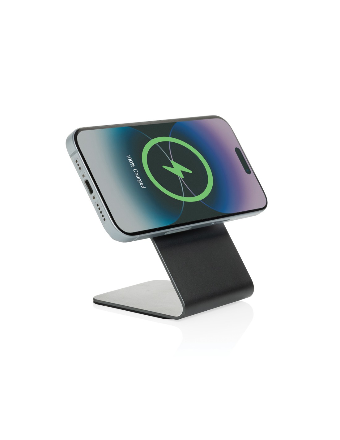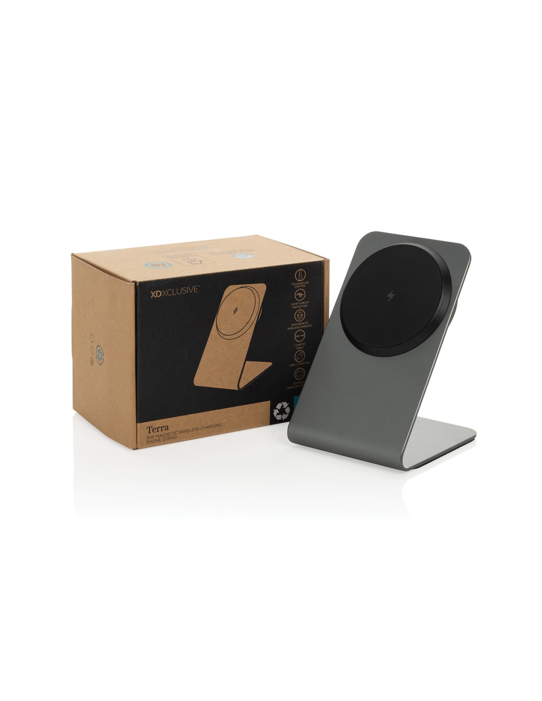 Il supporto magnetico wireless Terra da 15W in alluminio ridefinisce il concetto di raffinatezza e prestazioni. Il suo potente sistema magnetico garantisce una presa sicura per il tuo dispositivo. Grazie a 15 magneti di precisione, assicura un allineamento perfetto per una ricarica efficiente, sia in orizzontale che in verticale. I cuscinetti in silicone alla base aggiungono stabilità, mentre l'indicatore di carica integrato conferisce un tocco di eleganza discreta. Realizzato in alluminio e AVS riciclato certificato RCS, combina un design sofisticato con un basso impatto ambientale. RCS (Recycled Claim Standard) verifica il contenuto riciclato lungo tutta la catena di approvvigionamento. Realizzato con il 68% di contenuto riciclato in peso. È privo di PVC e confezionato in una scatola kraft certificata FSC, a conferma del suo approccio a basso impatto ambientale. Include un cavo type C a type C da 120 cm realizzato in TPE riciclato certificato RCS. Input type C: 9 V/2,22 A.
