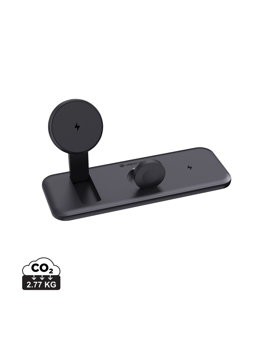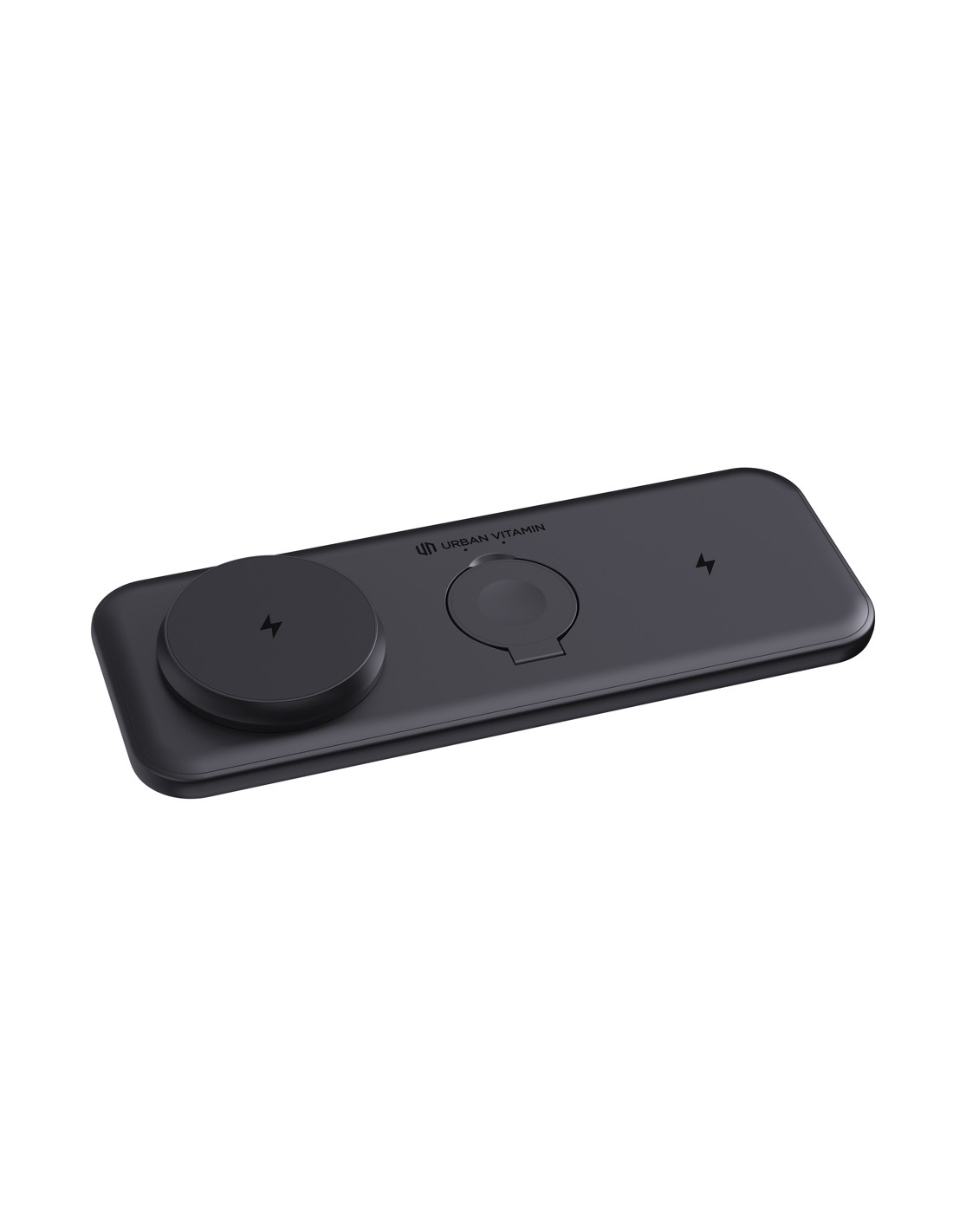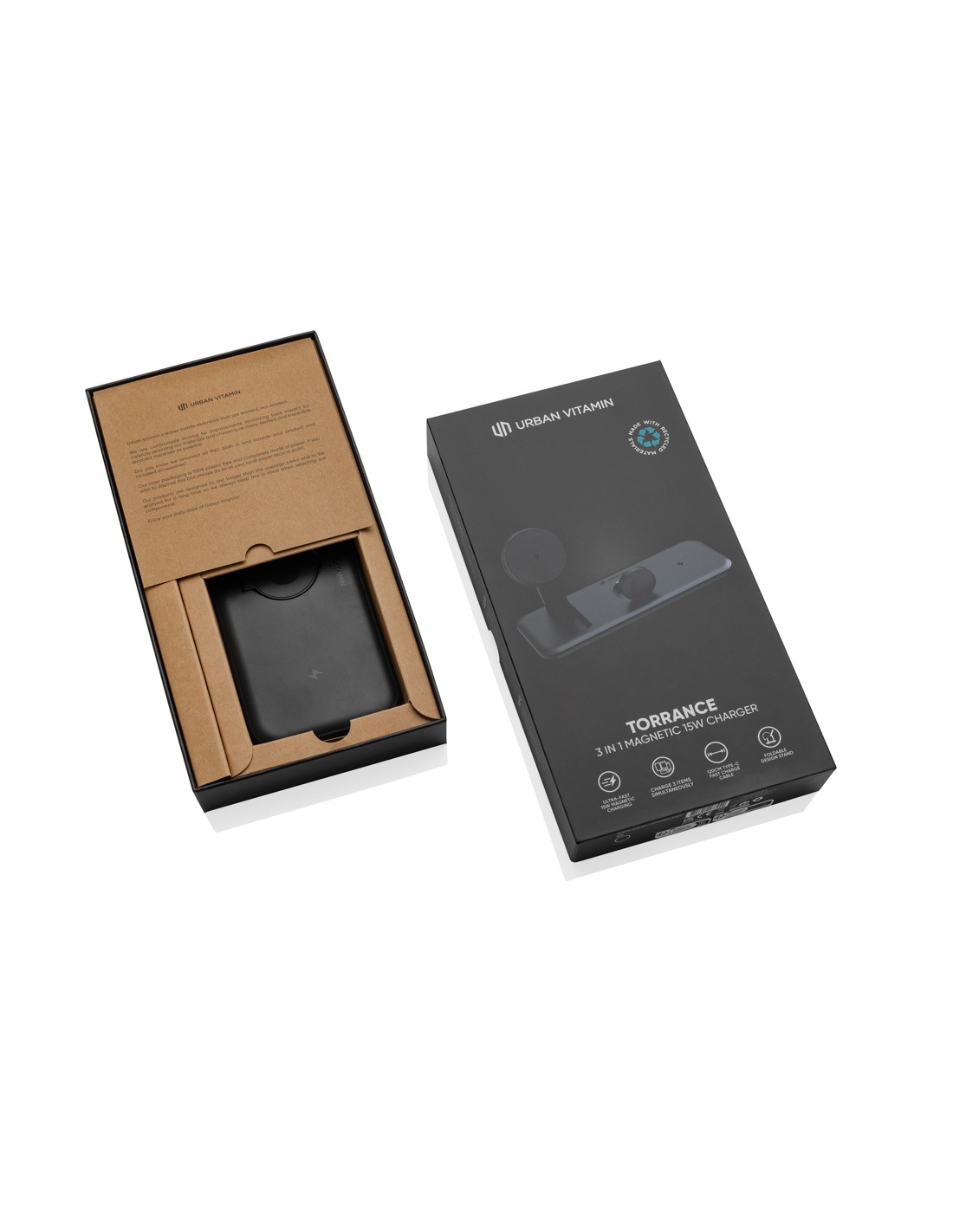 Avete bisogno di caricare tutti i vostri dispositivi contemporaneamente e alla massima velocità? Torrance ha pensato a voi con il suo caricatore magnetico ultraveloce da 15W. Può essere utilizzato sia come piedistallo che in posizione orizzontale. Utilizzatelo come supporto per caricare i telefoni a ricarica magnetica o per qualsiasi altro telefono wireless. Utilizzate il pad di ricarica centrale da 5W per caricare un secondo telefono o gli auricolari. Per finire, utilizzate il caricatore per orologi per caricare le ultime generazioni di iWatch. Torrance è dotato di un cavo in TPE riciclato di 120 cm per una facile installazione sulla scrivania o sul comodino. È sufficiente collegarlo a una fonte di alimentazione a ricarica rapida (minimo 9V/2A) per iniziare. Torrance è realizzato con ABS riciclato certificato RCS (Recycled Claim Standard). Contenuto totale di materiale riciclato: 37% in base al peso totale dell'articolo. Gli articoli Urban Vitamin sono realizzati senza PVC e confezion