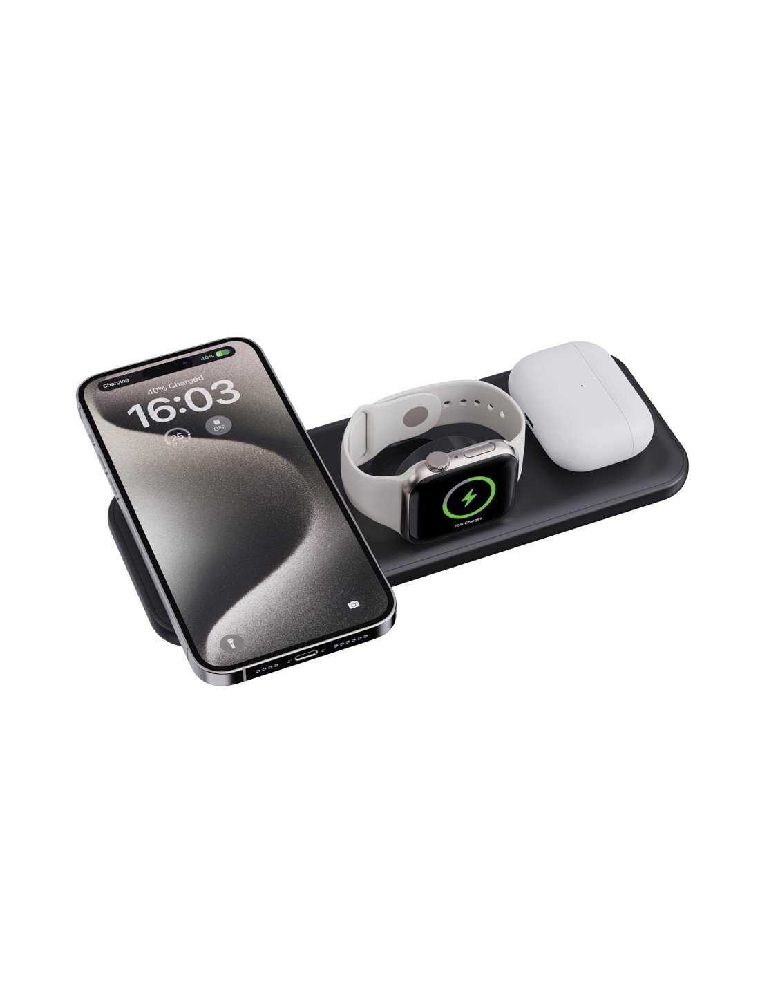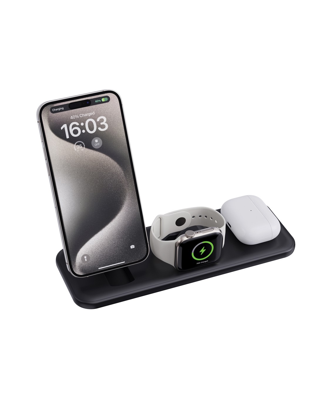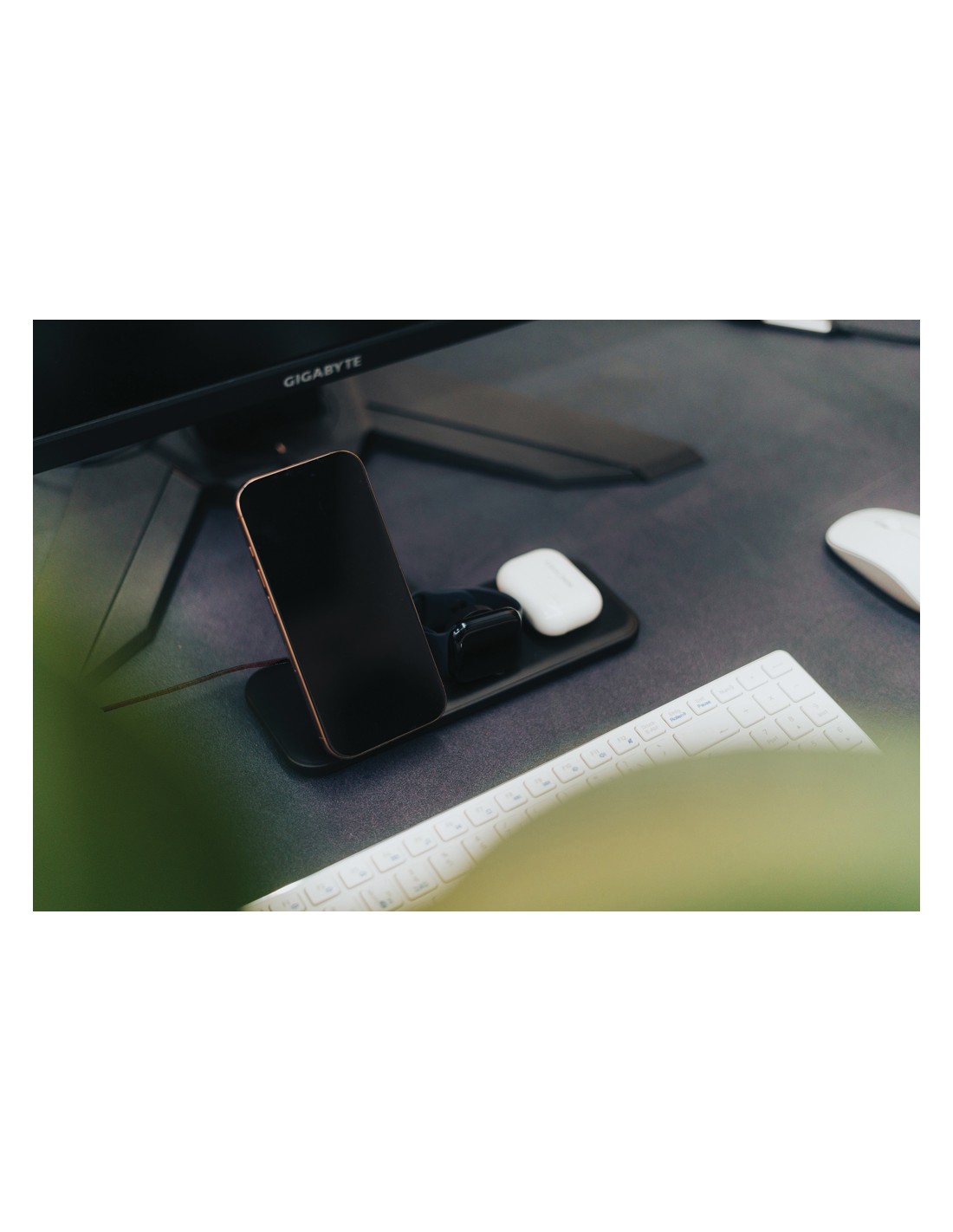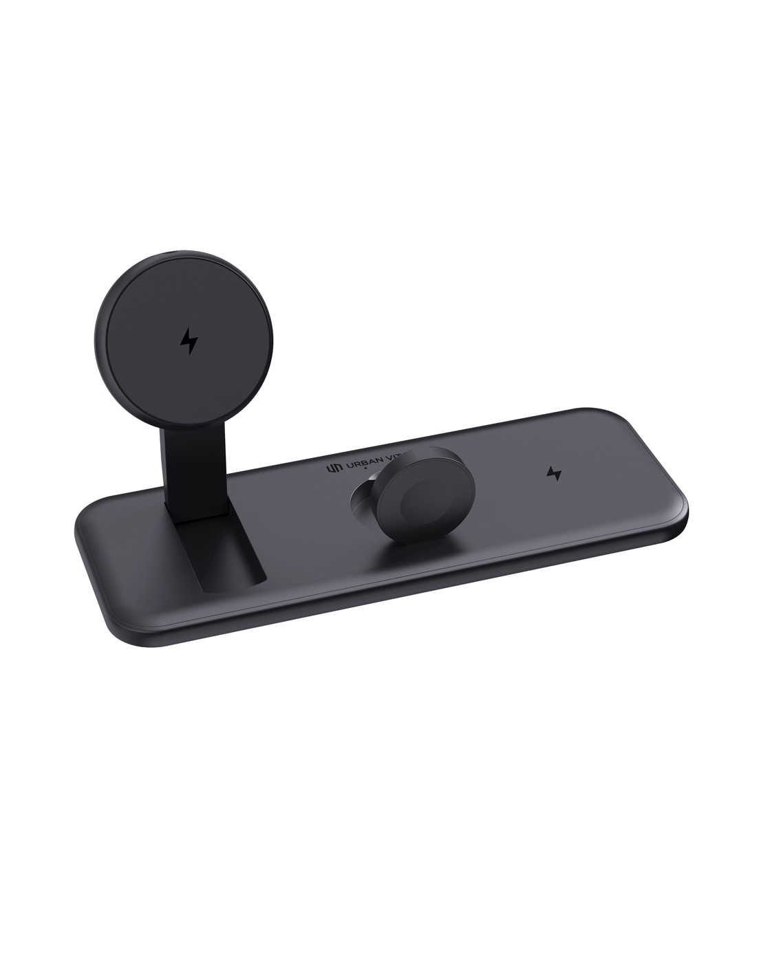 Avete bisogno di caricare tutti i vostri dispositivi contemporaneamente e alla massima velocità? Torrance ha pensato a voi con il suo caricatore magnetico ultraveloce da 15W. Può essere utilizzato sia come piedistallo che in posizione orizzontale. Utilizzatelo come supporto per caricare i telefoni a ricarica magnetica o per qualsiasi altro telefono wireless. Utilizzate il pad di ricarica centrale da 5W per caricare un secondo telefono o gli auricolari. Per finire, utilizzate il caricatore per orologi per caricare le ultime generazioni di iWatch. Torrance è dotato di un cavo in TPE riciclato di 120 cm per una facile installazione sulla scrivania o sul comodino. È sufficiente collegarlo a una fonte di alimentazione a ricarica rapida (minimo 9V/2A) per iniziare. Torrance è realizzato con ABS riciclato certificato RCS (Recycled Claim Standard). Contenuto totale di materiale riciclato: 37% in base al peso totale dell'articolo. Gli articoli Urban Vitamin sono realizzati senza PVC e confezion