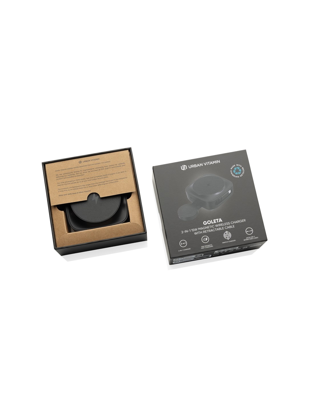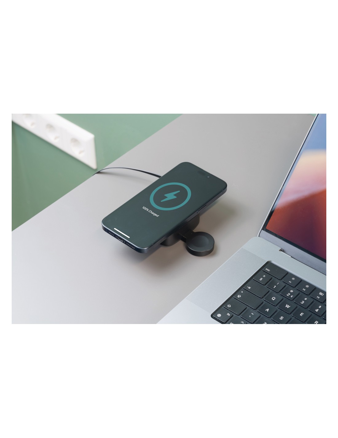 La stazione di ricarica wireless a doppia bobina Loop da 15 W, realizzata in plastica riciclata RCS, è ideale per qualsiasi scrivania o comodino. La stazione di ricarica è dotata di una base antiscivolo in gomma per evitare che il dispositivo scivoli. Grazie alla doppia bobina, un dispositivo...