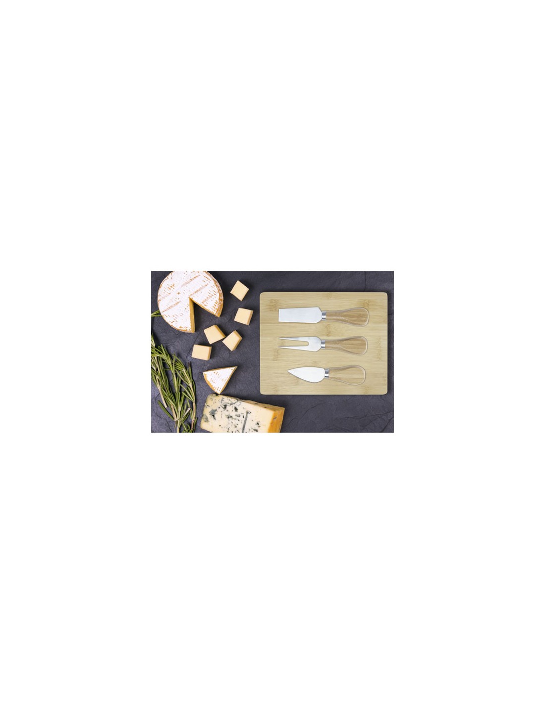 Set composto da un tagliere per formaggi in legno di acacia (40 x 25 x 1,5 cm) e da 2 coltelli in acciaio inox (20 x 2,5 cm, 19 x 3,5 cm). Consegnato in una confezione regalo in cartone riciclato con chiusura magnetica.