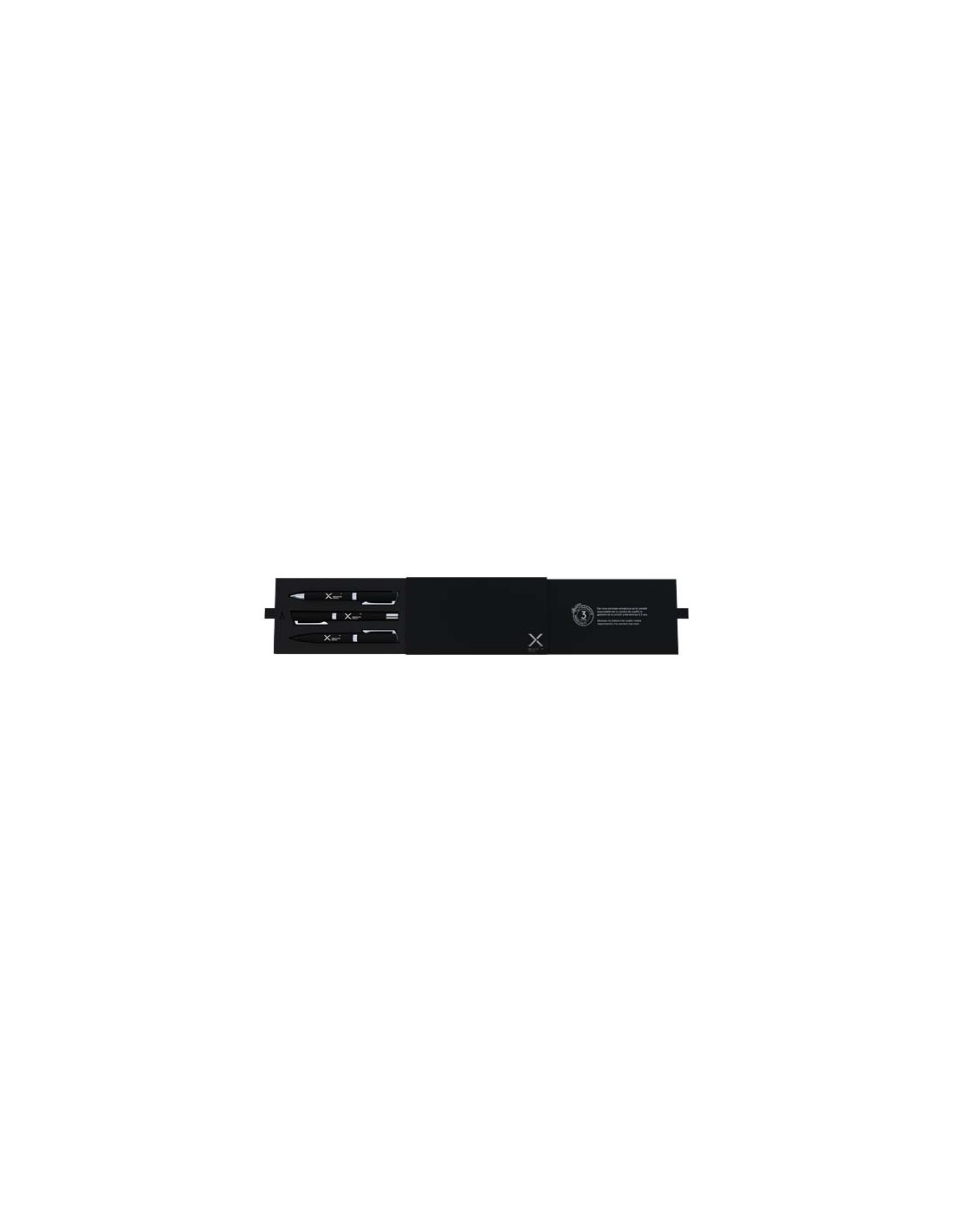 Questo elegante set di tre penne, realizzato in alluminio con finitura in gomma morbida, consente di esprimere le idee in modo fluido su diverse superfici. Il set comprende una penna a sfera con inchiostro blu Dokumental® tedesco di alta qualità e capacità di scrittura di 1800 metri, con punta in carburo di tungsteno per una maggiore precisione. La penna roller utilizza inchiostro nero Dokumental® tedesco con una capacità di 400 metri, perfetto per una scrittura fluida e raffinata. La matita in grafite offre una capacità di scrittura fino a 5000 metri, ideale per schizzi e appunti. Ogni strumento di scrittura include una ricarica di ricambio che si trova nella parte superiore della confezione regalo: inchiostro blu per la penna a sfera (fino a 2 anni di utilizzo), inchiostro nero per la penna roller (fino a 6 mesi) e mina extra per la matita (fino a 3 anni). Personalizzabile con incisione laser ad effetto metallizzato. Fornito in una confezione regalo in cartone riciclato.