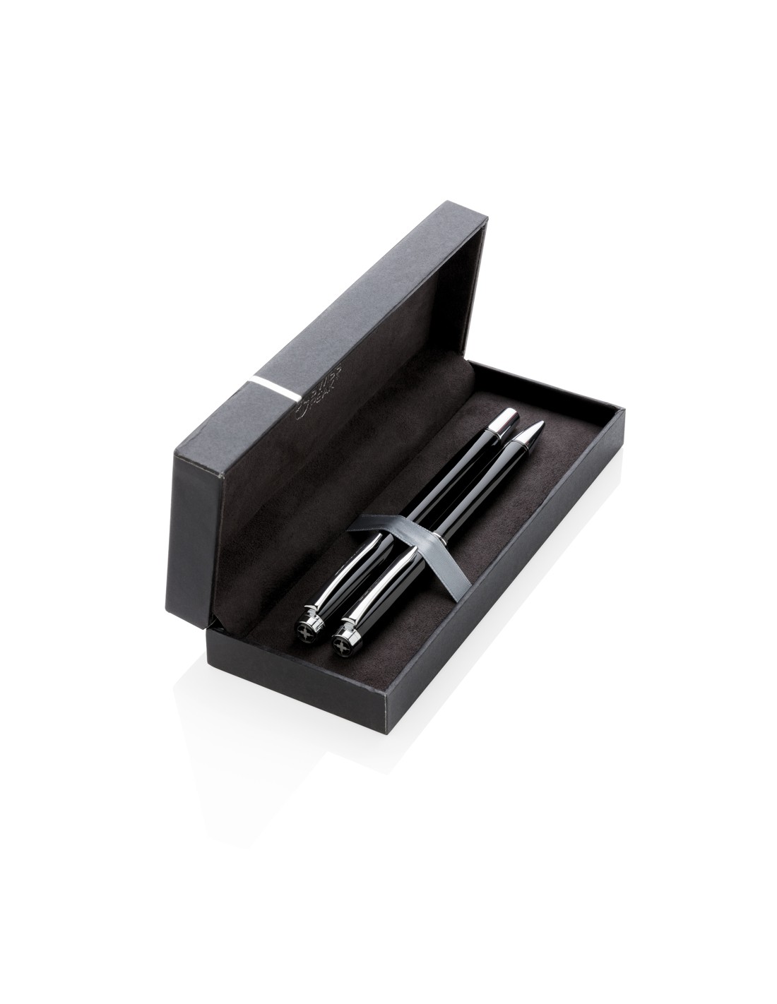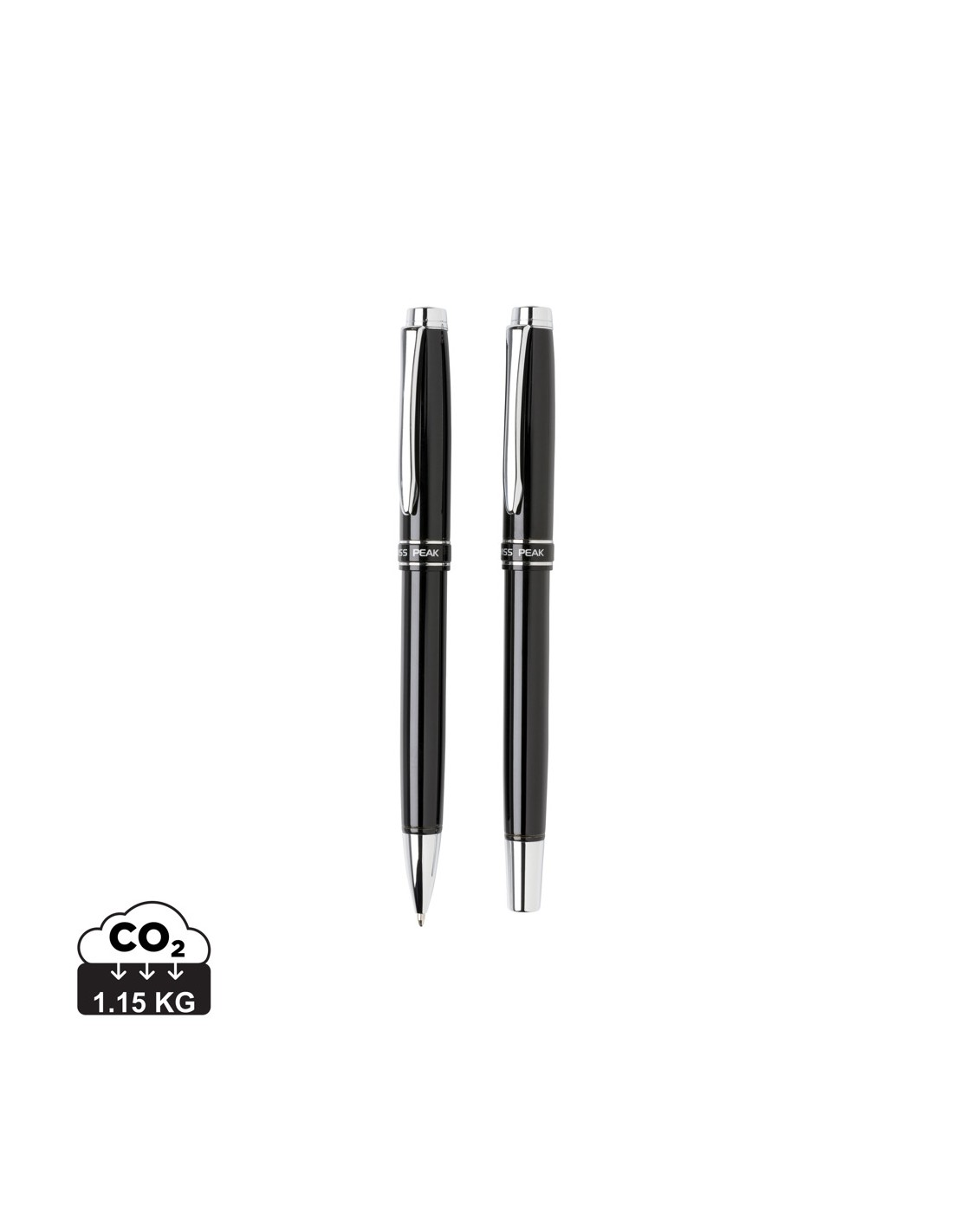 La linea Swiss Peak Heritage parla la lingua della moderna eleganza. Penna a sfera e roller in ottone confezionati in scatola regalo Swiss Peak. Entrambe i refill includono un minimo di 1200 metri di inchiostro German ink.