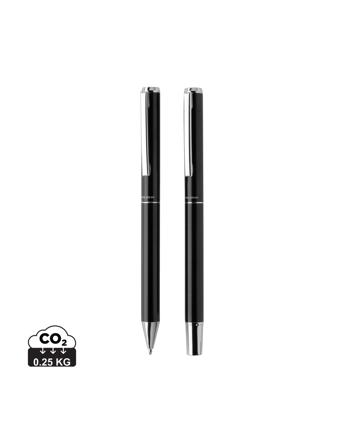 Il set di penne Cedar in alluminio riciclato certificato RCS è la combinazione perfetta tra basso impatto e stile. Realizzato in alluminio riciclato, questo set di penne non solo è bello da vedere, ma contribuisce anche a ridurre l'impatto ambientale. Il suo design elegante e moderno è di sicuro impatto e la rende lo strumento di scrittura perfetto per ogni occasione. Un'esperienza di scrittura fluida garantita di 1200 metri con l'inchiostro blu Dokumental. Il roller ha una capacità di scrittura di 400 metri. Realizzata con materiali riciclati certificati RCS (Recycled Claim Standard). La certificazione RCS garantisce una catena di approvvigionamento dei materiali riciclati completamente certificata. Contenuto totale di materiale riciclato: 17% in base al peso totale dell'articolo. Confezionato in un astuccio certificato FSC®.