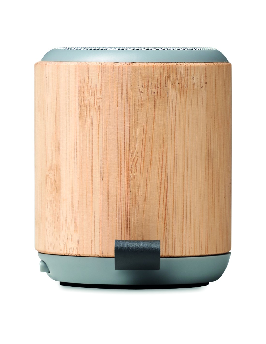 Speaker senza fili 5.3 in copertura di bamboo e ABS sulla parte superiore con cinturino in PU. 1 batteria ricaricabile Li-Ion 300 mAh. Dati di uscita: 3W, 4 Ohm. Tempo di riproduzione circa 2 ore.