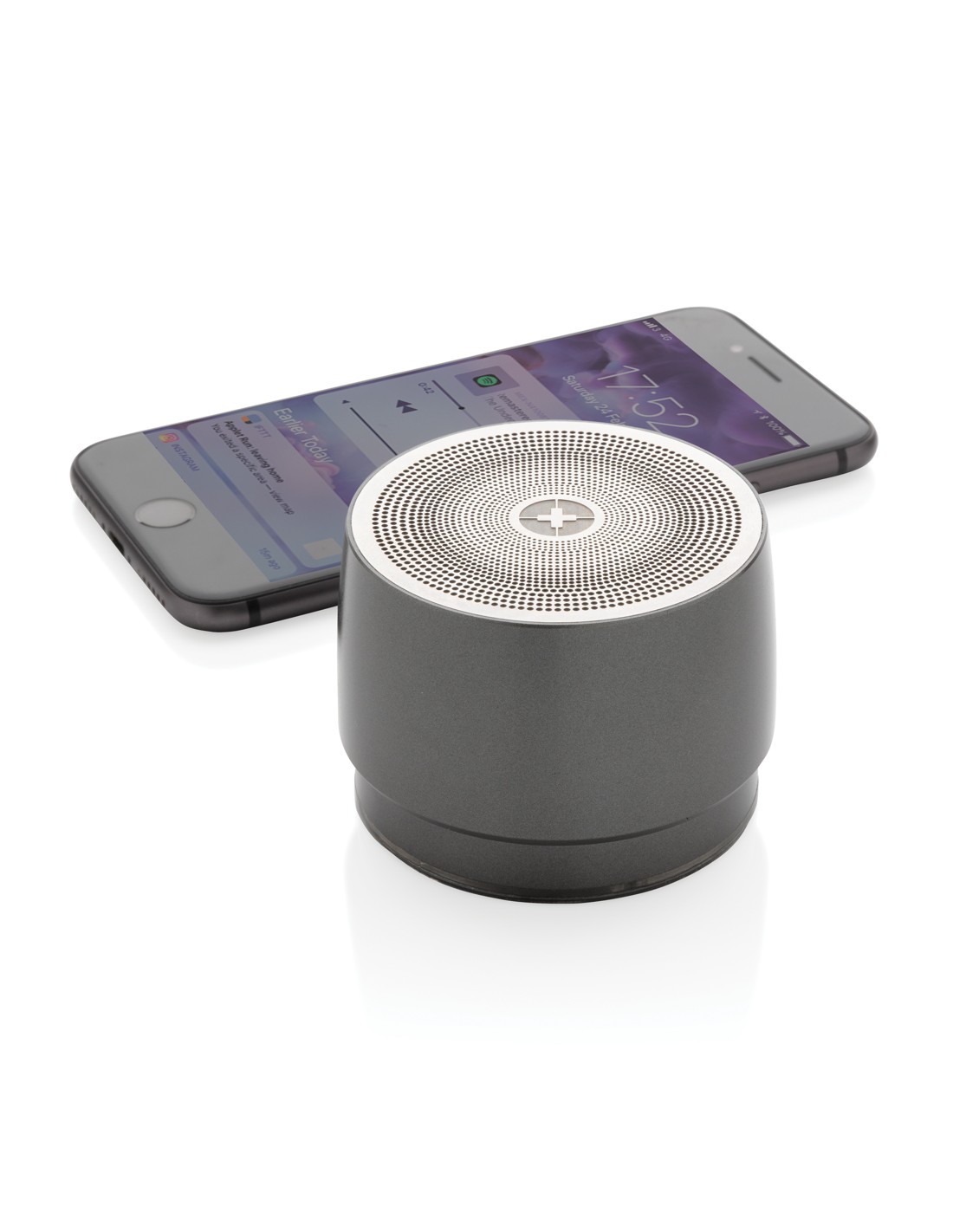 Speaker wireless 5.3 in ABS con finitura gommata e LED. Include una porta per SD e un cavo AUX/USB. Batteria ricaricabile al litio da 450mAh.Microfono per parlare al telefono. Autonomia circa 3h.
