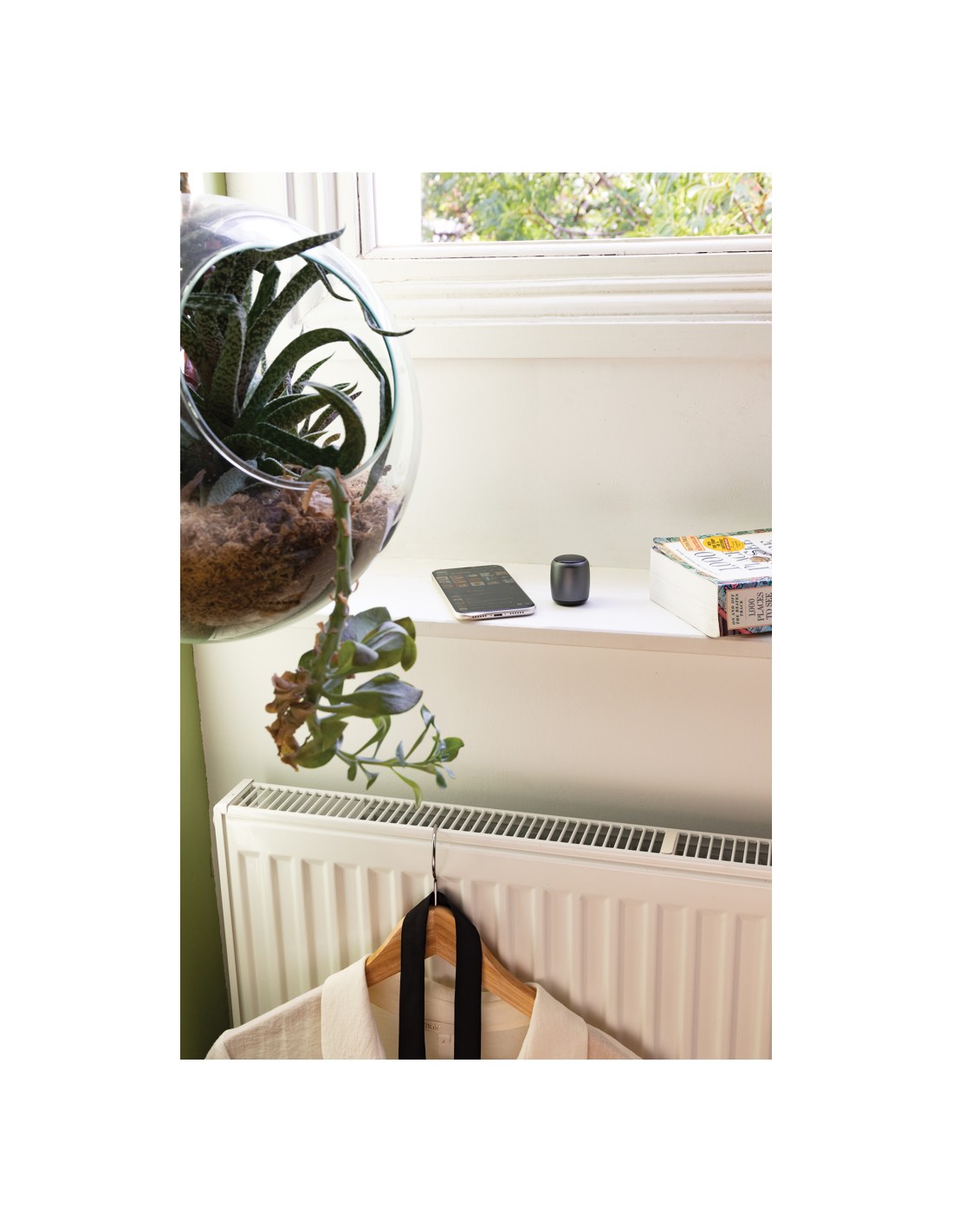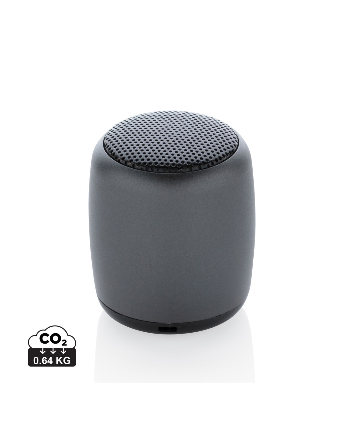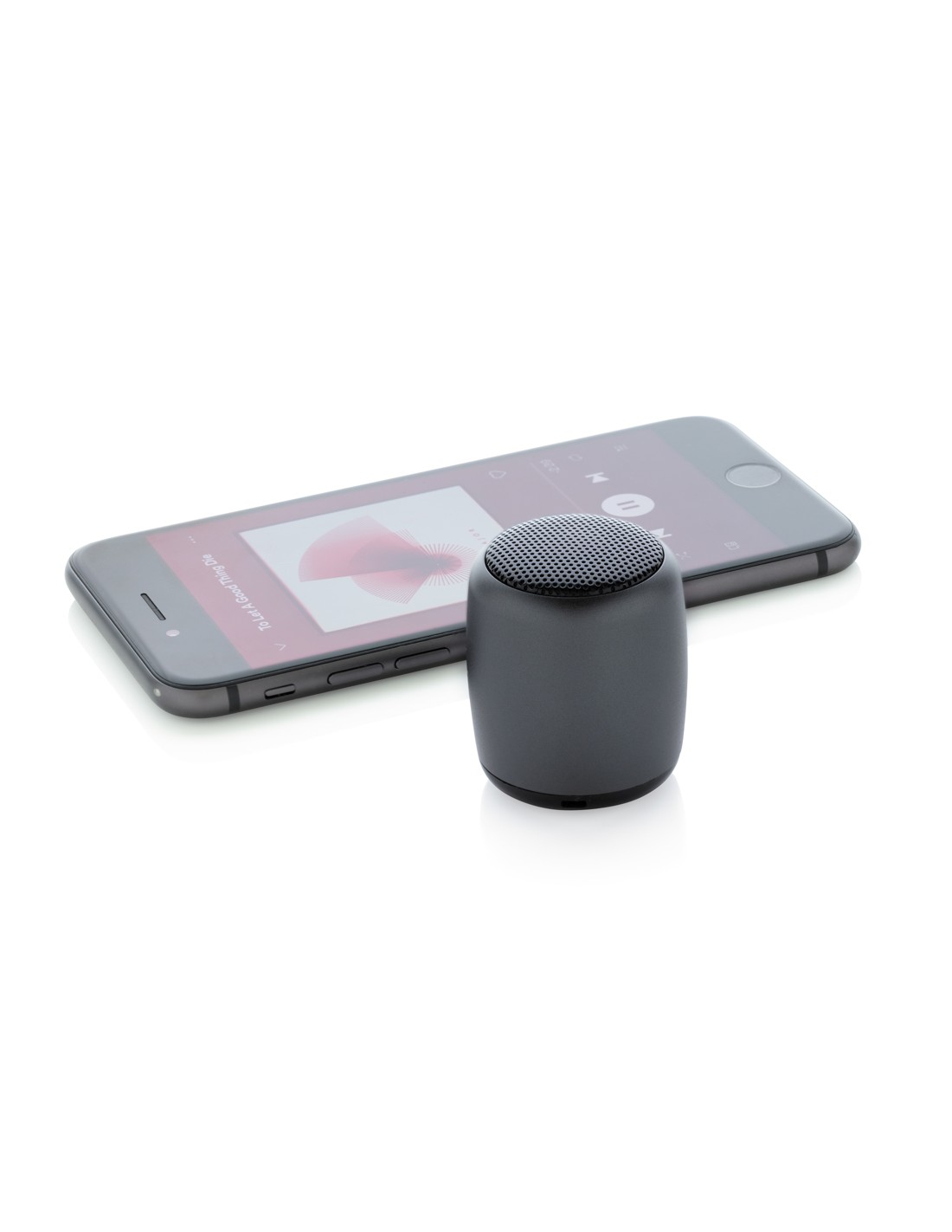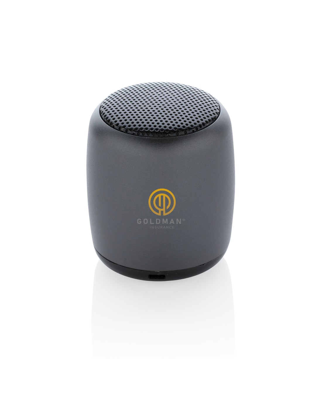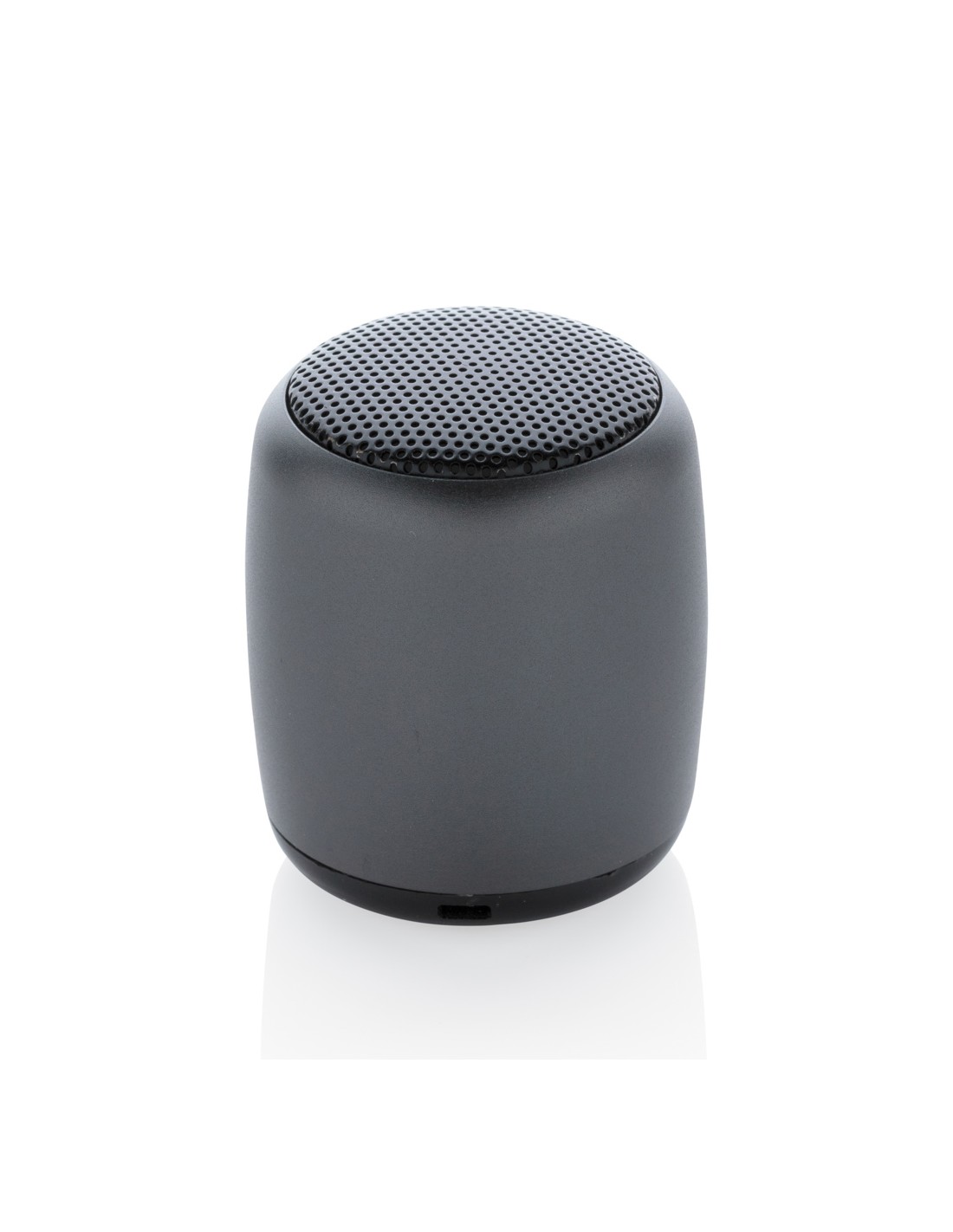 Speaker wireless 5.1 con corpo in metallo e finitura in gomma. Suono mono da 3W. Include una batteria ricaricabile e sostituibile da 500 mAh. Design compatto e moderno.