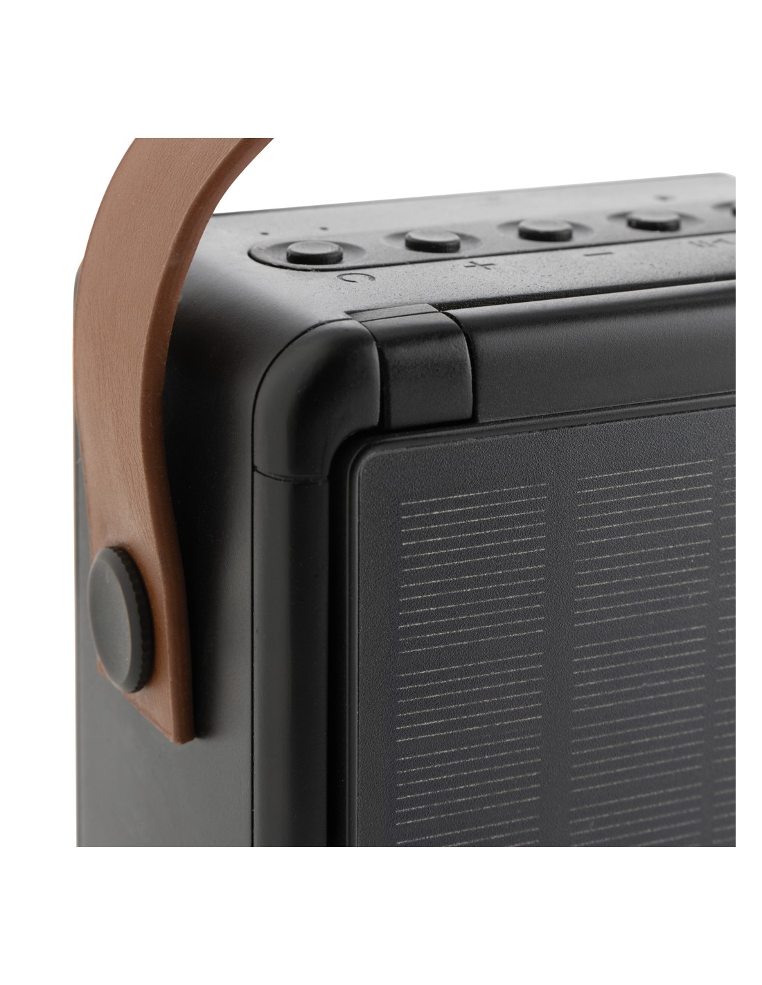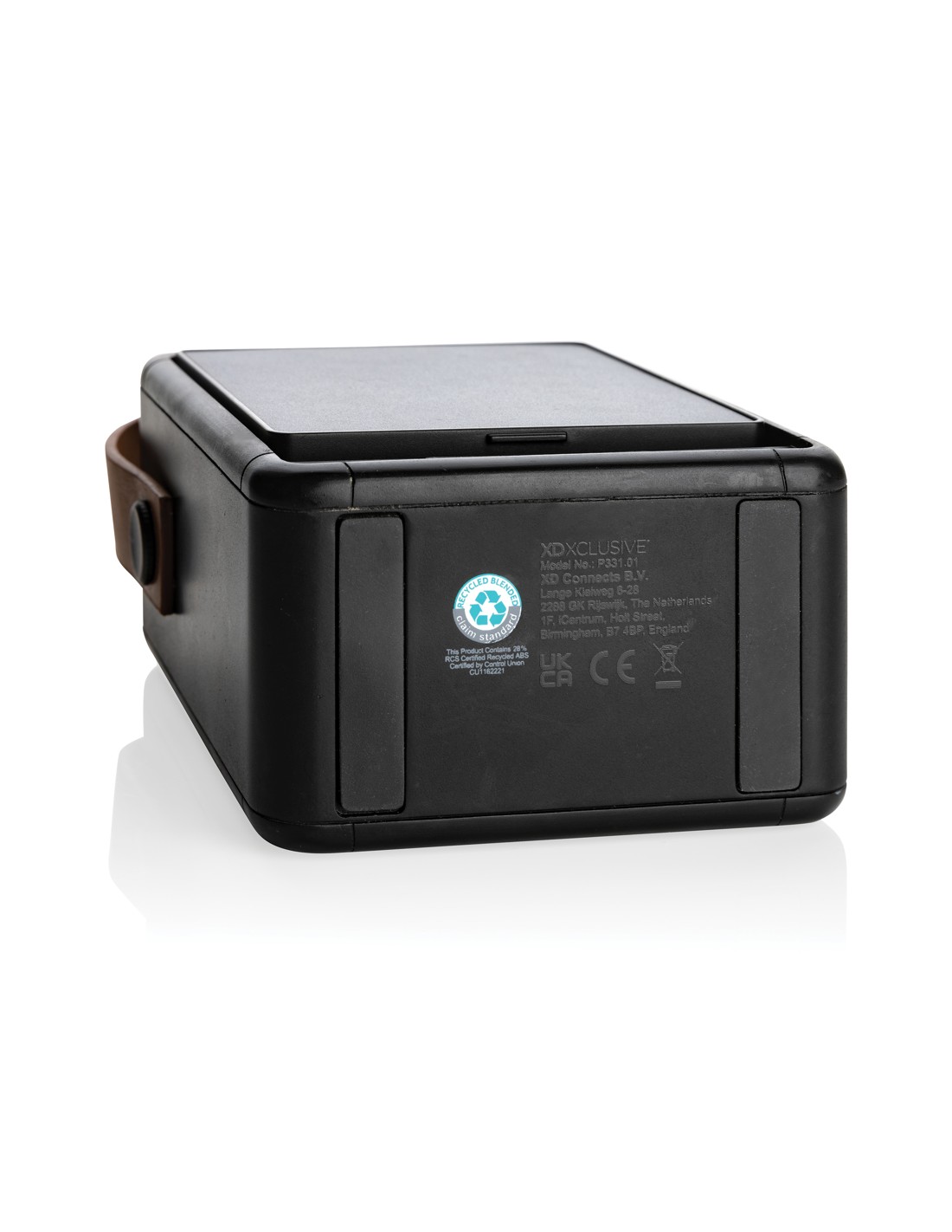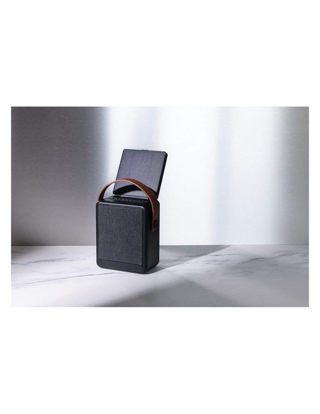Speaker wireless 5.0 con involucro in RPET e dettaglio in bamboo sulla parte superiore. Con luce LED. 1 batteria ricaricabile Li-ION 300 mAh inclusa. Include una porta per schede SD e un cavo AUX/USB. Dati di uscita: 3W, 3 Ohm e 5V. Tempo di riproduzione di circa 3 ore.