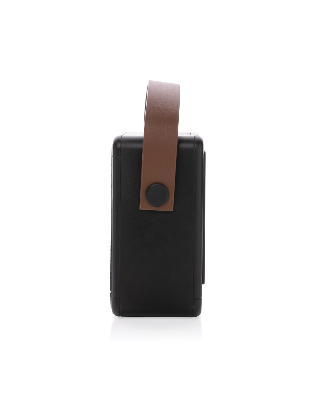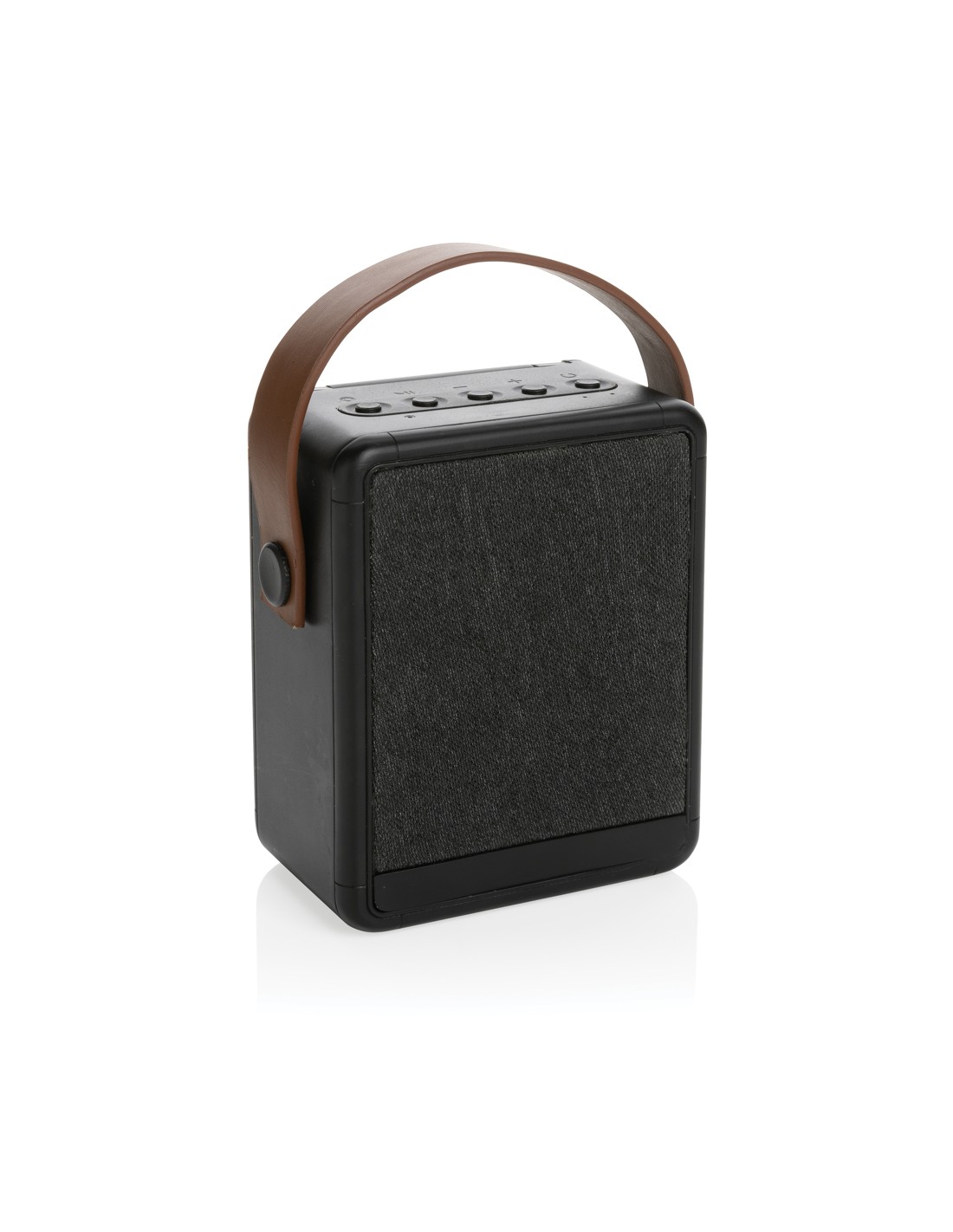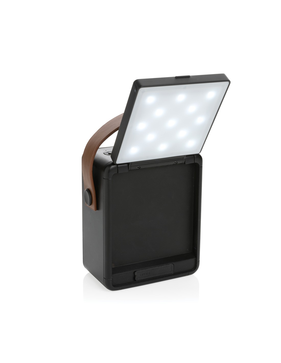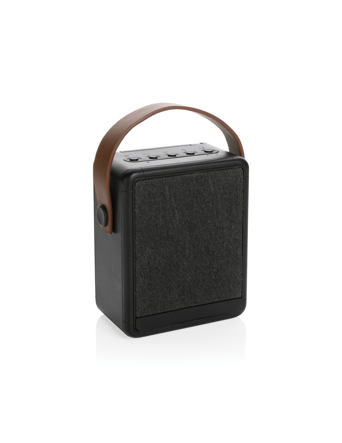 Speaker wireless 5.0 con involucro in RPET e dettaglio in bamboo sulla parte superiore. Con luce LED. 1 batteria ricaricabile Li-ION 300 mAh inclusa. Include una porta per schede SD e un cavo AUX/USB. Dati di uscita: 3W, 3 Ohm e 5V. Tempo di riproduzione di circa 3 ore.