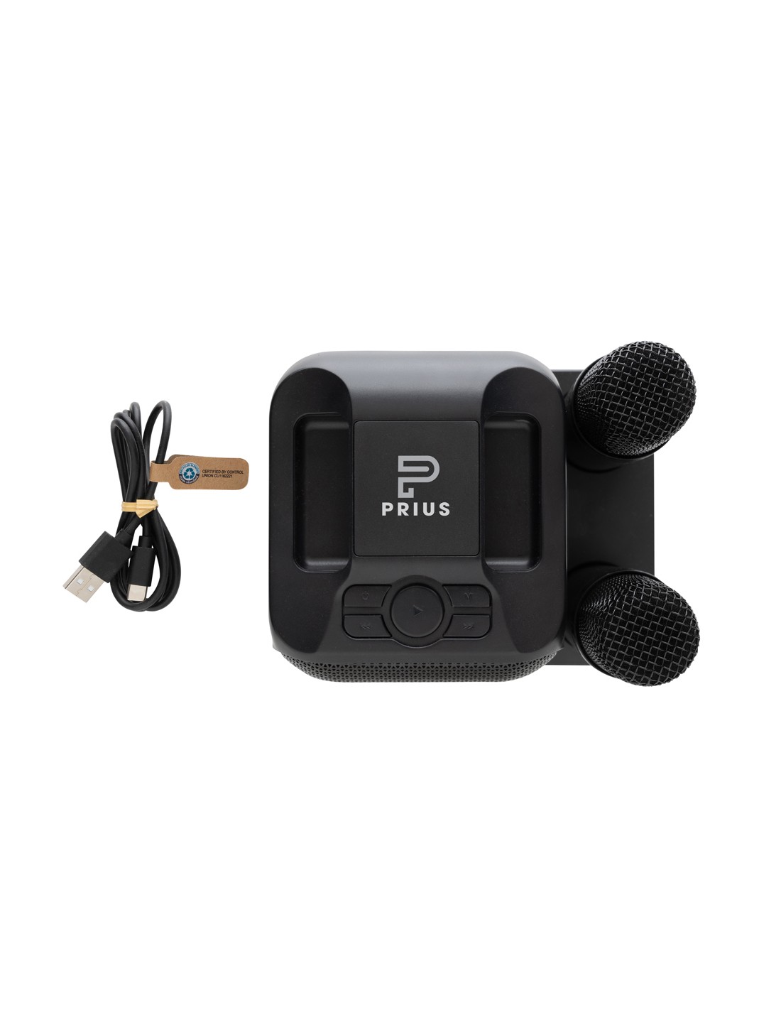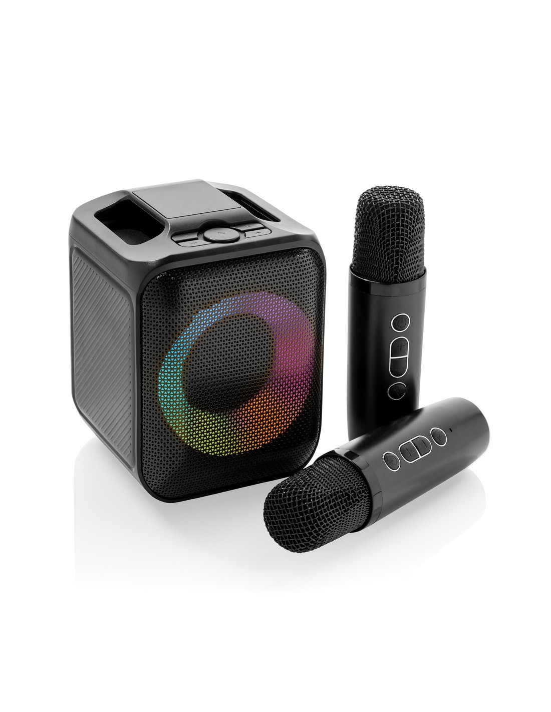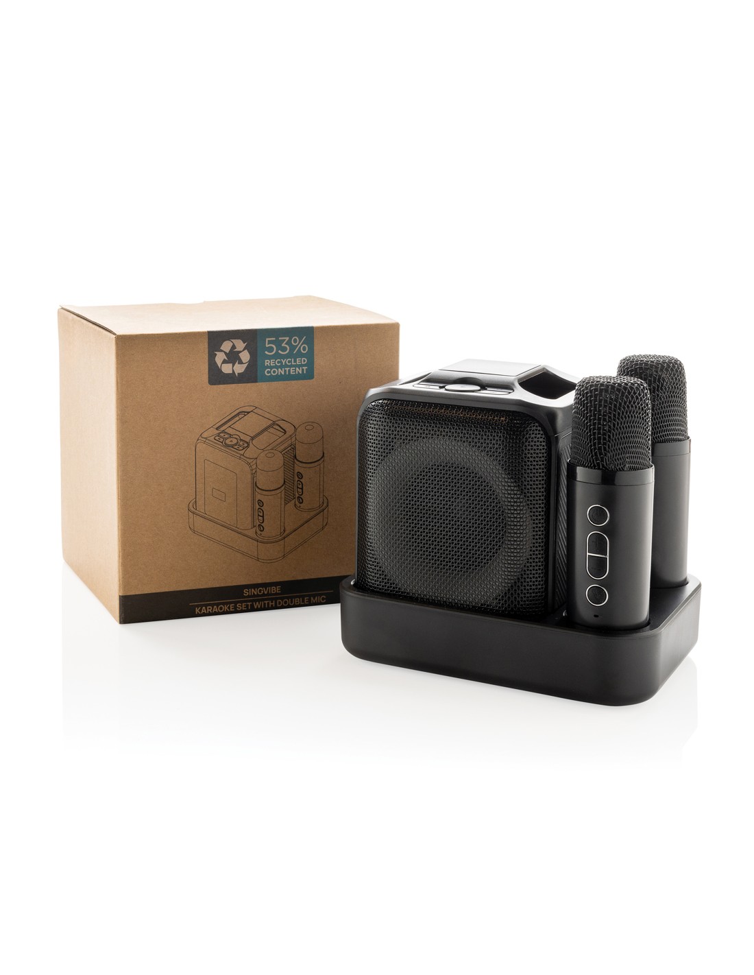 Cantate, ballate e divertitevi con i vostri amici grazie a questo kit karaoke di qualità con due microfoni che vi permette di cantare in stereo con i vostri migliori amici. L'altoparlante e il microfono sono dotati di una base di ricarica a induzione che consente di caricarli tutti e tre contemporaneamente. Basta accendere un video musicale con testo o attivare il testo nel vostro lettore musicale preferito e prepararsi a ore di divertimento! L'altoparlante da 5W è dotato di una batteria da 2000 mAh che consente un utilizzo fino a 6 ore. L'altoparlante supporta anche le schede TF e USB per la musica. Distanza operativa dei microfoni fino a 10 metri dall'altoparlante. L'altoparlante è realizzato con ABS riciclato certificato RCS (Recycled Claim Standard). Contenuto riciclato totale: 53% in base al peso totale dell'articolo. La certificazione RCS garantisce una catena di approvvigionamento dei materiali riciclati completamente certificata. Incluso cavo di ricarica di type C in TPE rici
