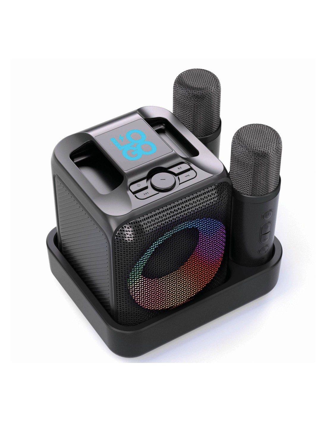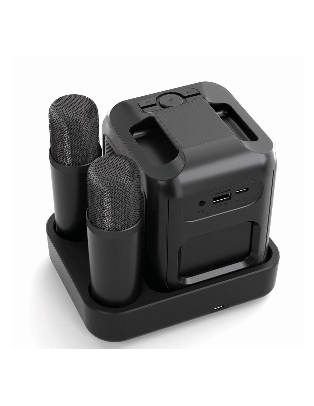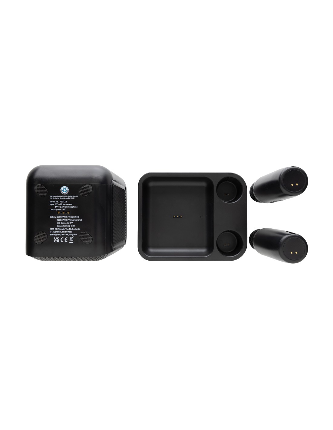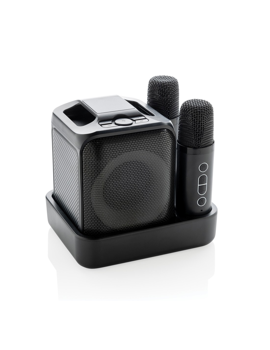 Cantate, ballate e divertitevi con i vostri amici grazie a questo kit karaoke di qualità con due microfoni che vi permette di cantare in stereo con i vostri migliori amici. L'altoparlante e il microfono sono dotati di una base di ricarica a induzione che consente di caricarli tutti e tre contemporaneamente. Basta accendere un video musicale con testo o attivare il testo nel vostro lettore musicale preferito e prepararsi a ore di divertimento! L'altoparlante da 5W è dotato di una batteria da 2000 mAh che consente un utilizzo fino a 6 ore. L'altoparlante supporta anche le schede TF e USB per la musica. Distanza operativa dei microfoni fino a 10 metri dall'altoparlante. L'altoparlante è realizzato con ABS riciclato certificato RCS (Recycled Claim Standard). Contenuto riciclato totale: 53% in base al peso totale dell'articolo. La certificazione RCS garantisce una catena di approvvigionamento dei materiali riciclati completamente certificata. Incluso cavo di ricarica di type C in TPE rici