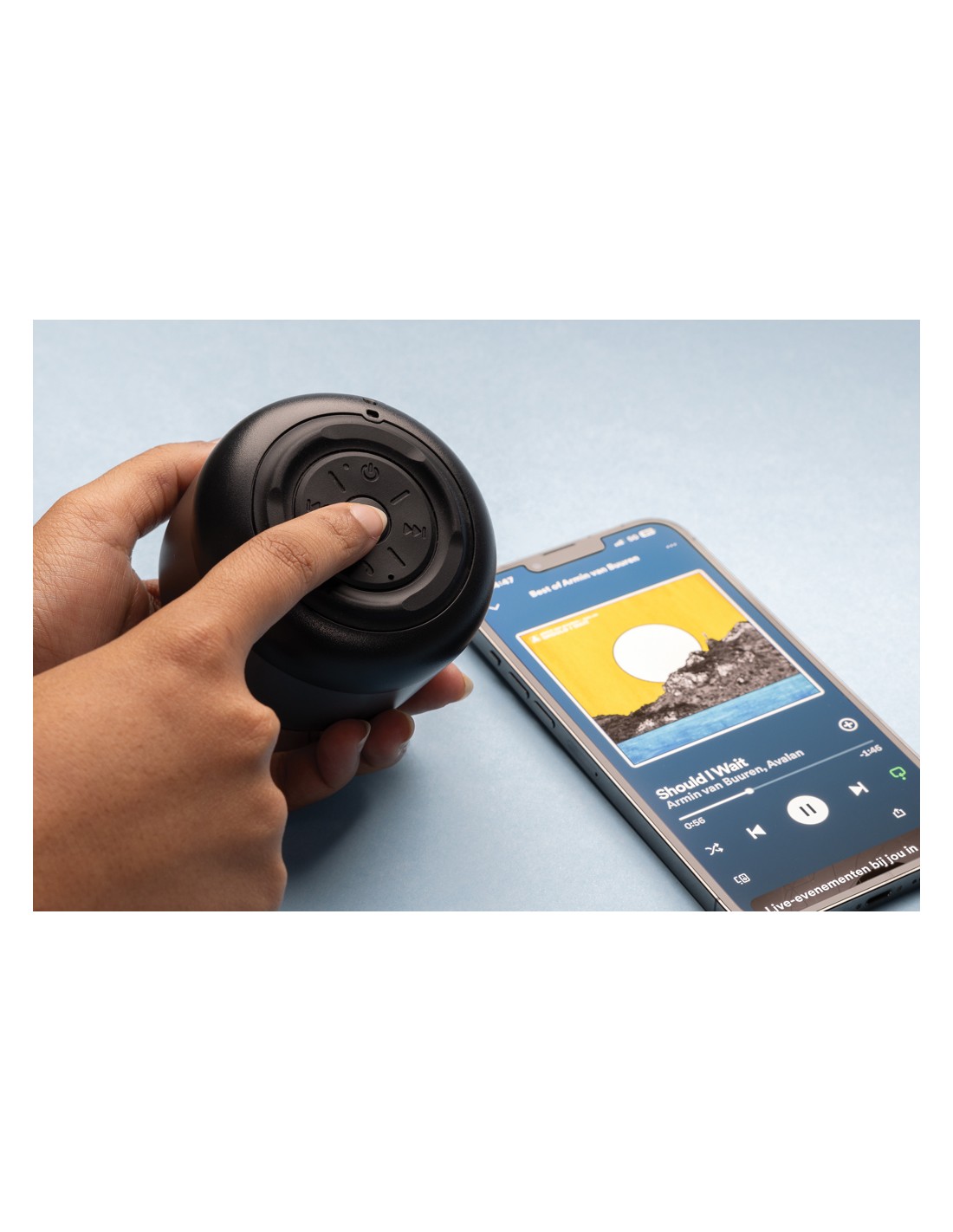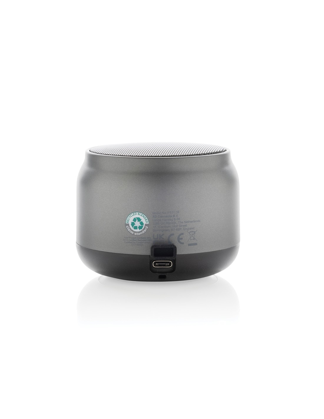 Lo speaker è realizzato con ABS riciclato certificato RCS (Recycled Claim Standard). Contenuto riciclato totale: 22% in base al peso totale dell'articolo. La certificazione RCS garantisce una catena di approvvigionamento dei materiali riciclati completamente certificata. Beatbuddy è dotato di una batteria di qualità da 500 mAh che consente un'autonomia di riproduzione fino a 4 ore e può essere ricaricata in 2 ore. Utilizza il protocollo BT 5.3 per una connessione fluida e un facile abbinamento automatico. Con microfono e funzione pick up. Include un cavo di ricarica type C realizzato in TPE riciclato certificato RCS. Confezionato in un imballaggio FSC® mix. Senza PVC.