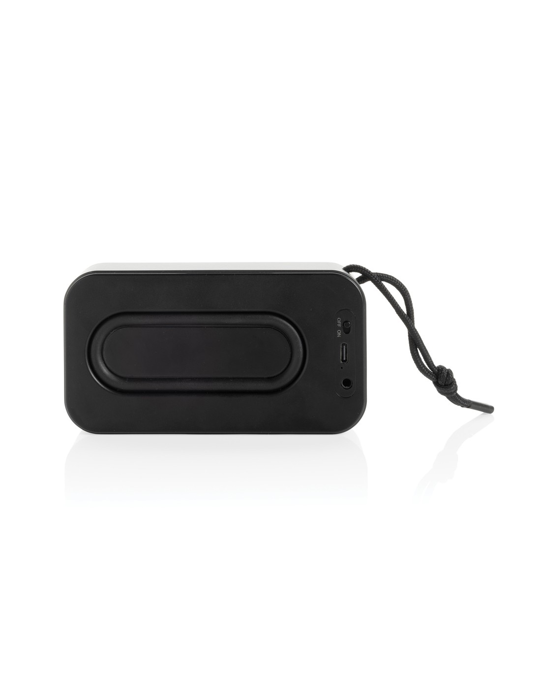 Speaker wireless 5.0 in Bamboo e PP, con luce d'atmosfera a 4 colori e tracolla. 1 batteria ricaricabile Li-POL 300 mAh. Dati di uscita: 3W, 4 Ohm. Tempo di riproduzione di circa 2 ore.