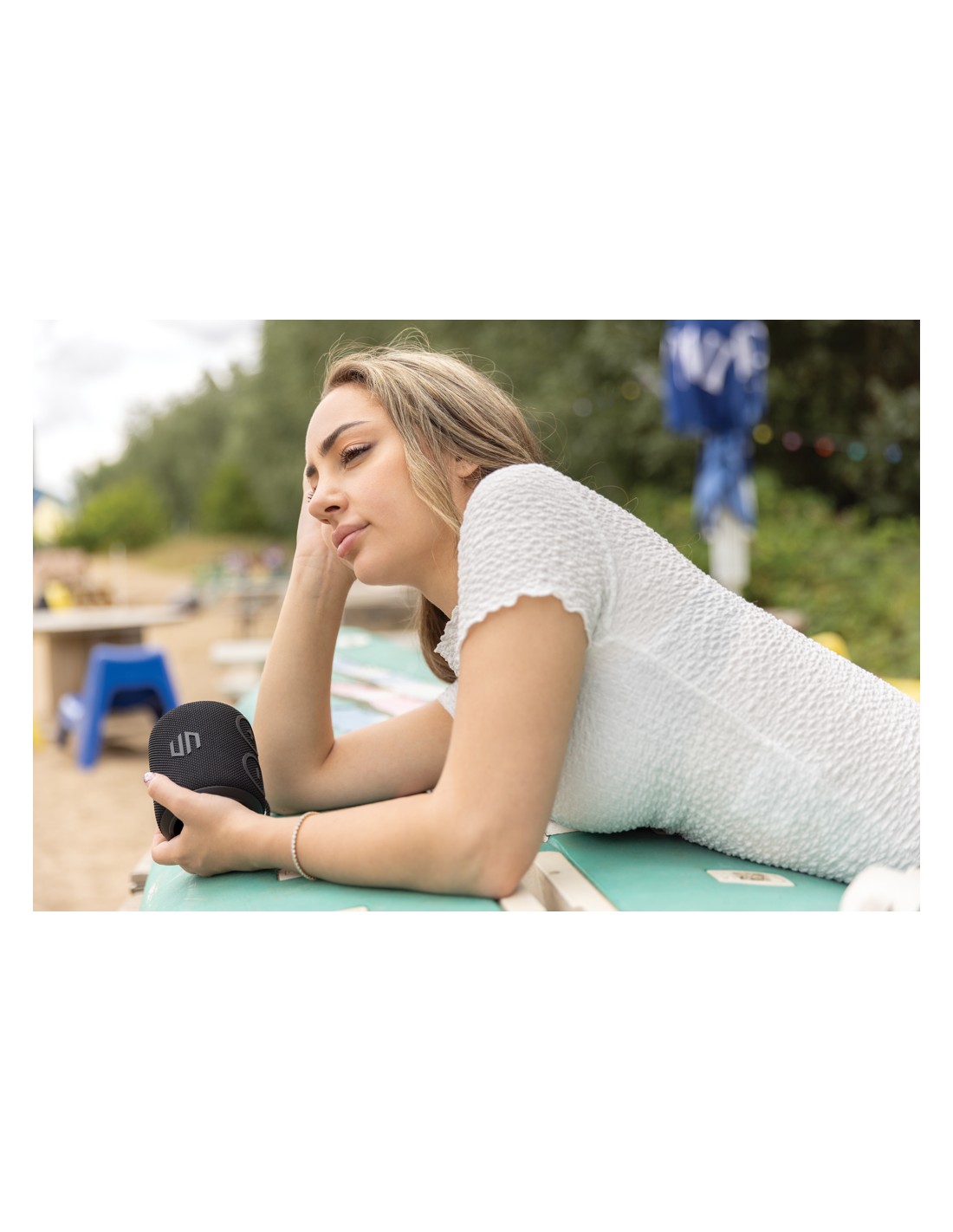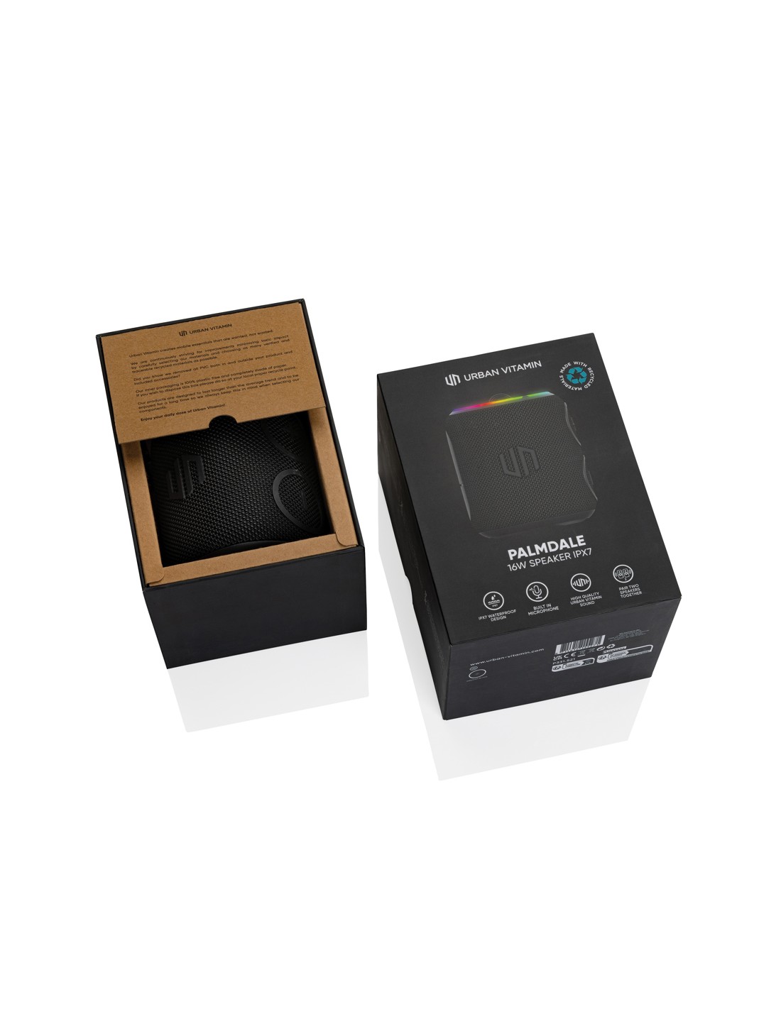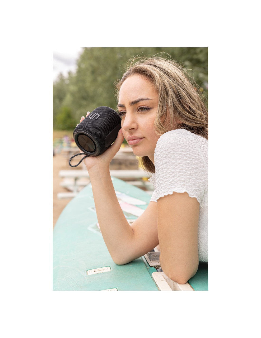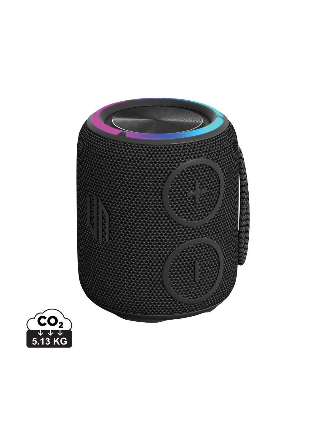 Speaker wireless 5.0 in Bamboo e PP, con luce d'atmosfera a 4 colori e tracolla. 1 batteria ricaricabile Li-POL 300 mAh. Dati di uscita: 3W, 4 Ohm. Tempo di riproduzione di circa 2 ore.